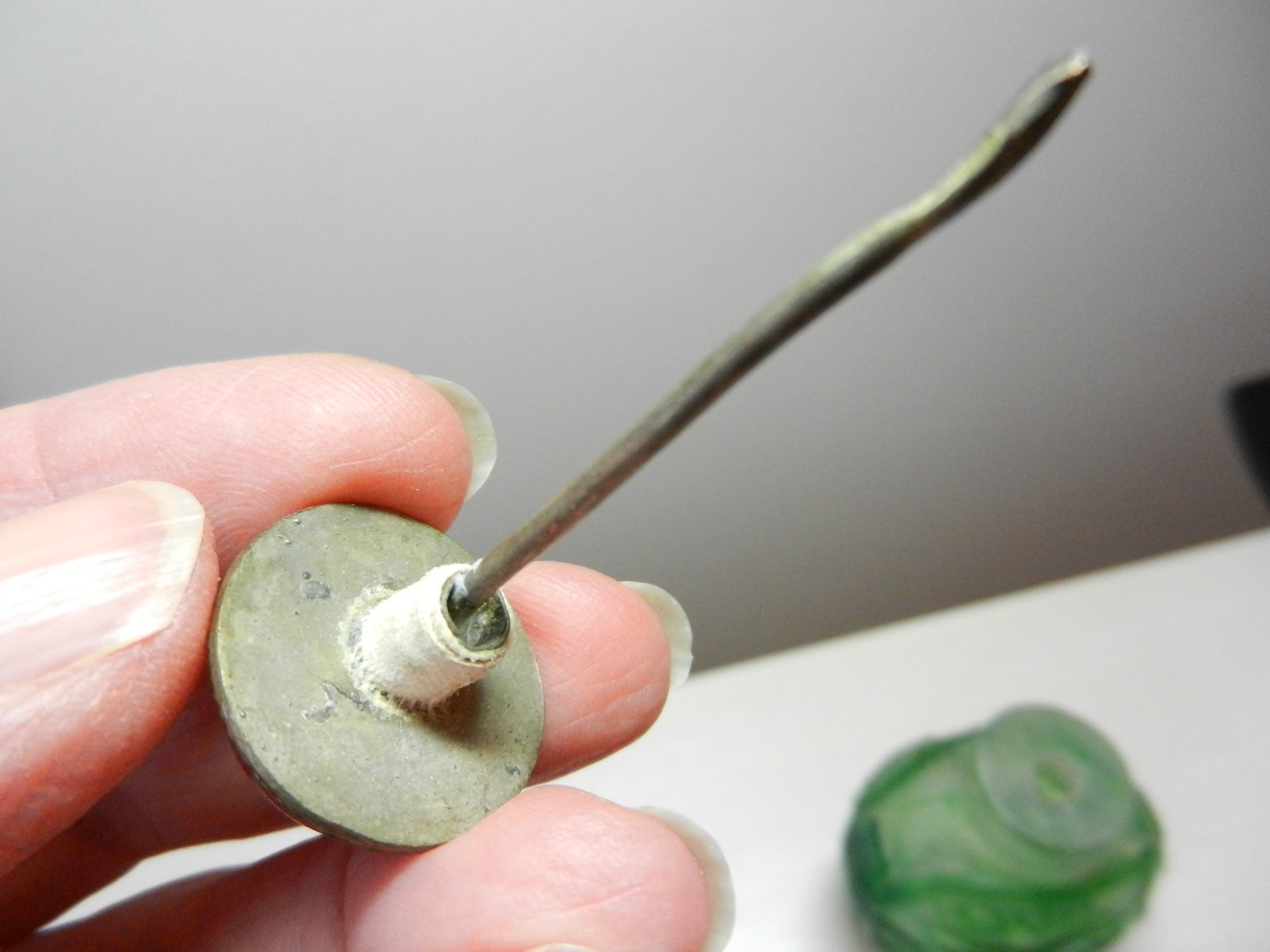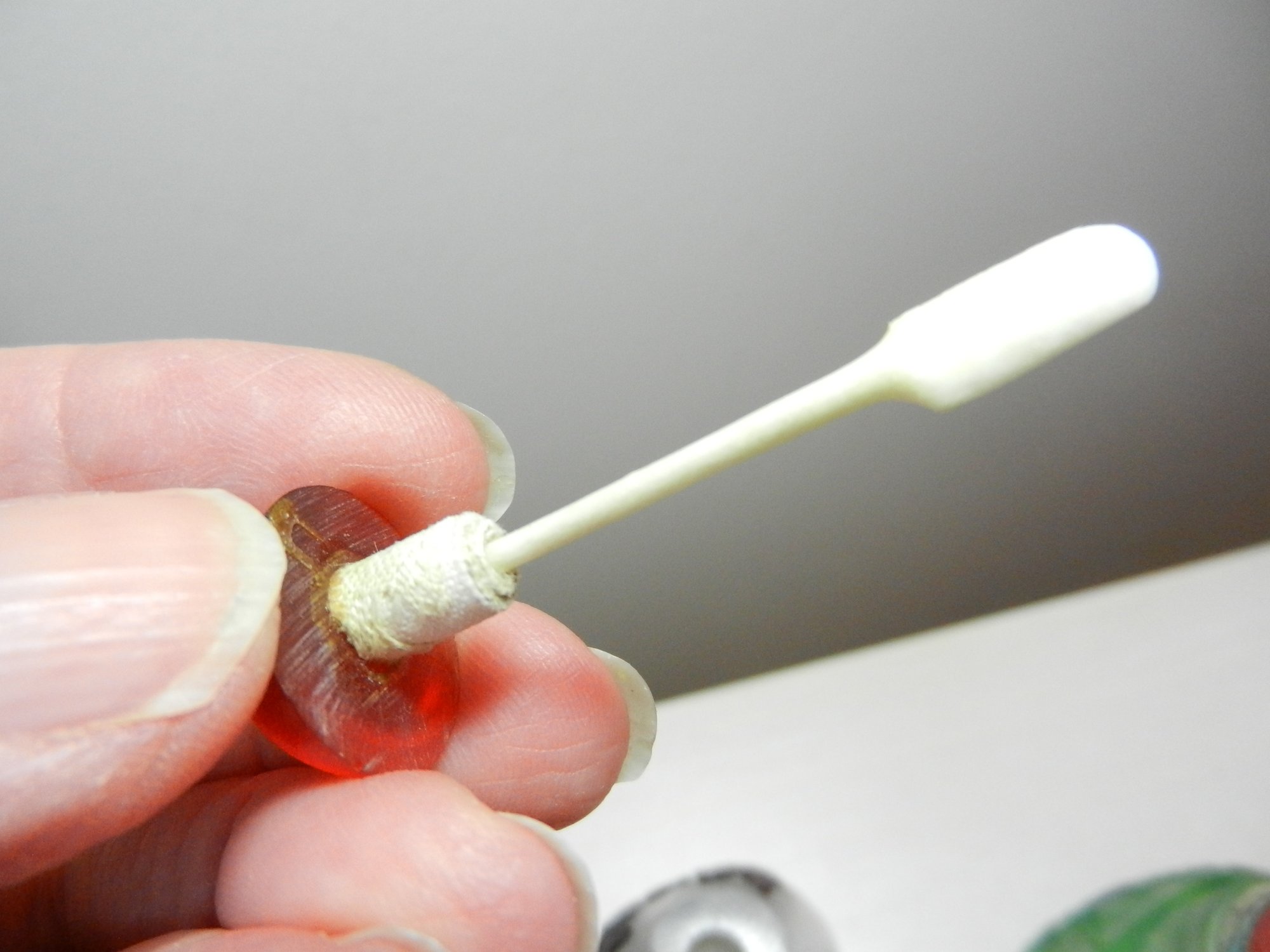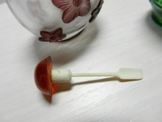 The stopper of the purple flower one feels like a composite resin. I don’t know what the other one is.