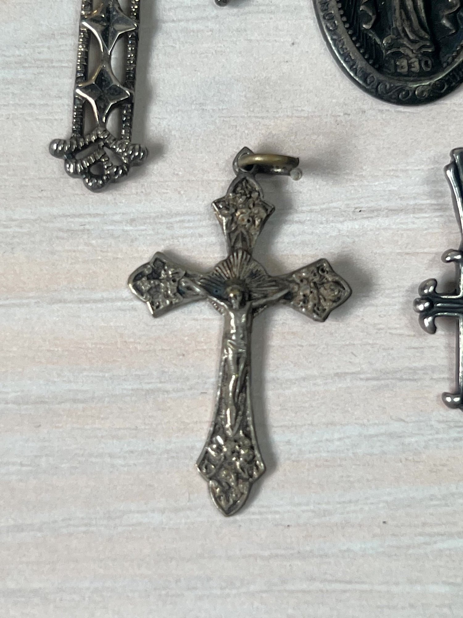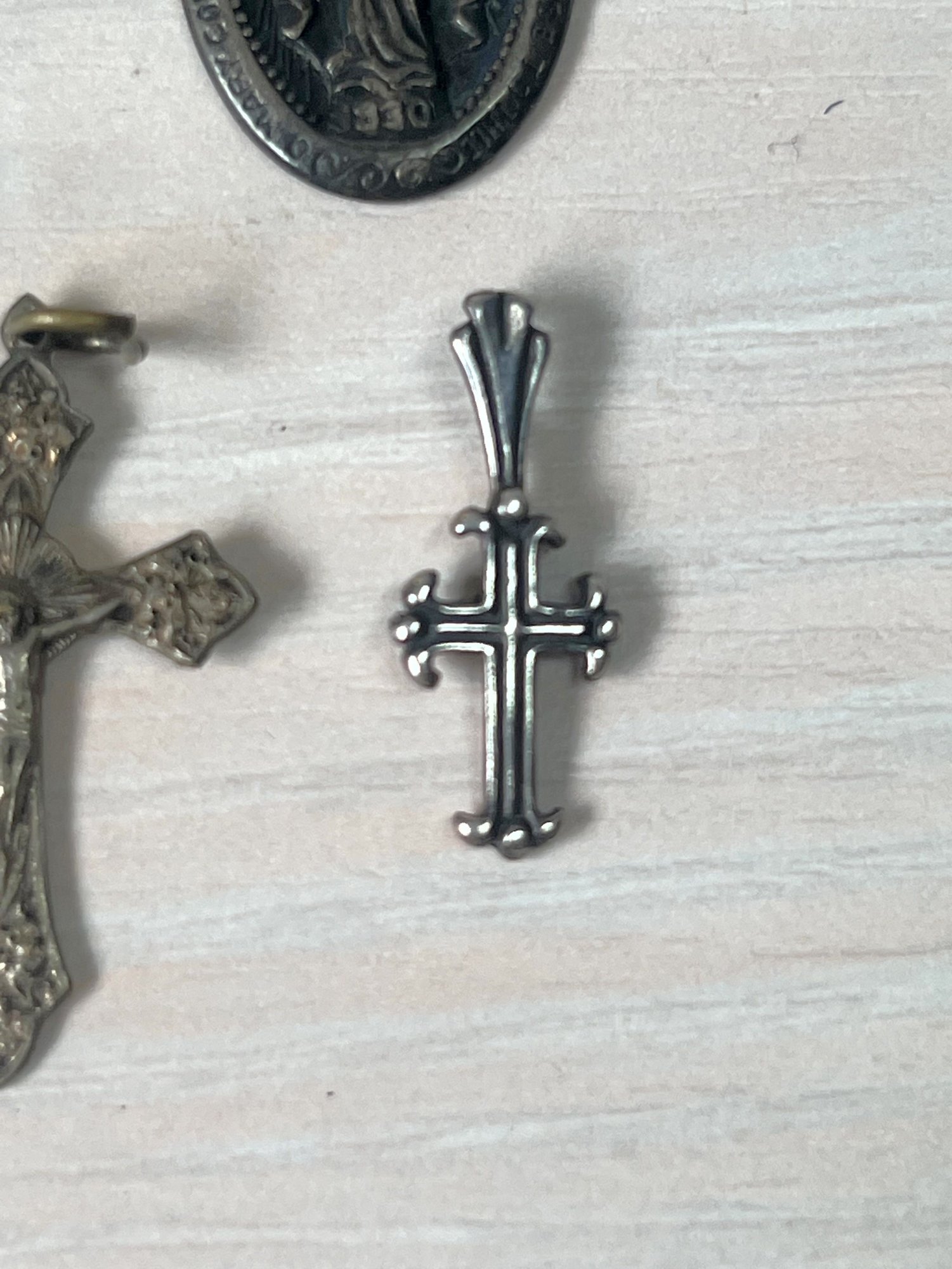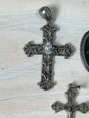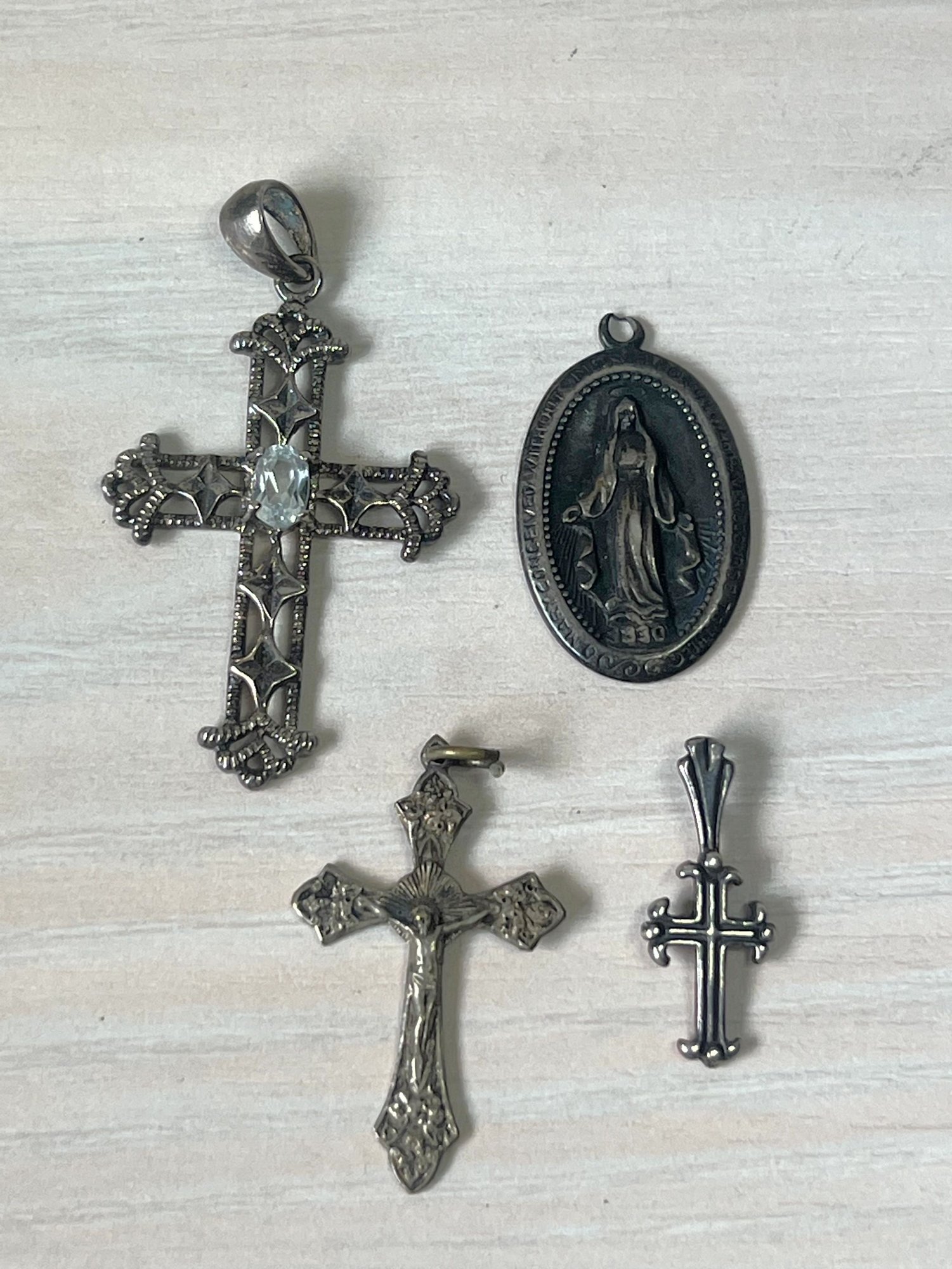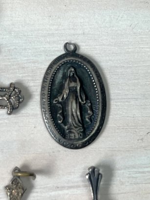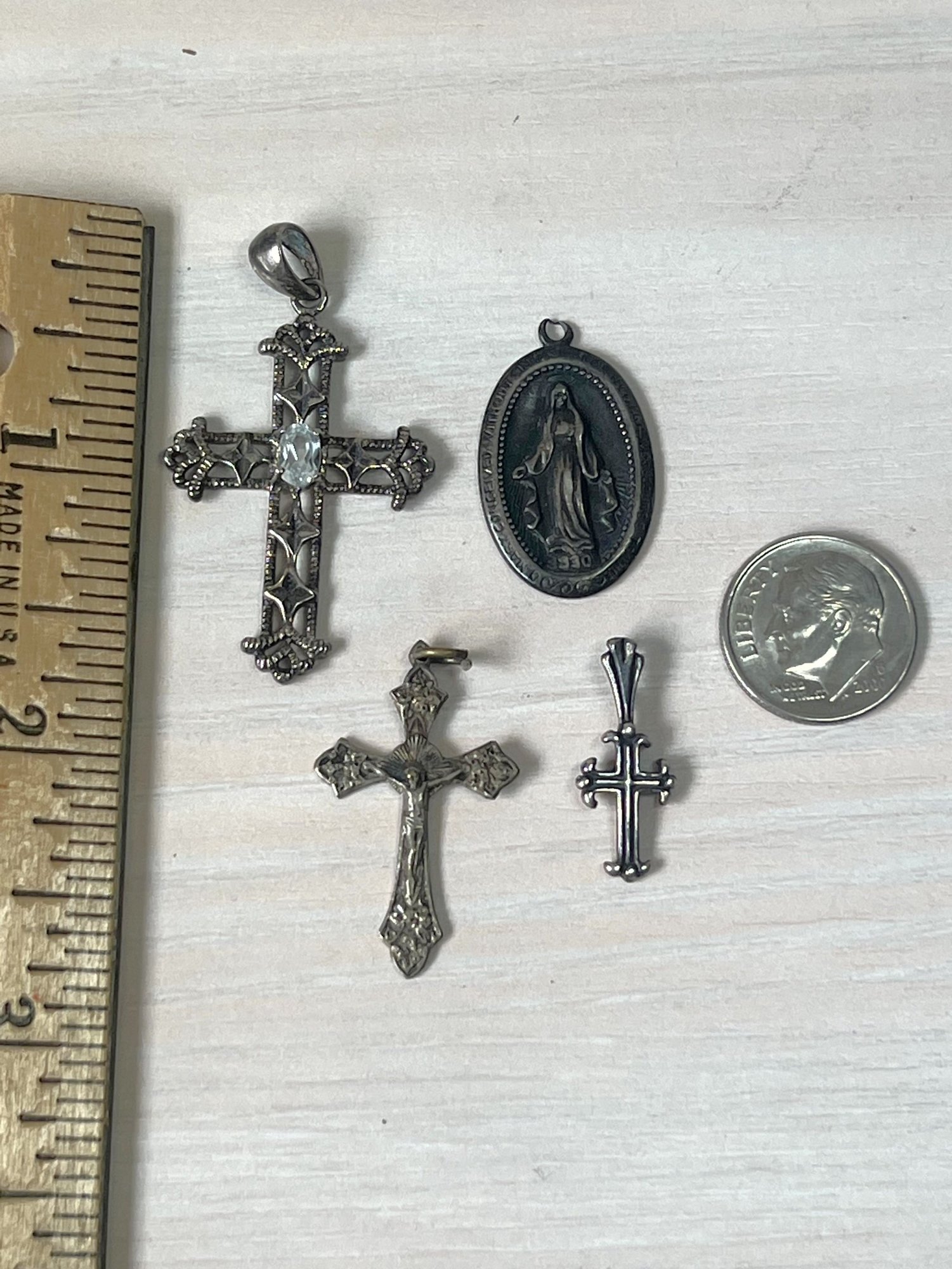 Vintage 2 Sterling Crosses, Virgin Mary Medallion and another cross (DL80)