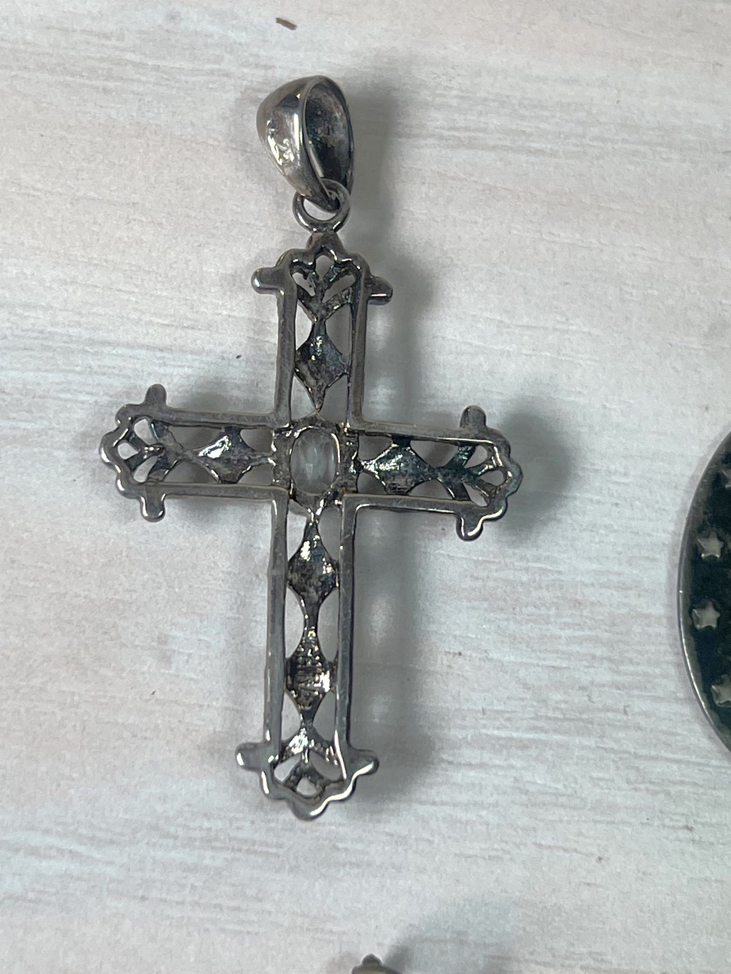 Largest filigree cross is marked 925 on the bail. 1 ¾” high