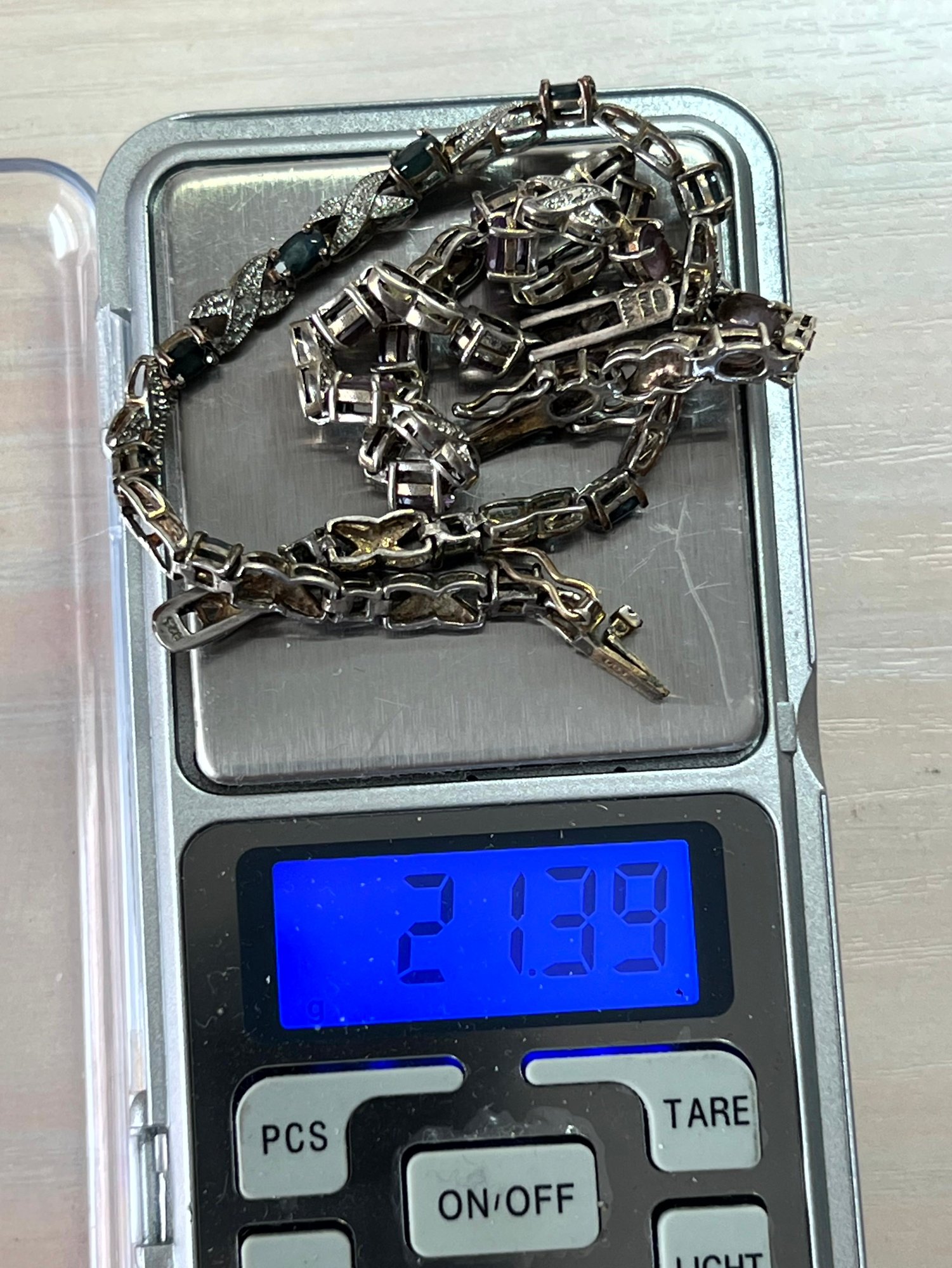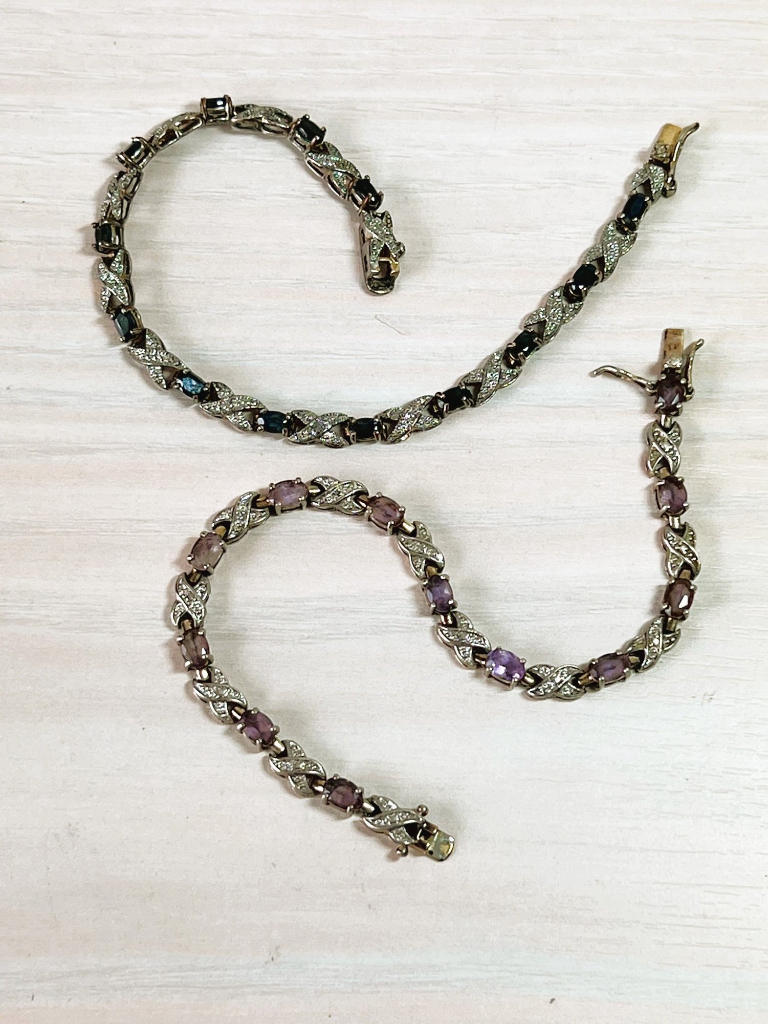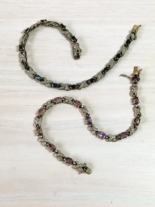 Purple stone one is marked Thai HAN 925. Approx 7 3/4”.