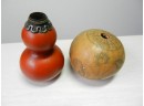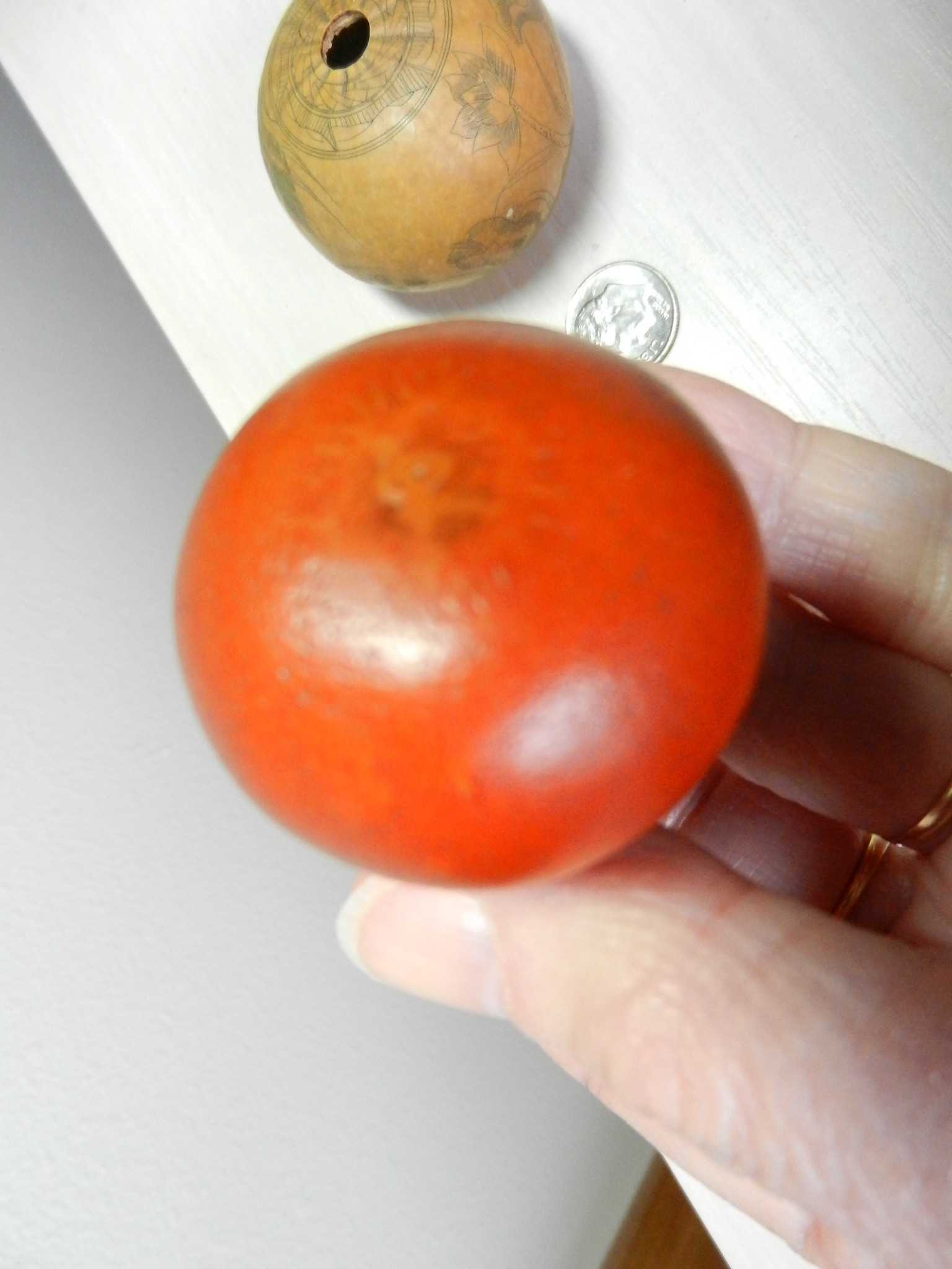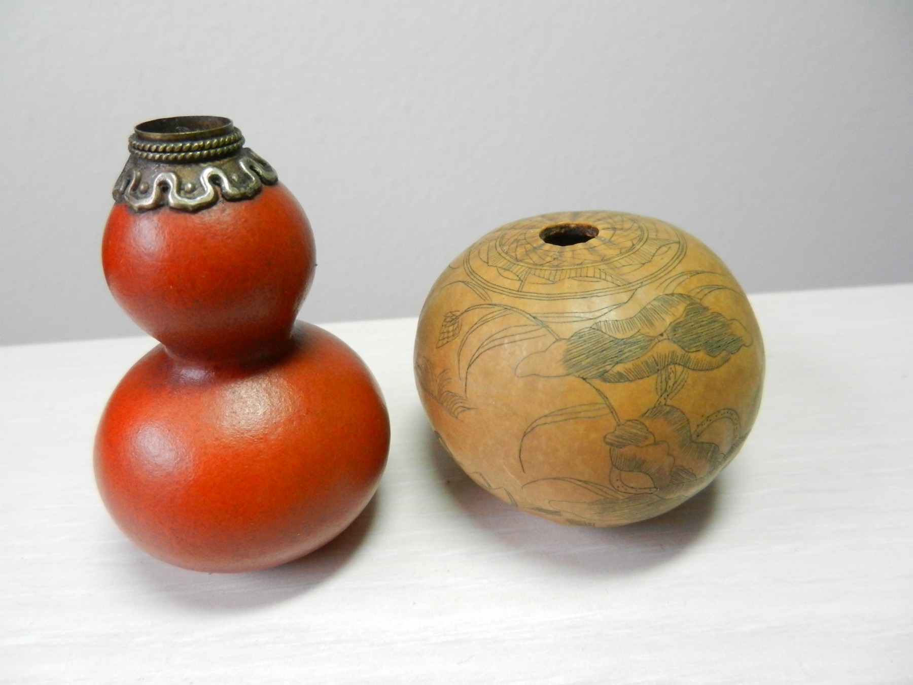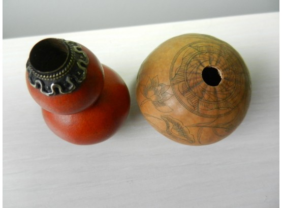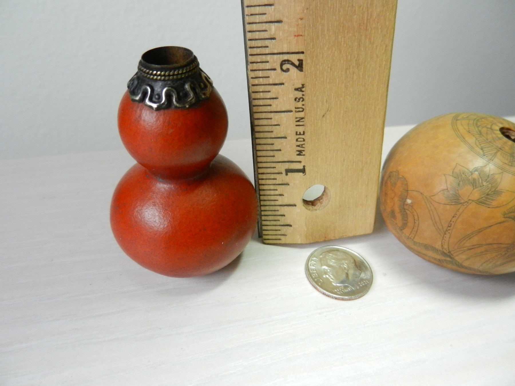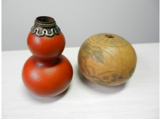Vintage 2 tiny seed pod? calabash/gourds? one with engraved design (DP60)