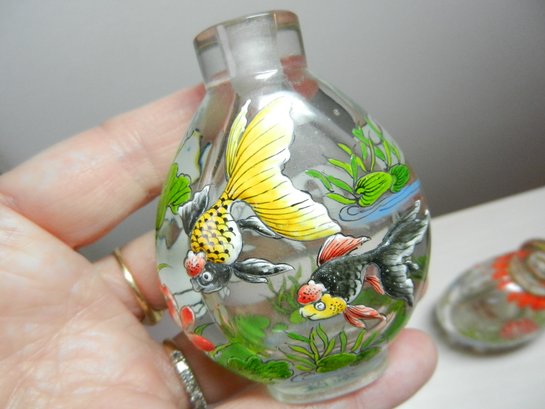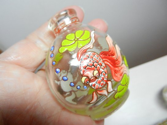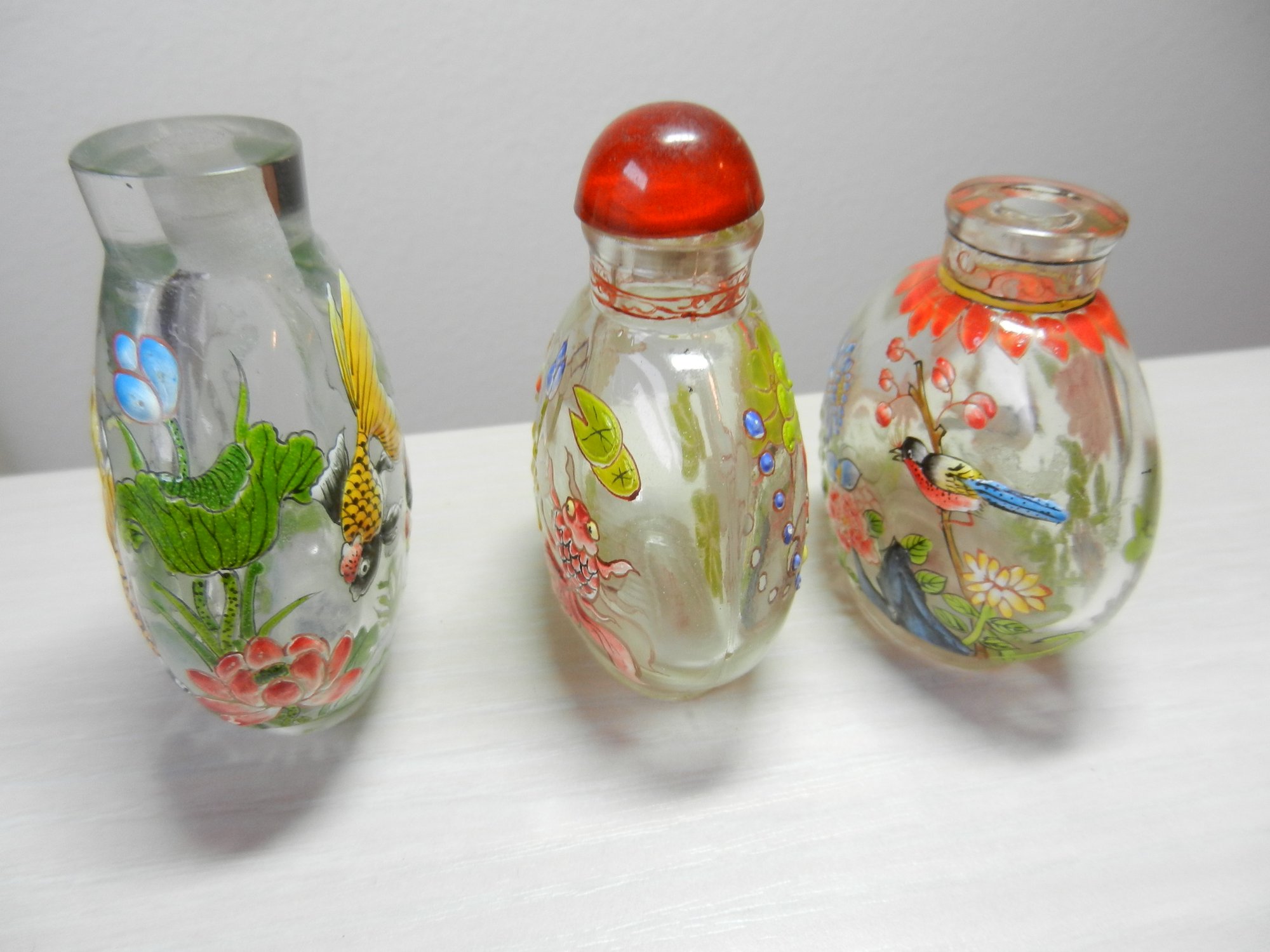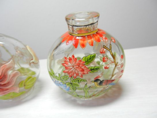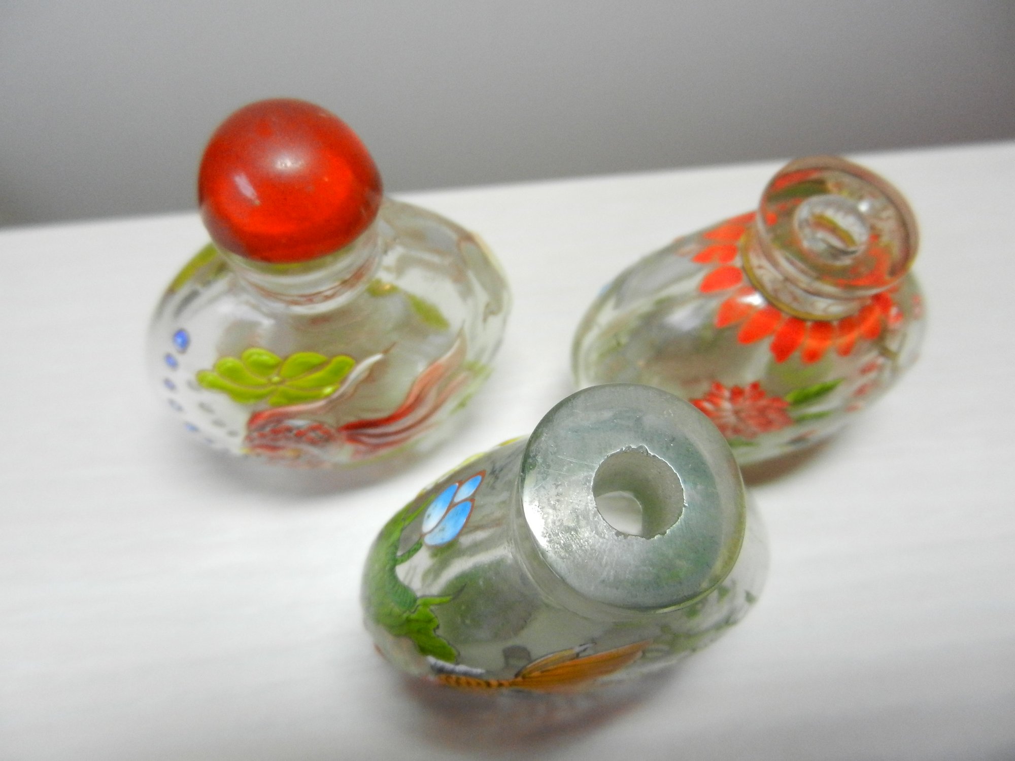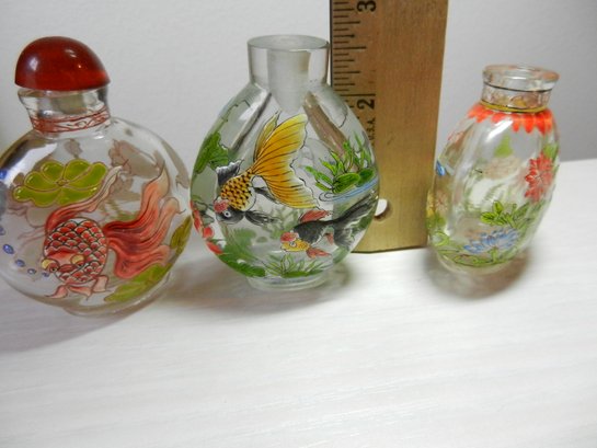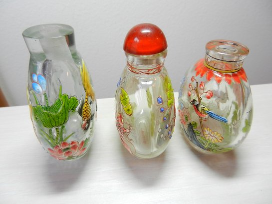 Vintage 3 clear glass with embossed patterns snuff/perfume bottles (DP39)