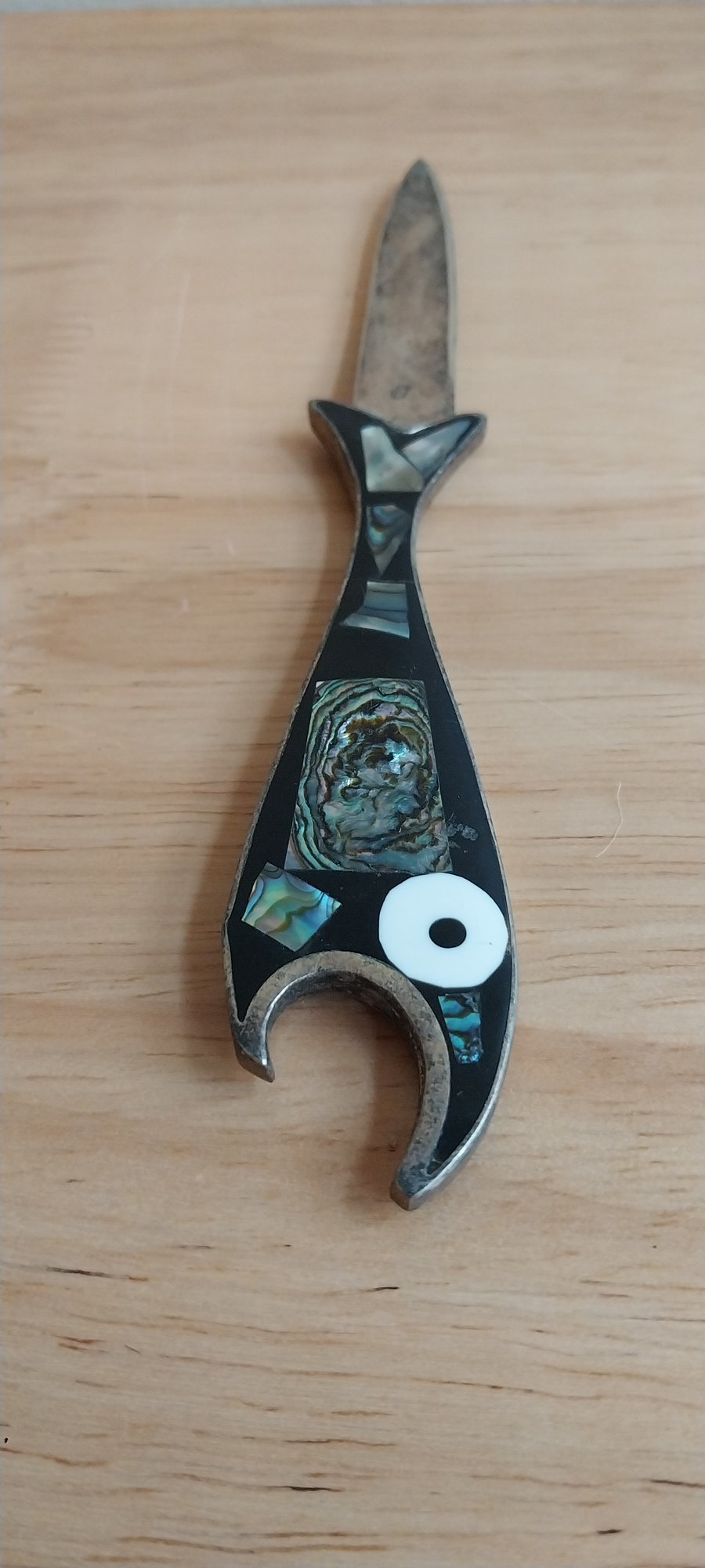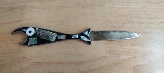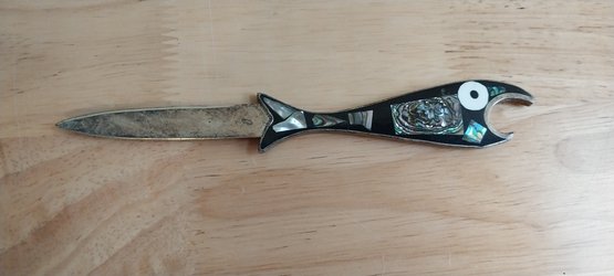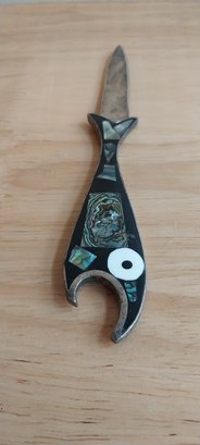 Vintage Alpaca Mexico Silver Abalone Fish Bottle Opener