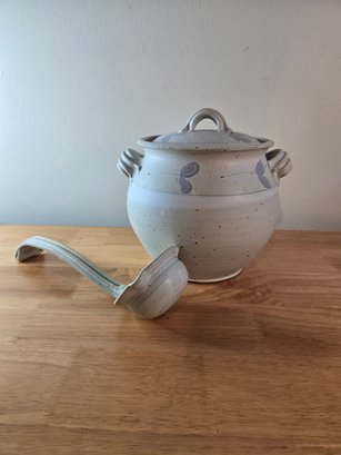 Vintage Barking Spider Pottery Soup Tureen. Decorated in purple flowers