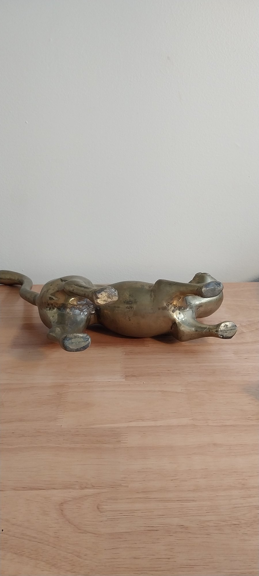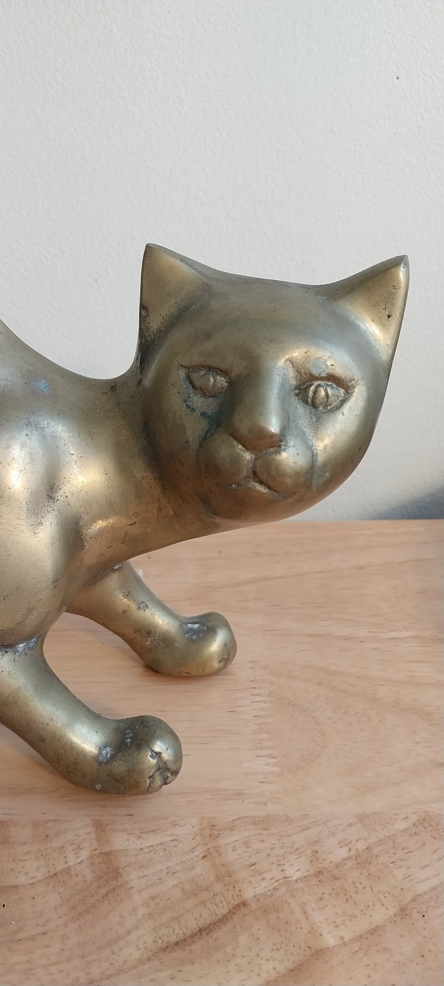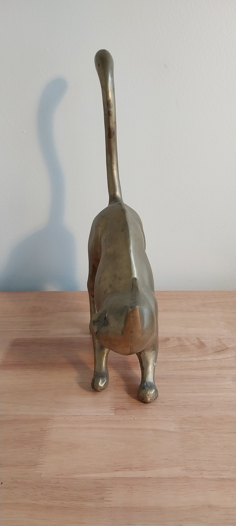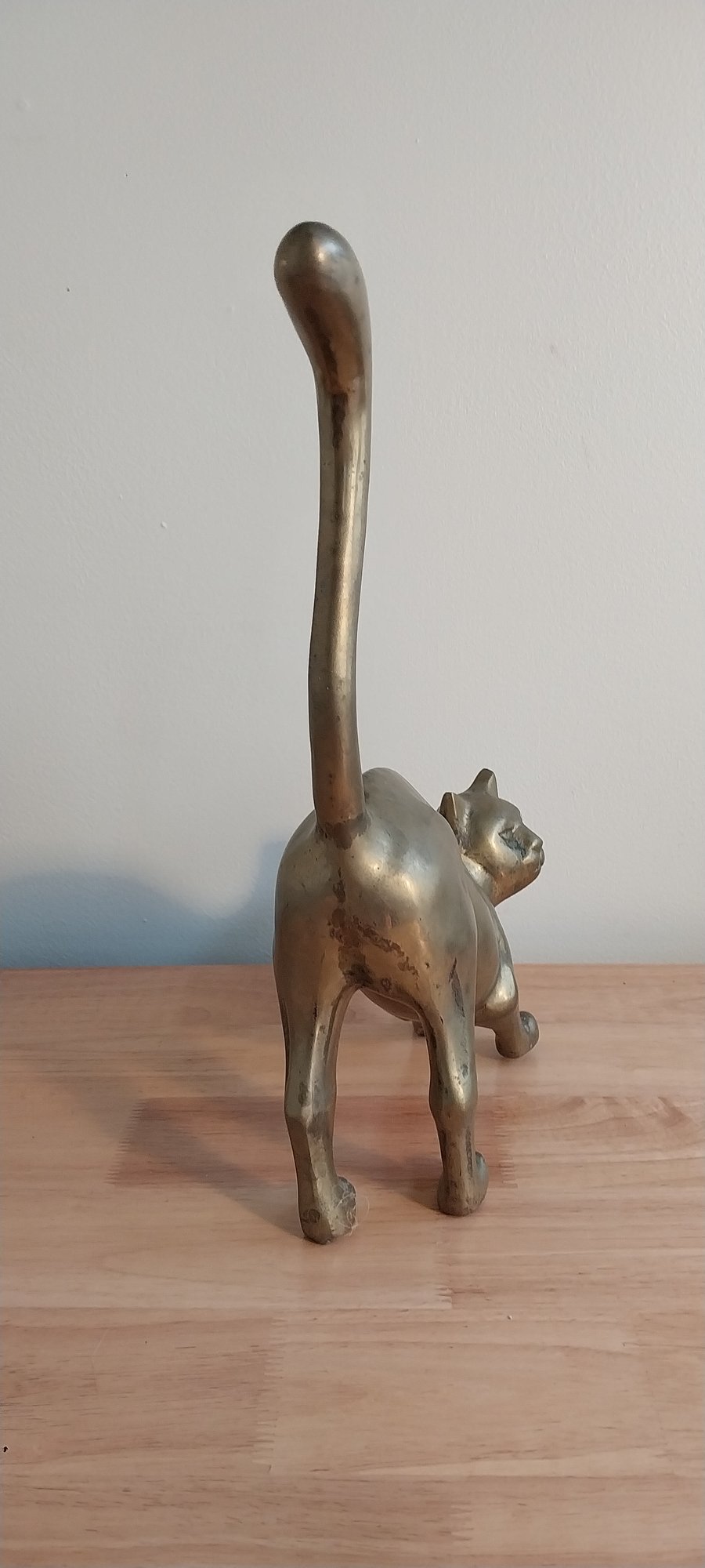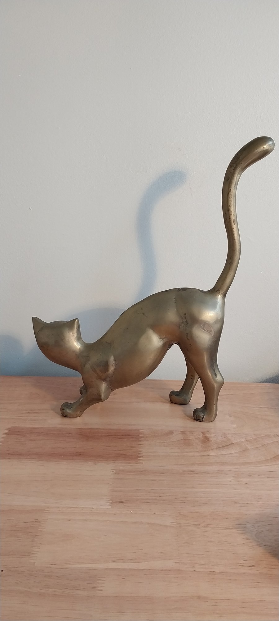 Vintage brass MCM solid brass cat figurine. Siamese cat with raised tail and arched back.