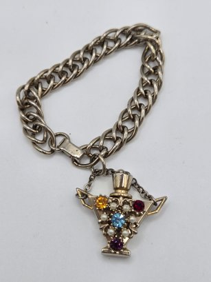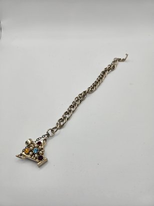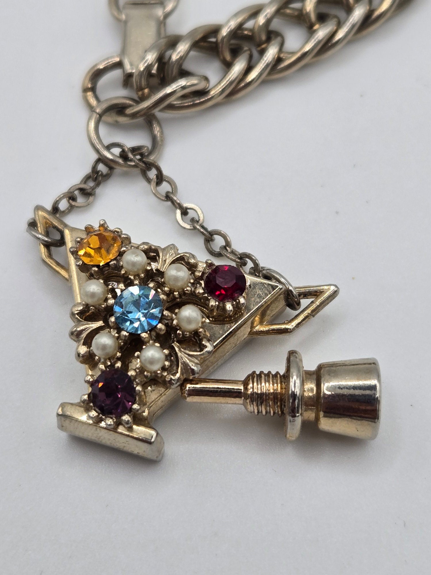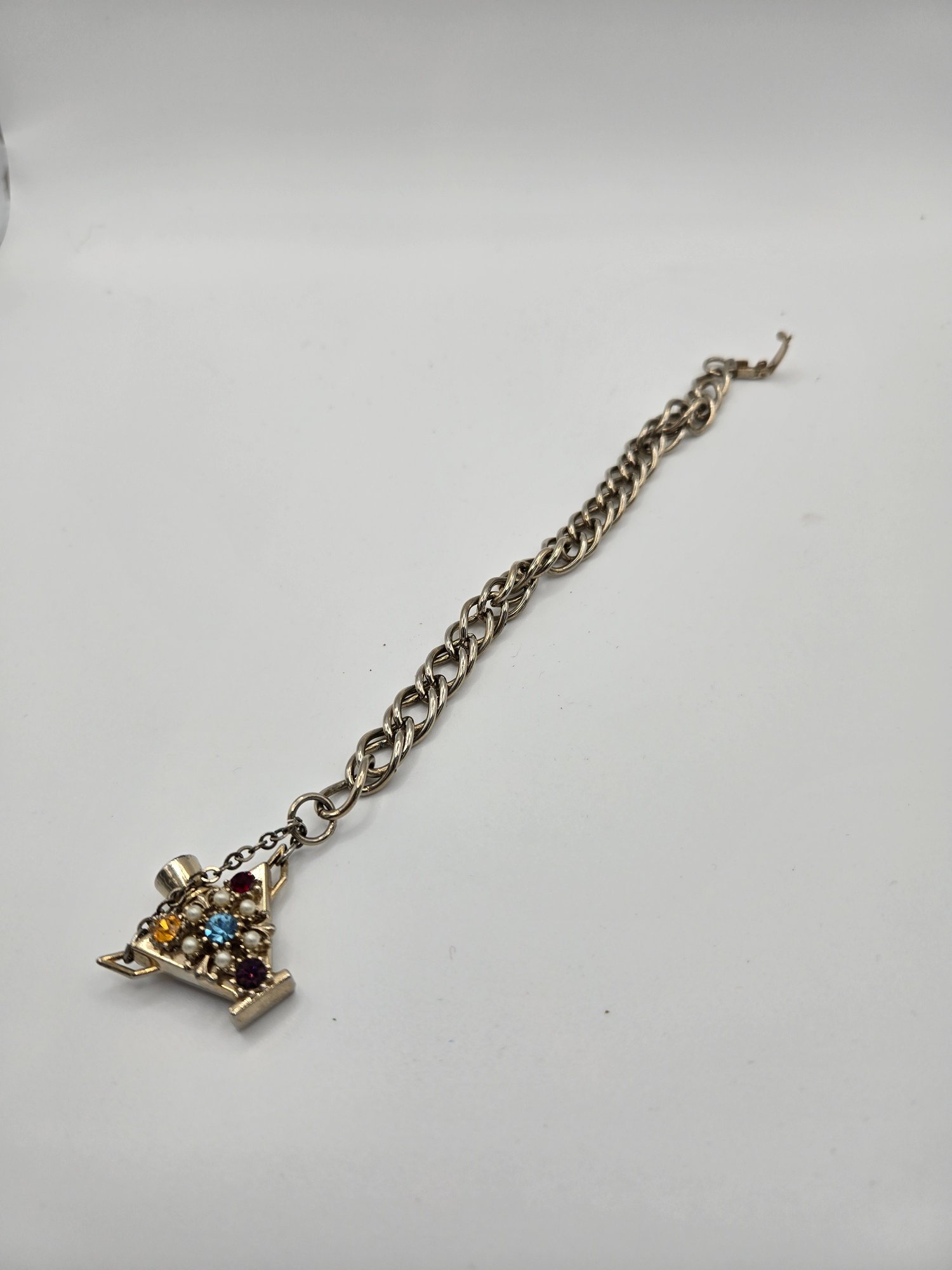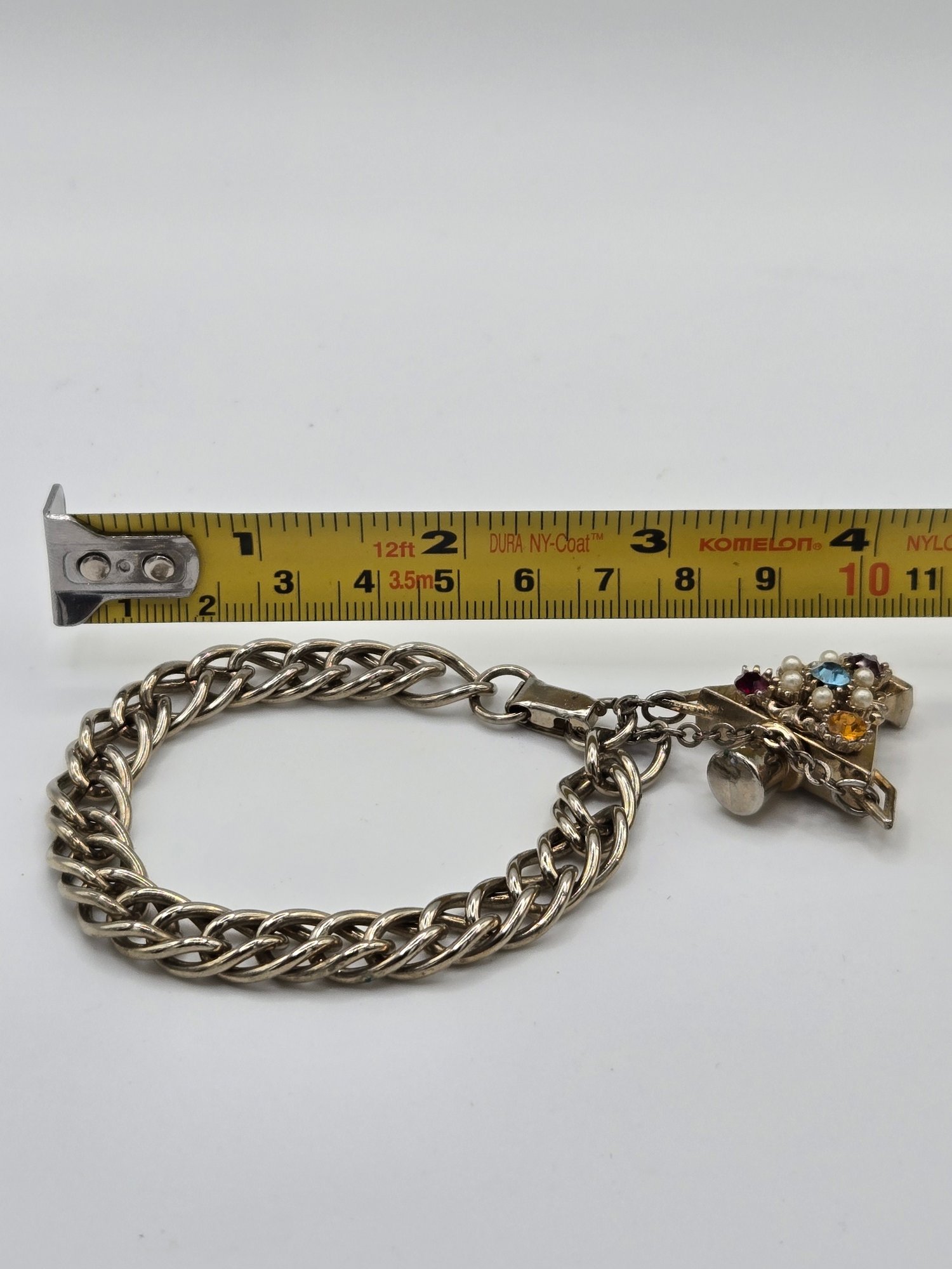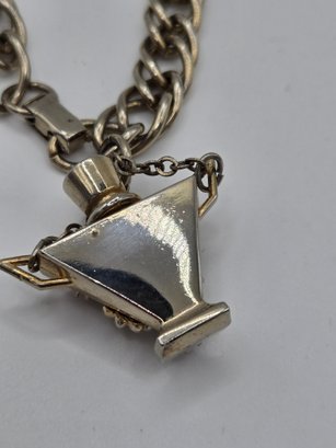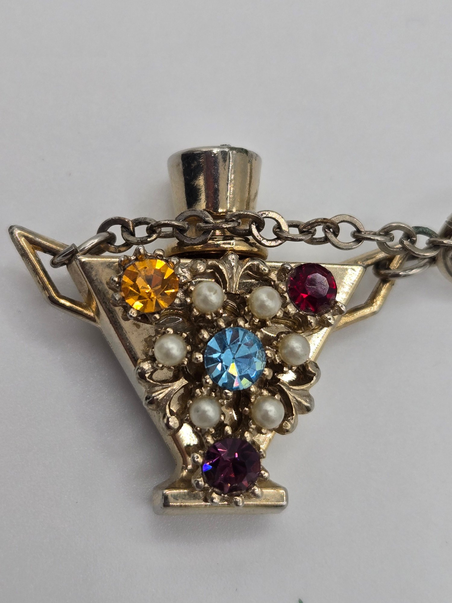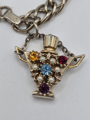 Vintage faux pearl and jeweled rhinestone perfume bottle charm bracelet.