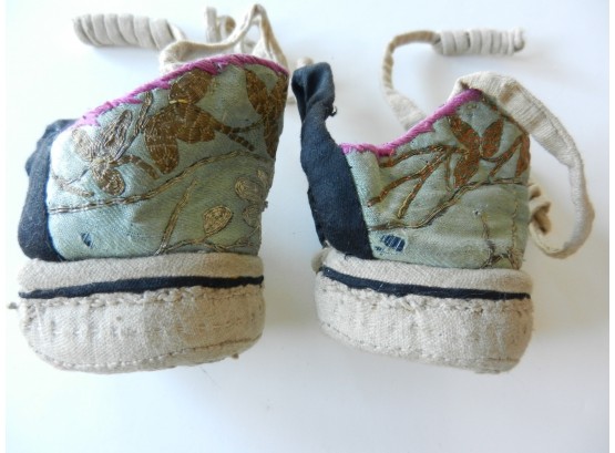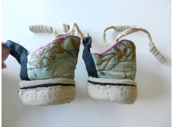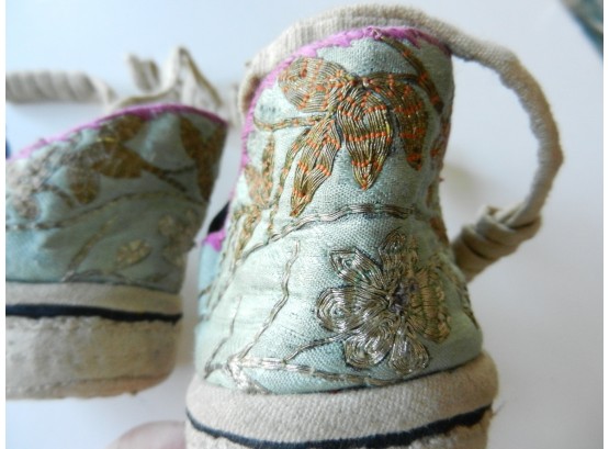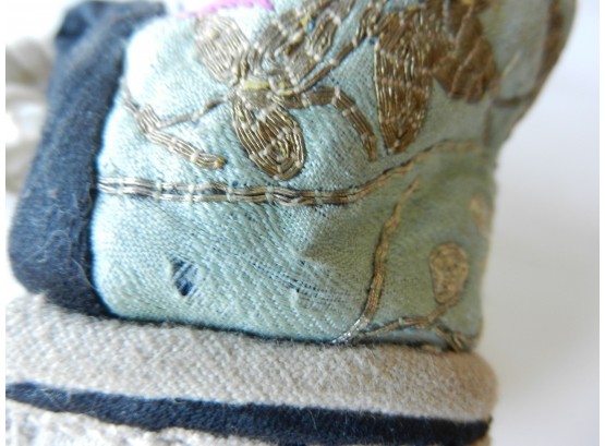 Vintage Chinese metallic embroidered silk lotus overshoes – heel blocks (DP78)