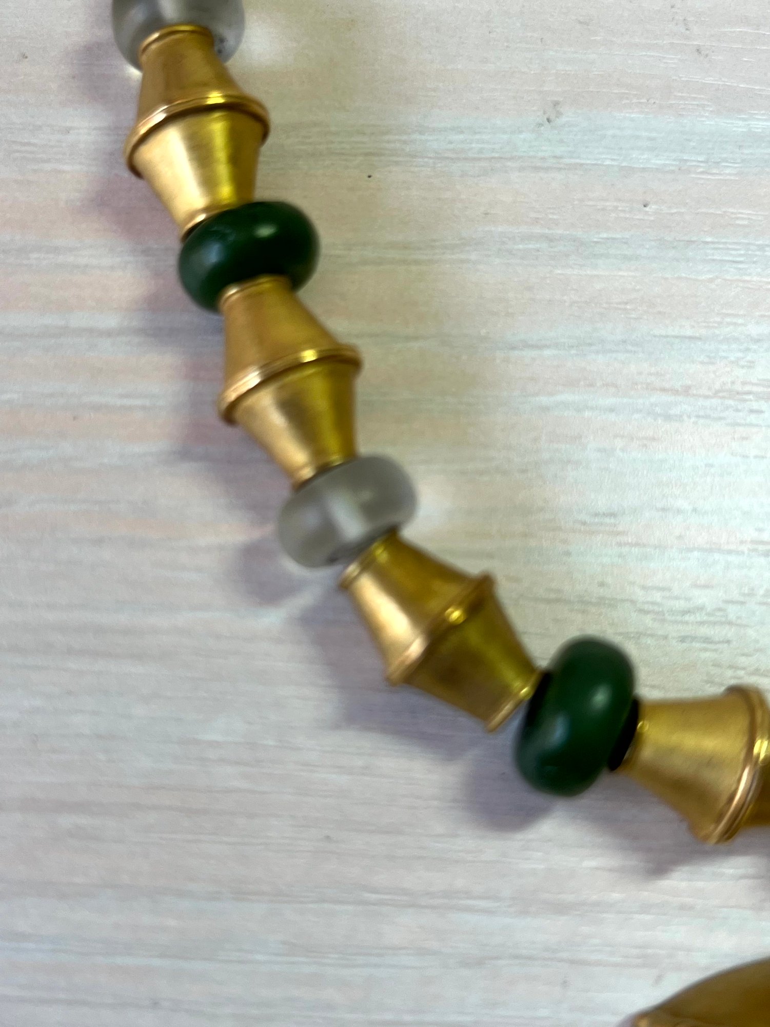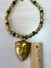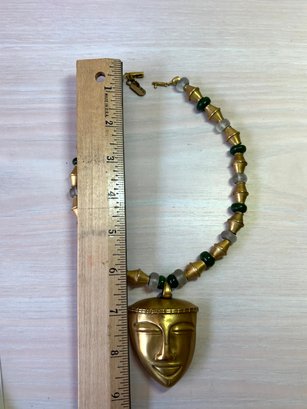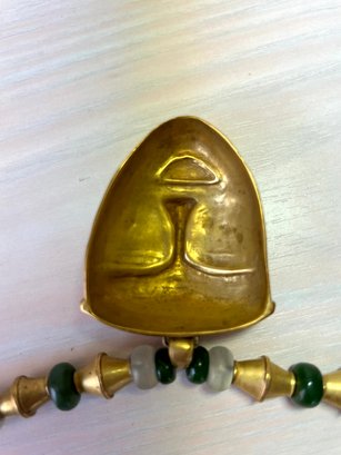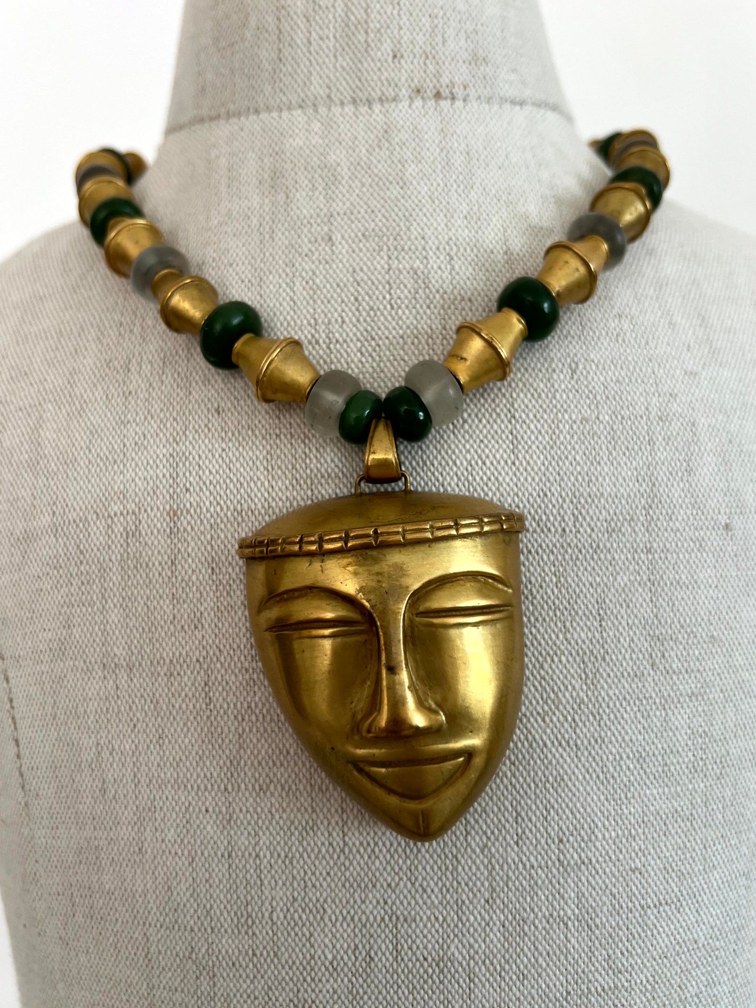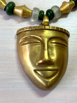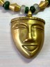 Vintage Columbian gold tone mask with green stones necklace (DL71)