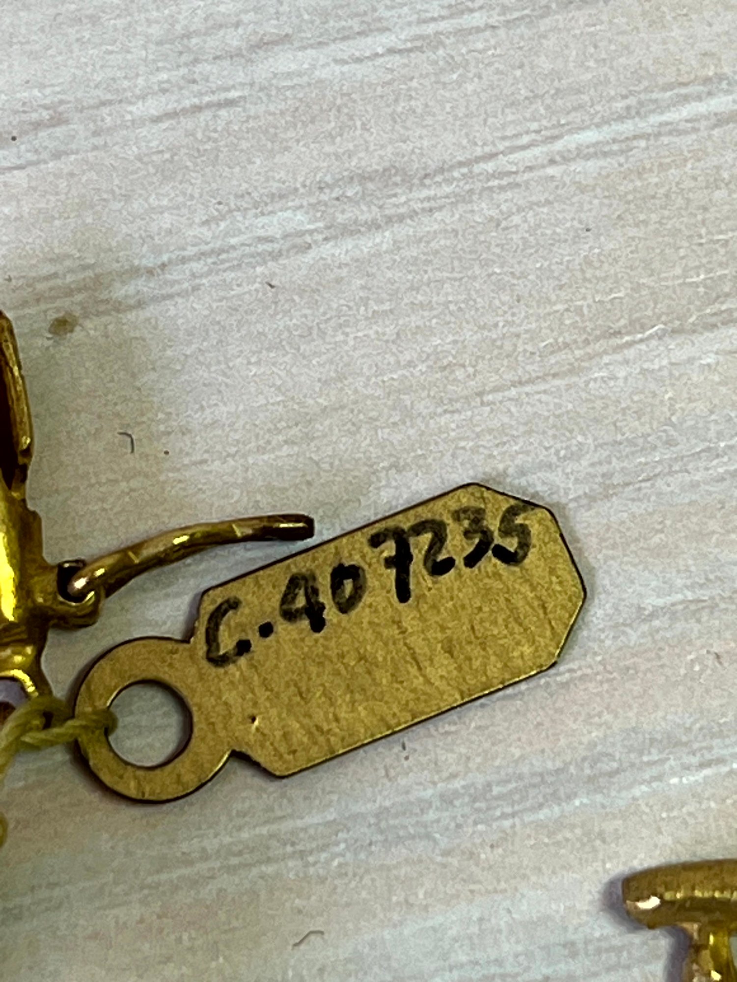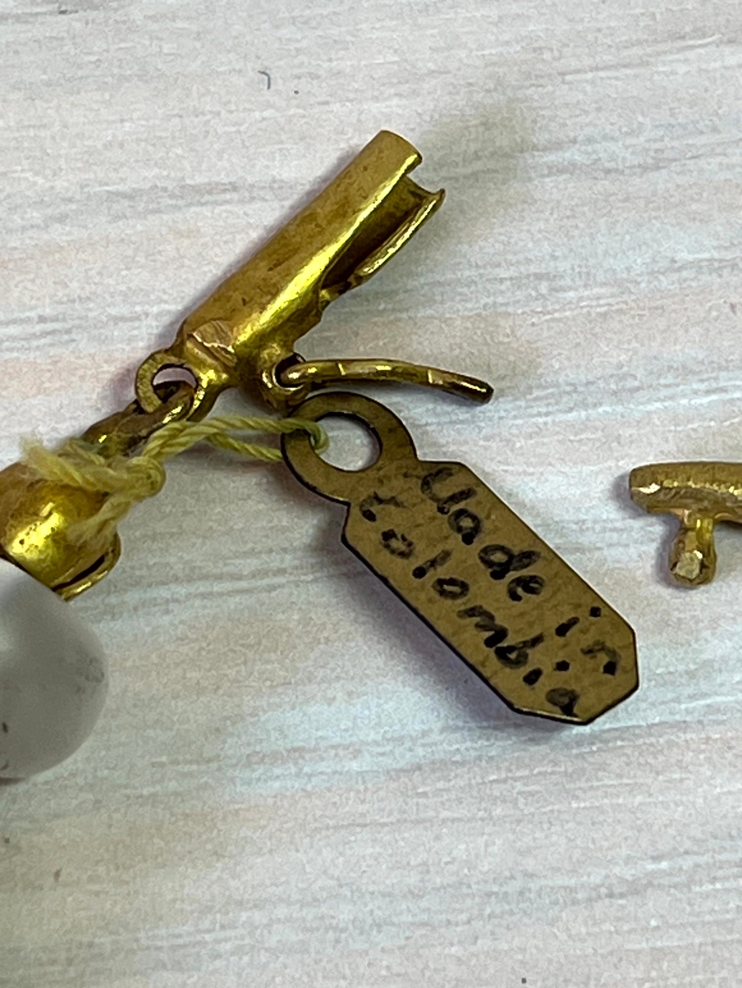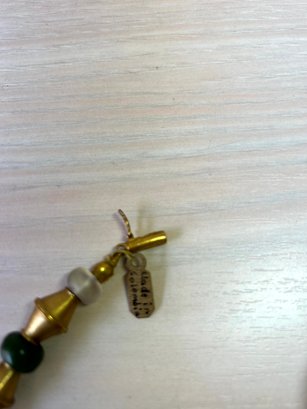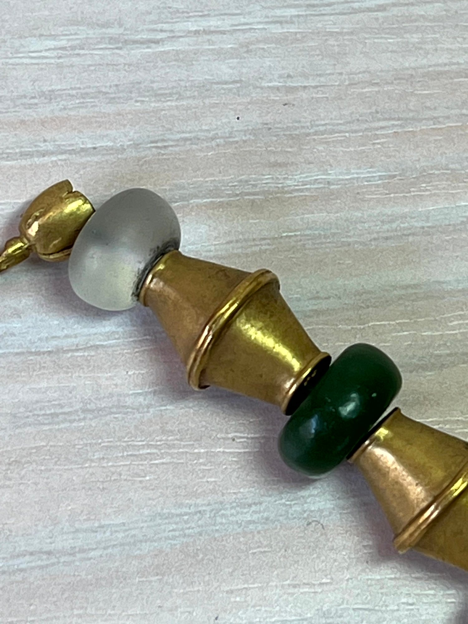 Vintage Columbian gold tone mask with green stones necklace (DL71)
