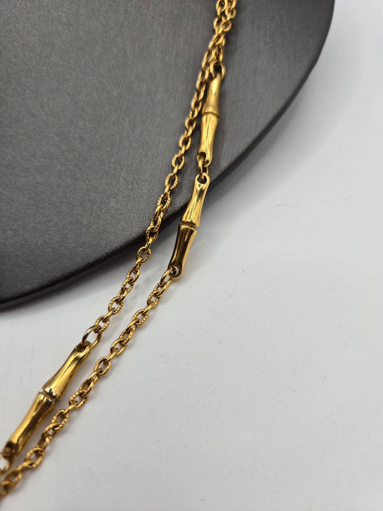 Vintage Crown Trifari Gold Tone Bamboo Necklace