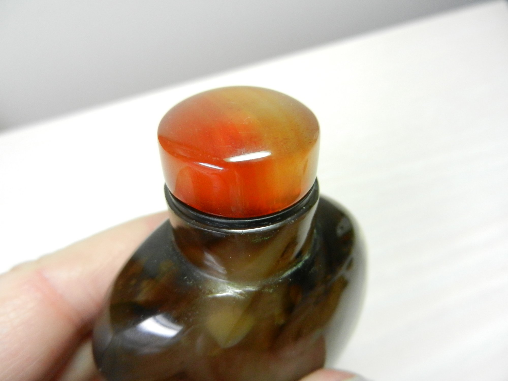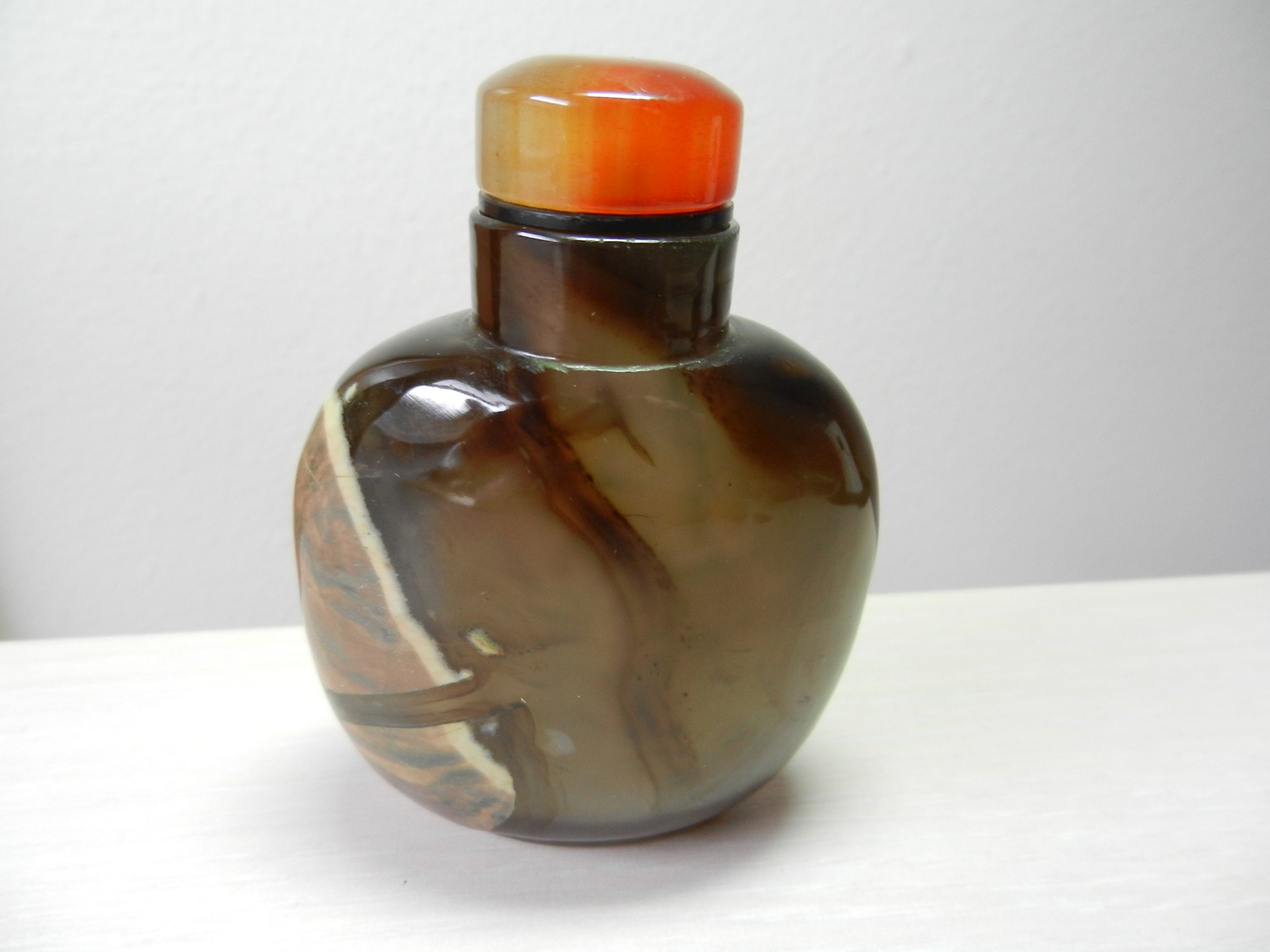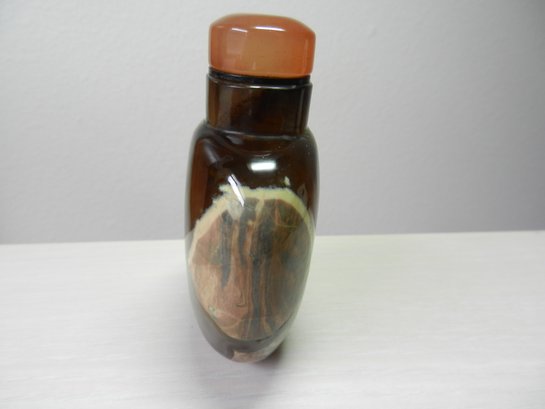 Vintage dark brown agate stripe snuff bottle (DP21)
