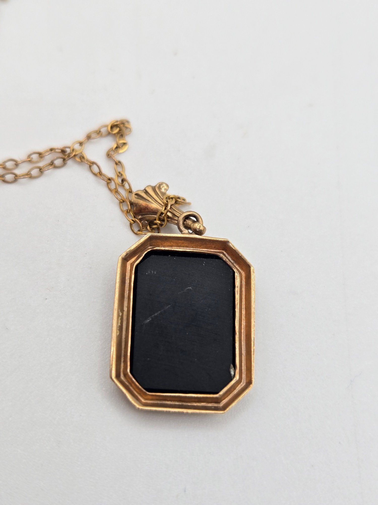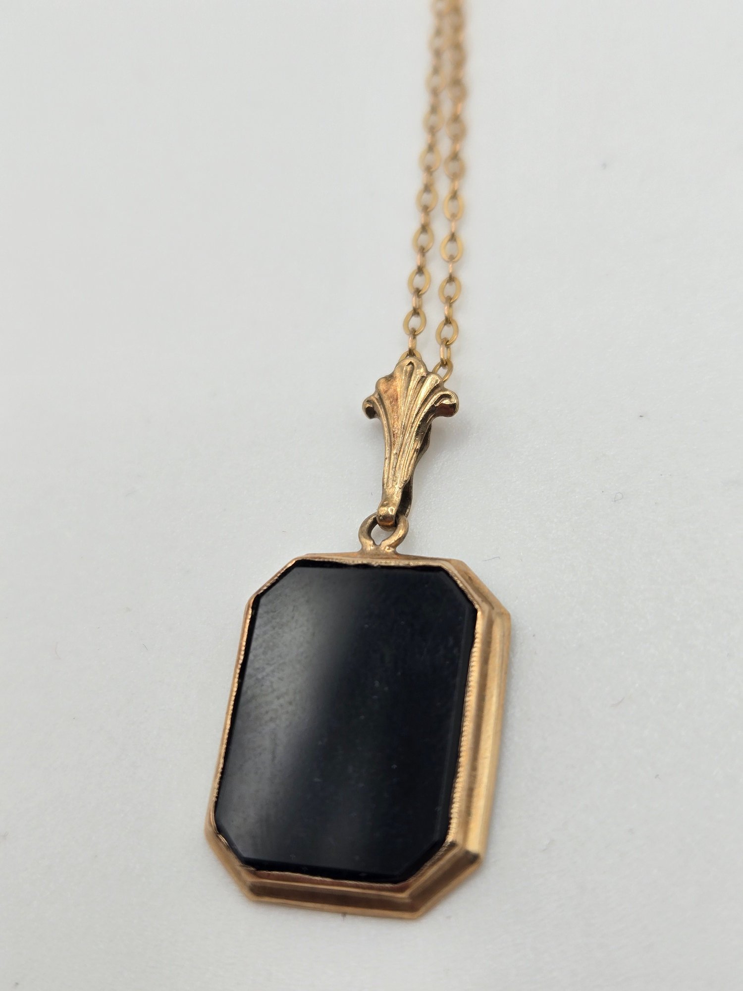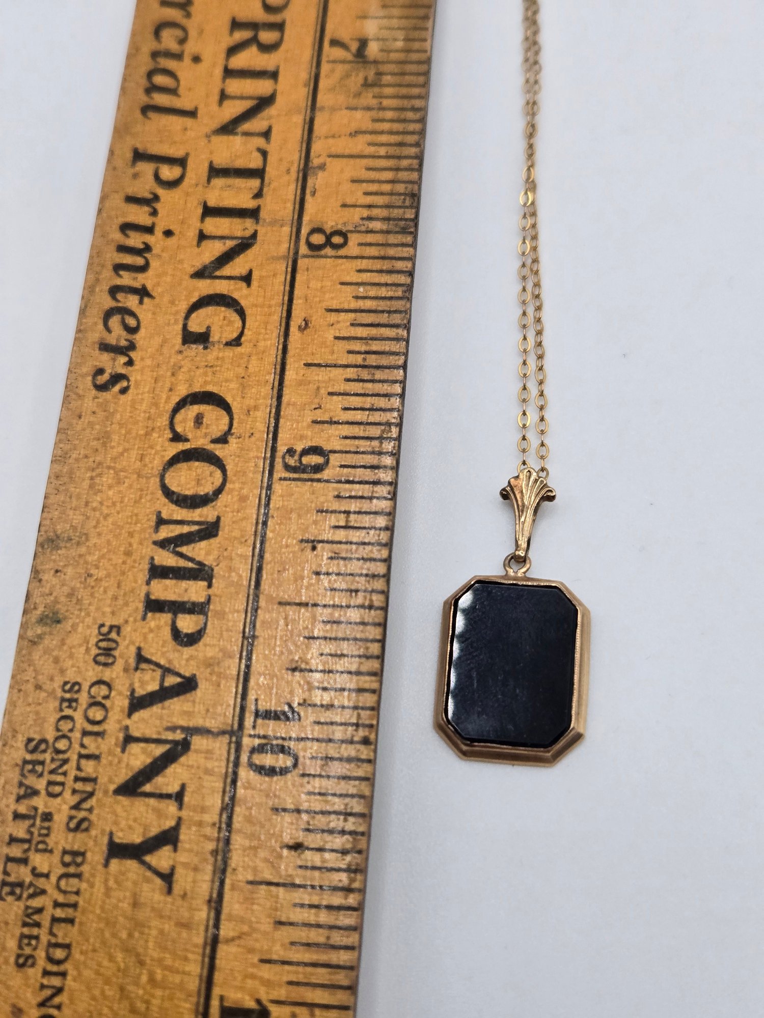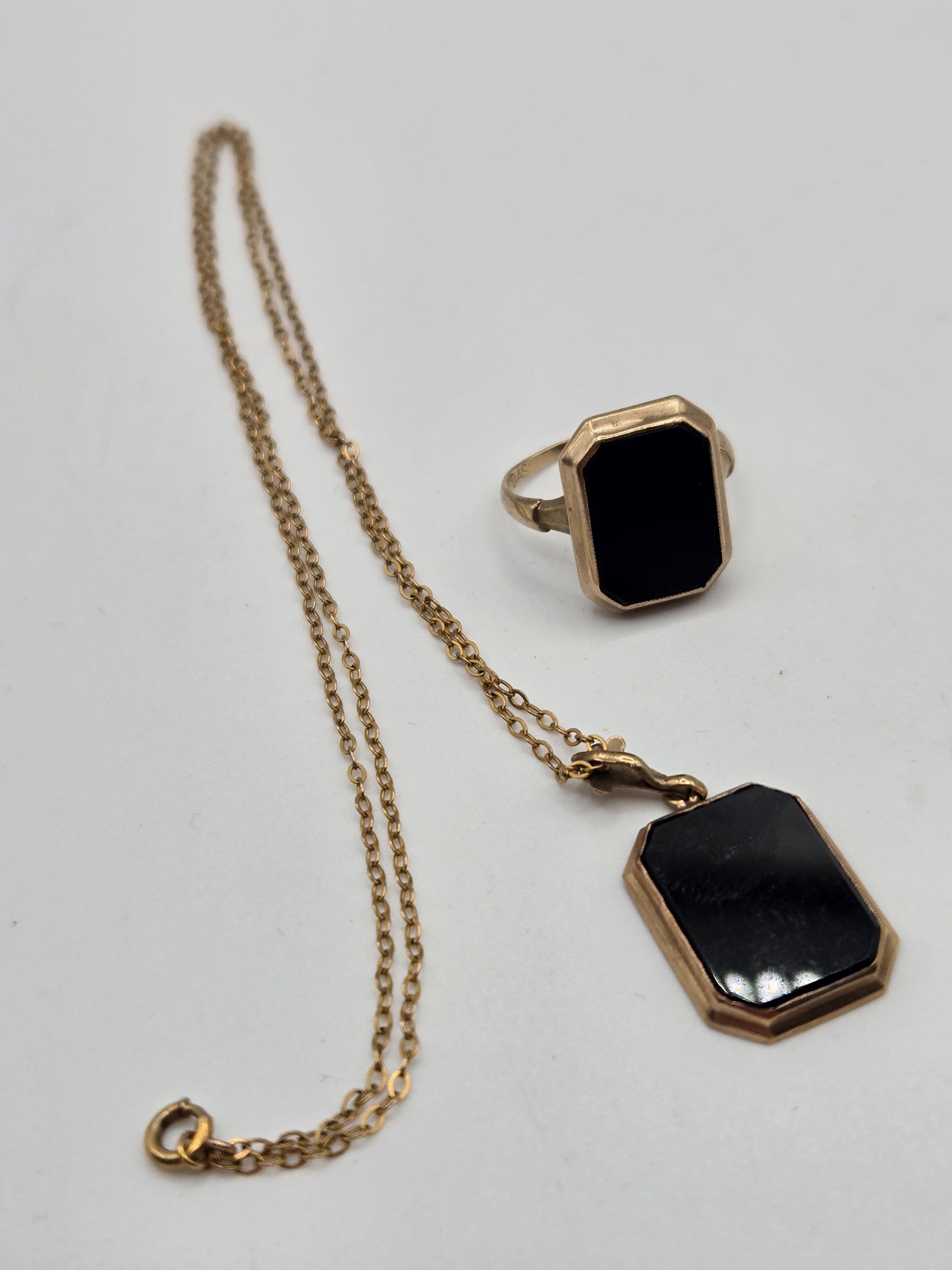 Vintage Dason 10K Yellow Gold Onyx Ring and Pendant Set
