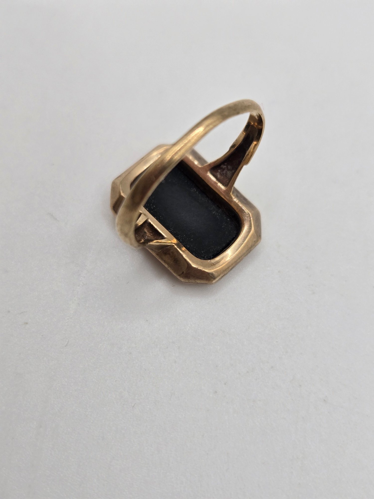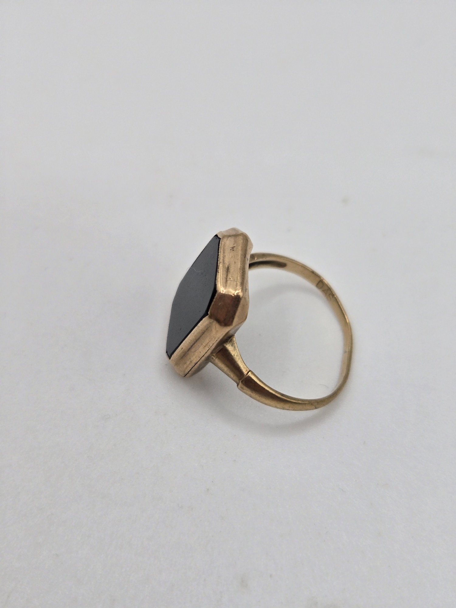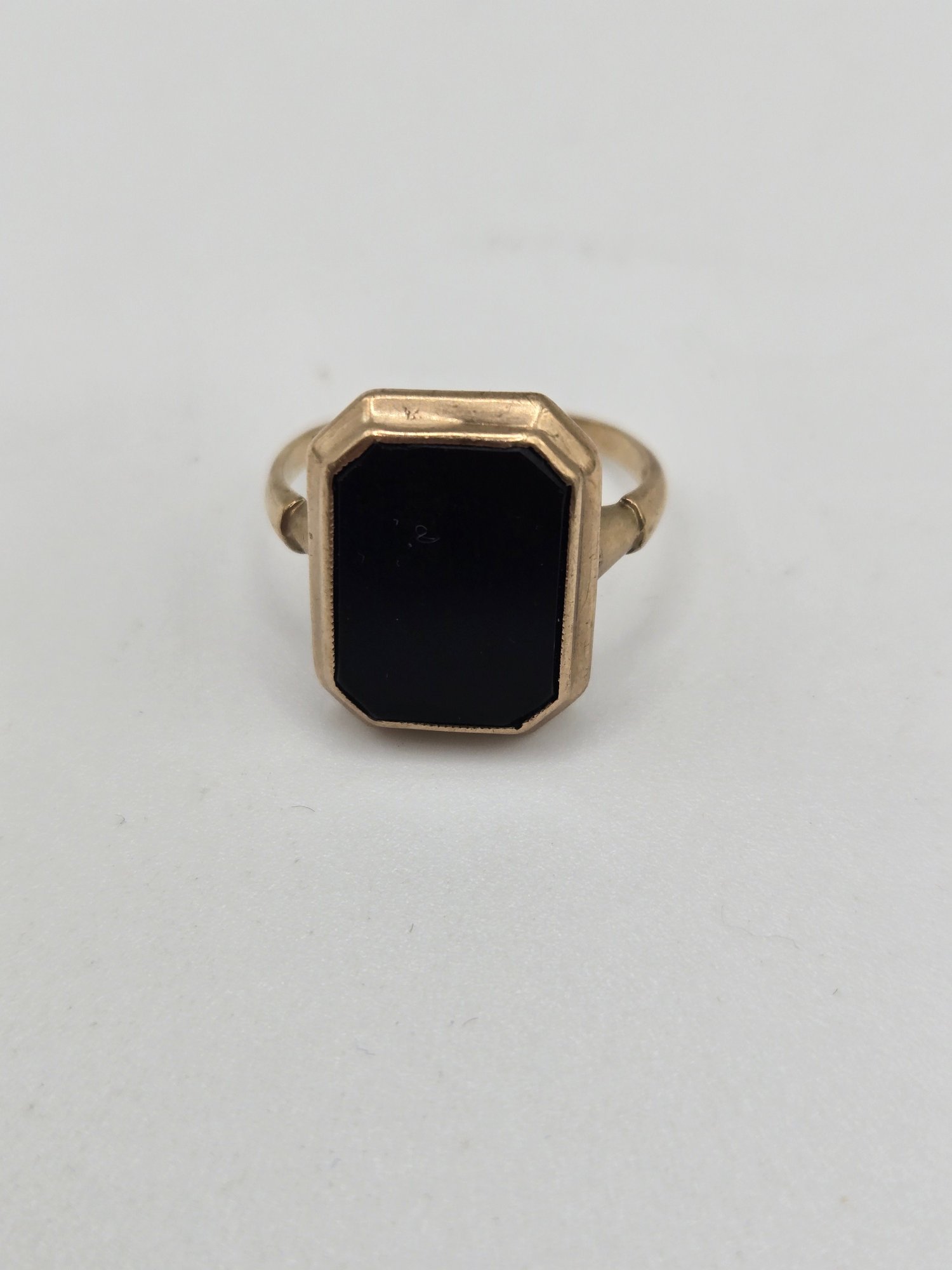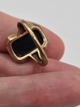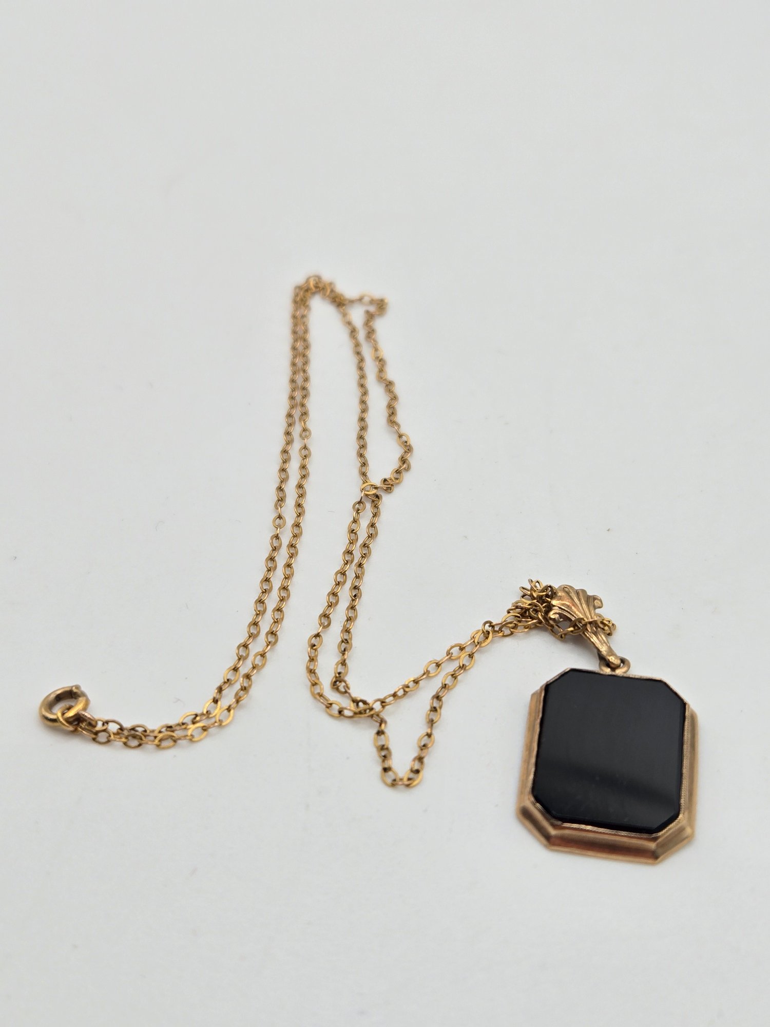 Vintage Dason 10K Yellow Gold Onyx Ring and Pendant Set