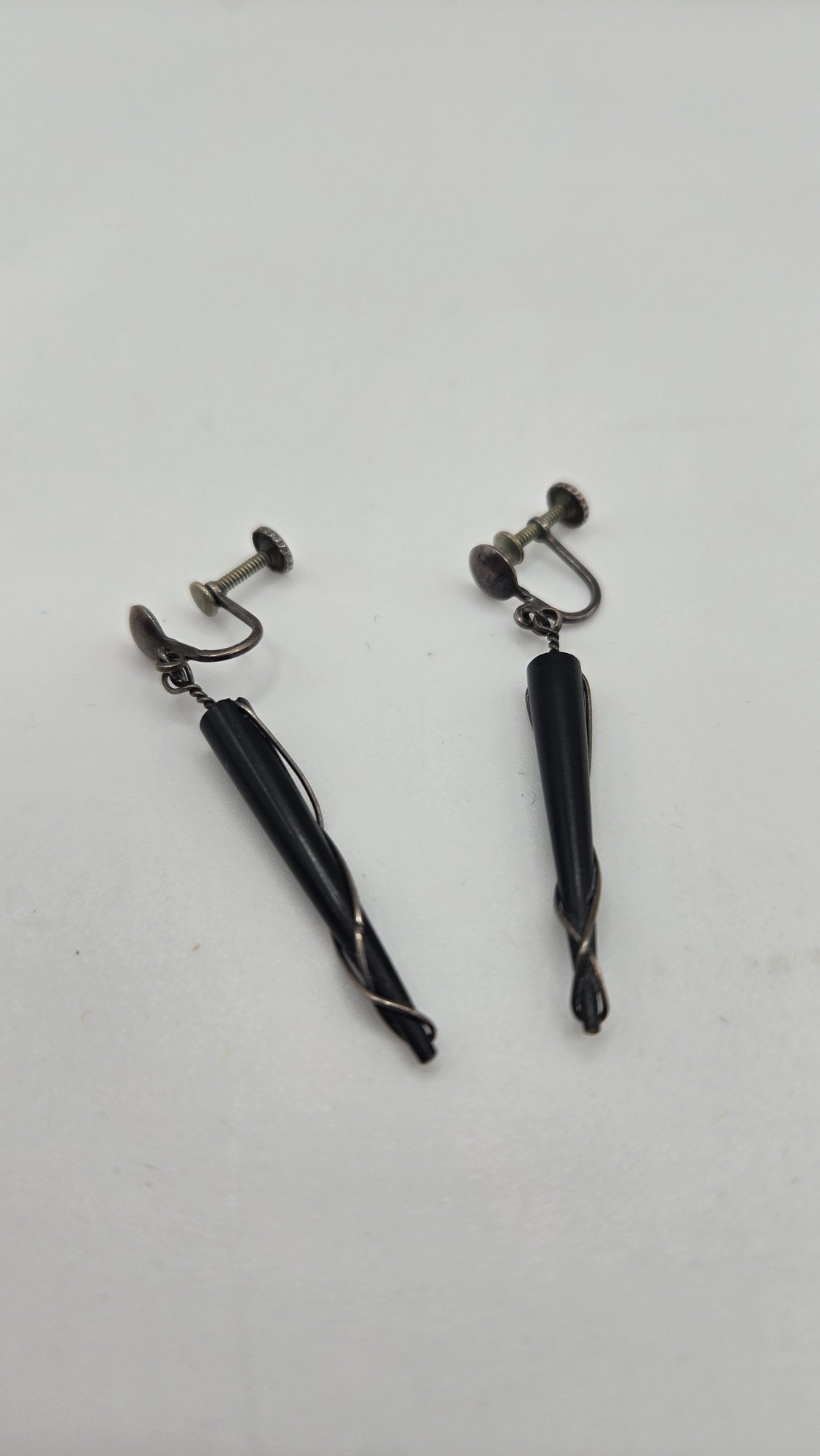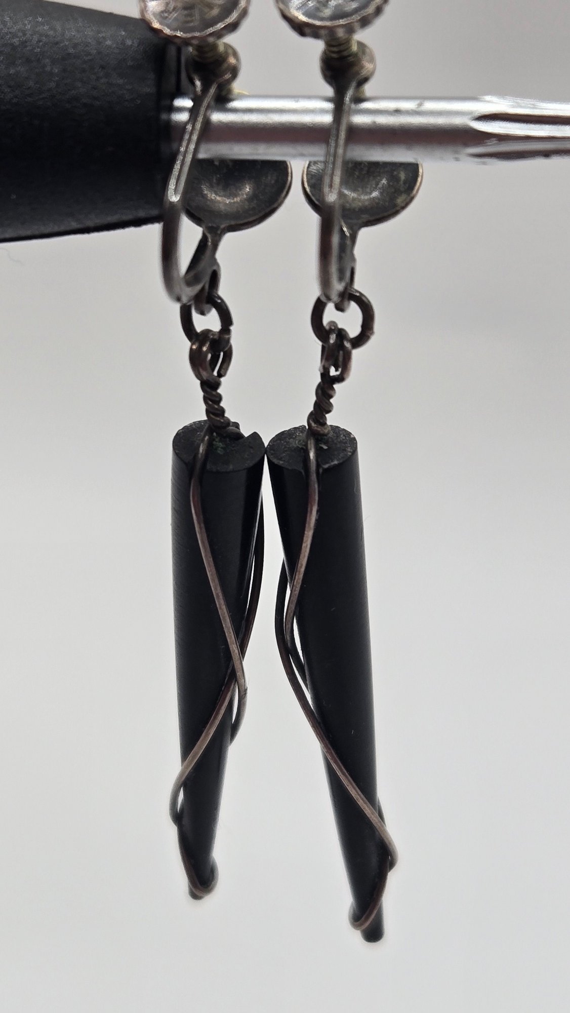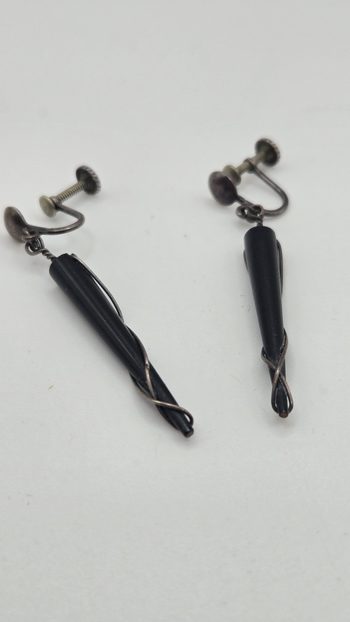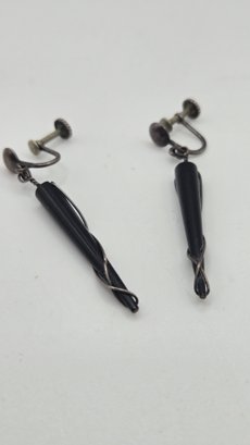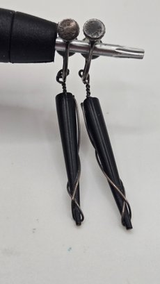 Rare Vintage Ed Weiner Sterling silver earrings. Sterling wire wrapped around ebony wood.