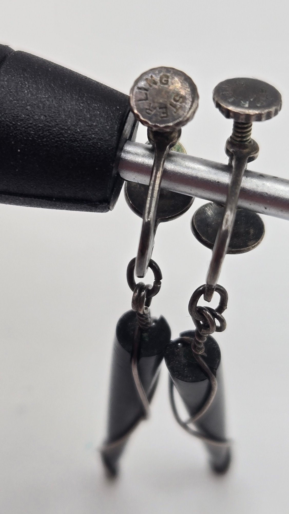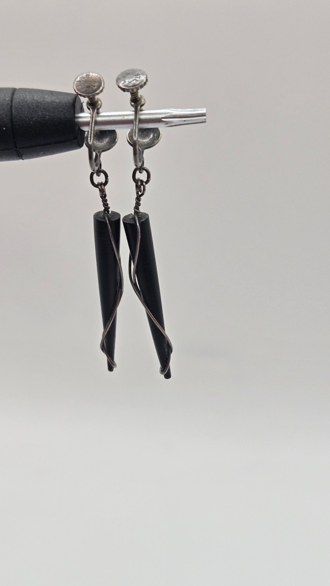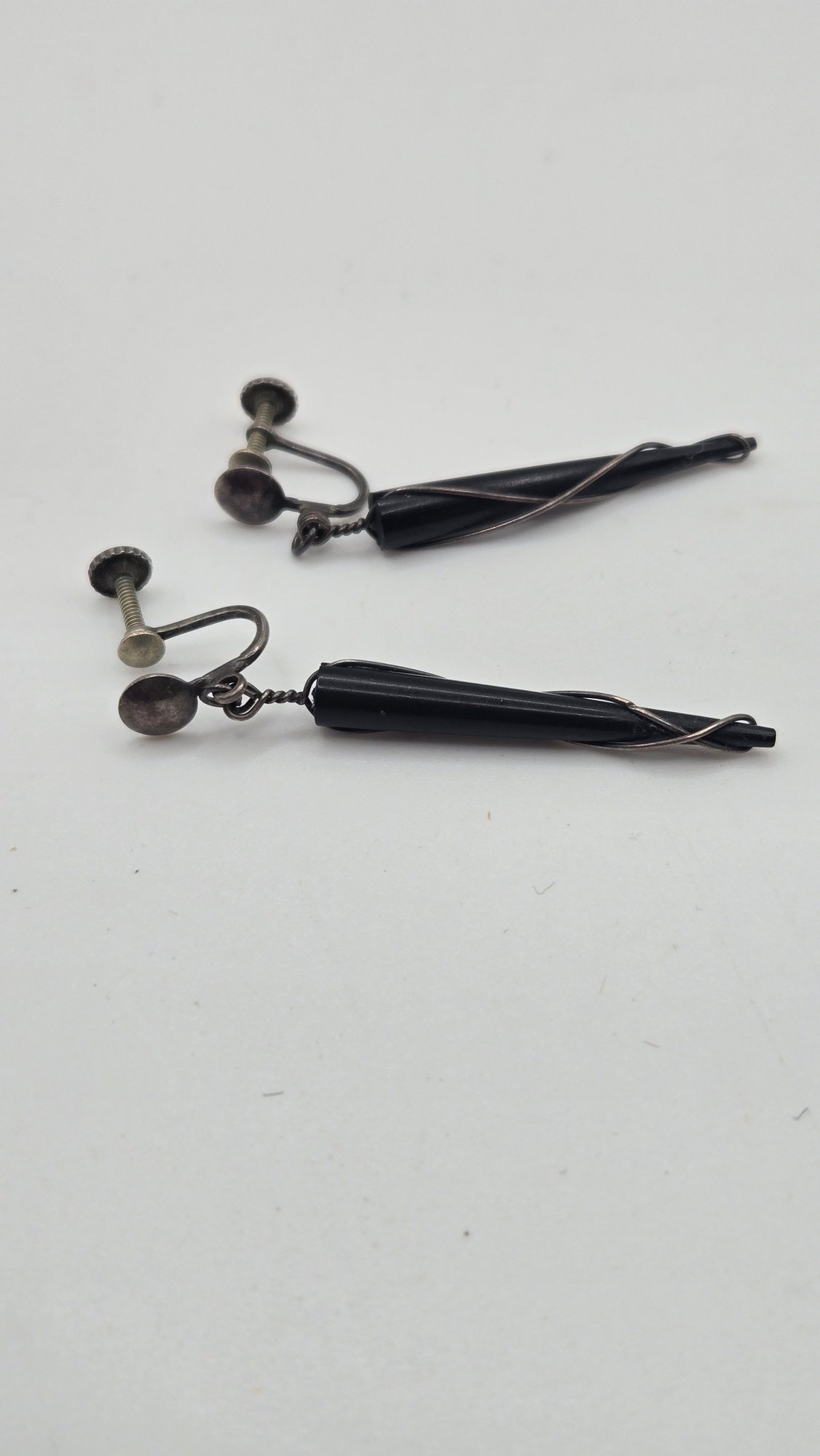 Rare Vintage Ed Weiner Sterling silver earrings. Sterling wire wrapped around ebony wood.