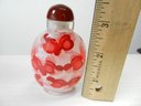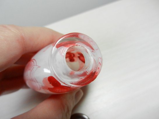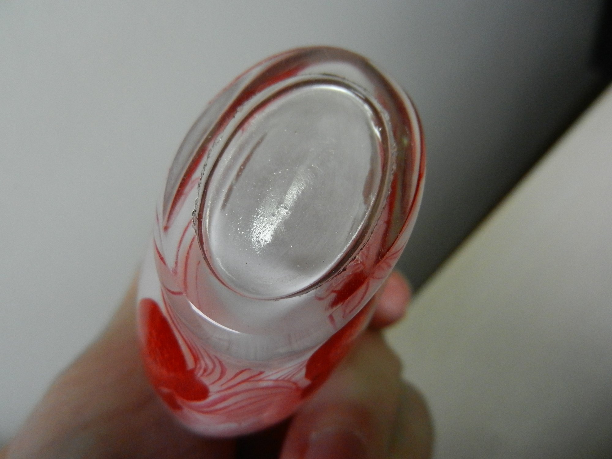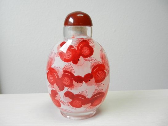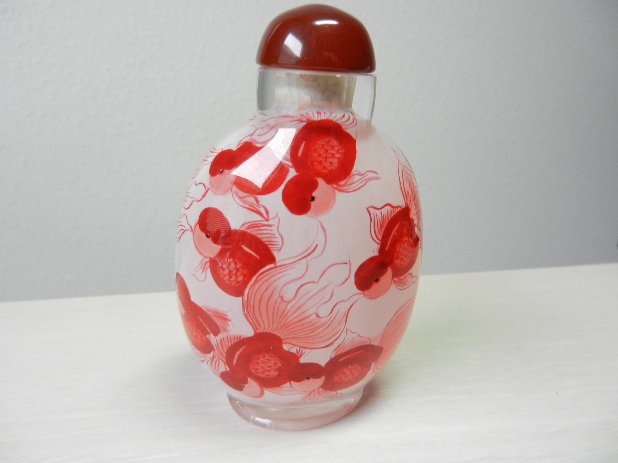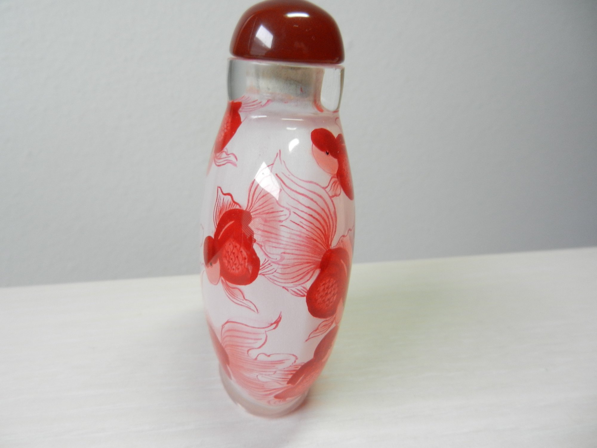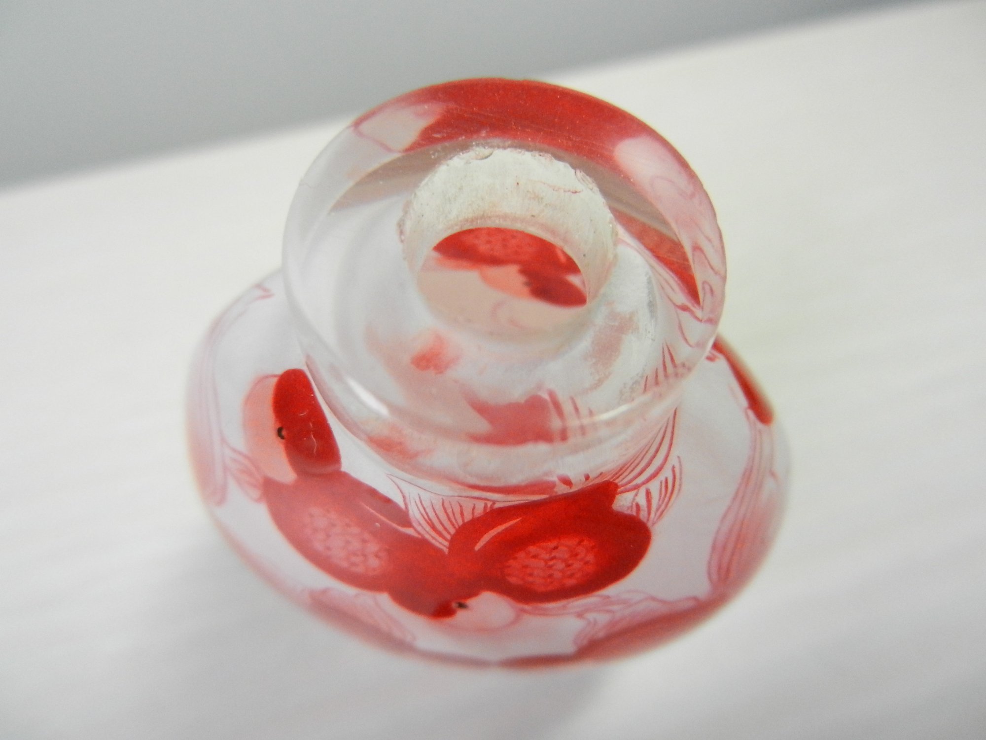 Vintage glass snuff bottle reverse painted – fish, red and white (DP48)