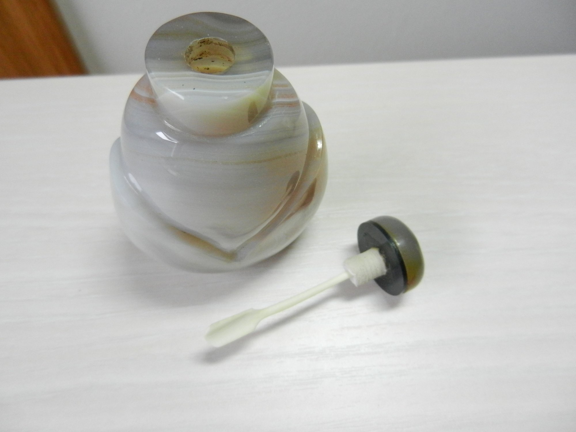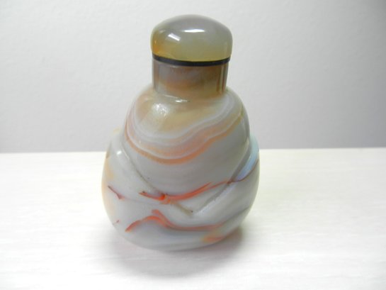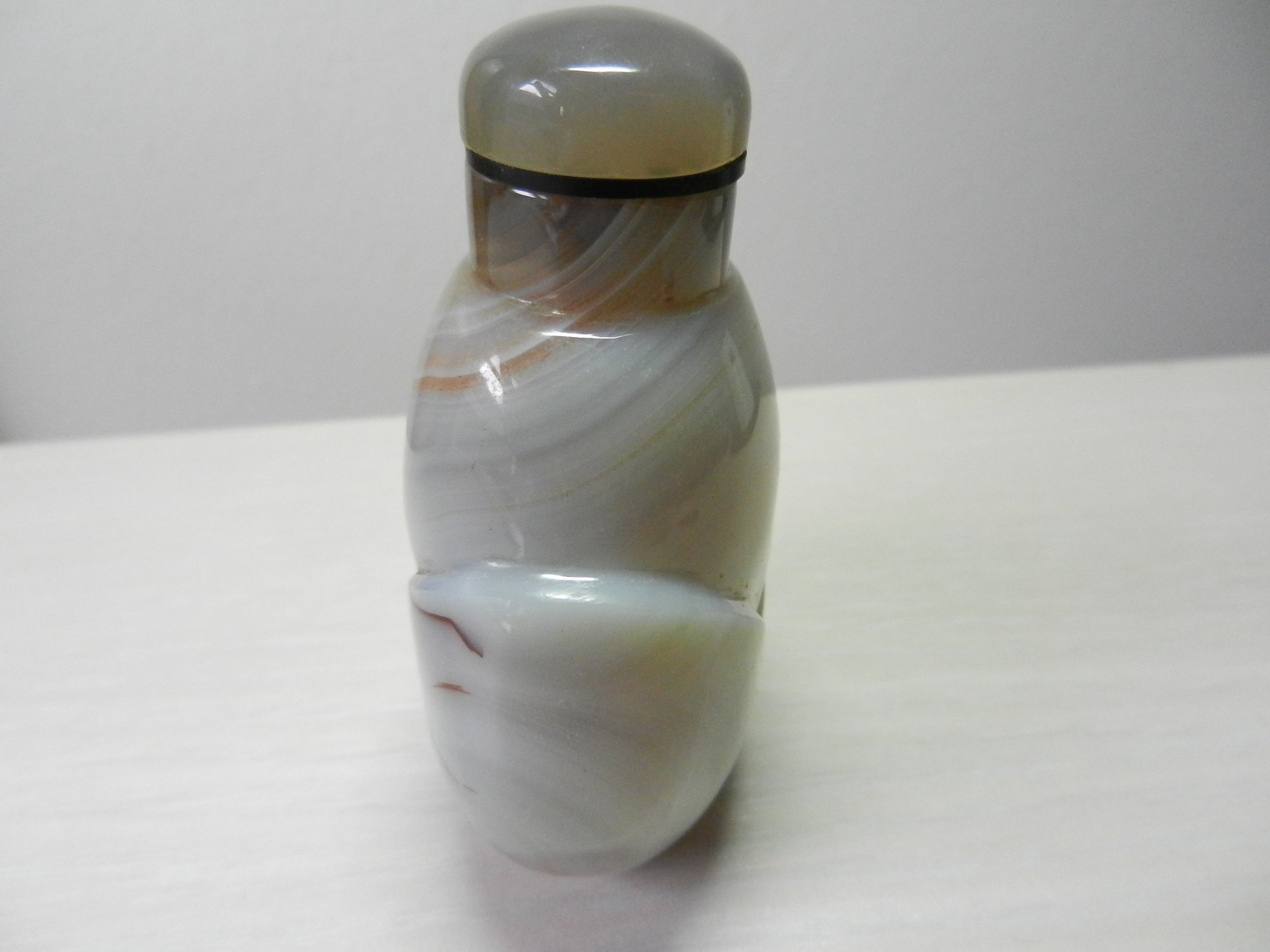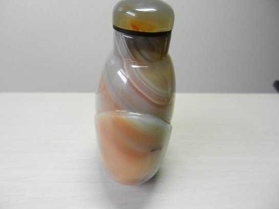 Vintage gray striped agate simple petal design snuff bottle (DP20 )