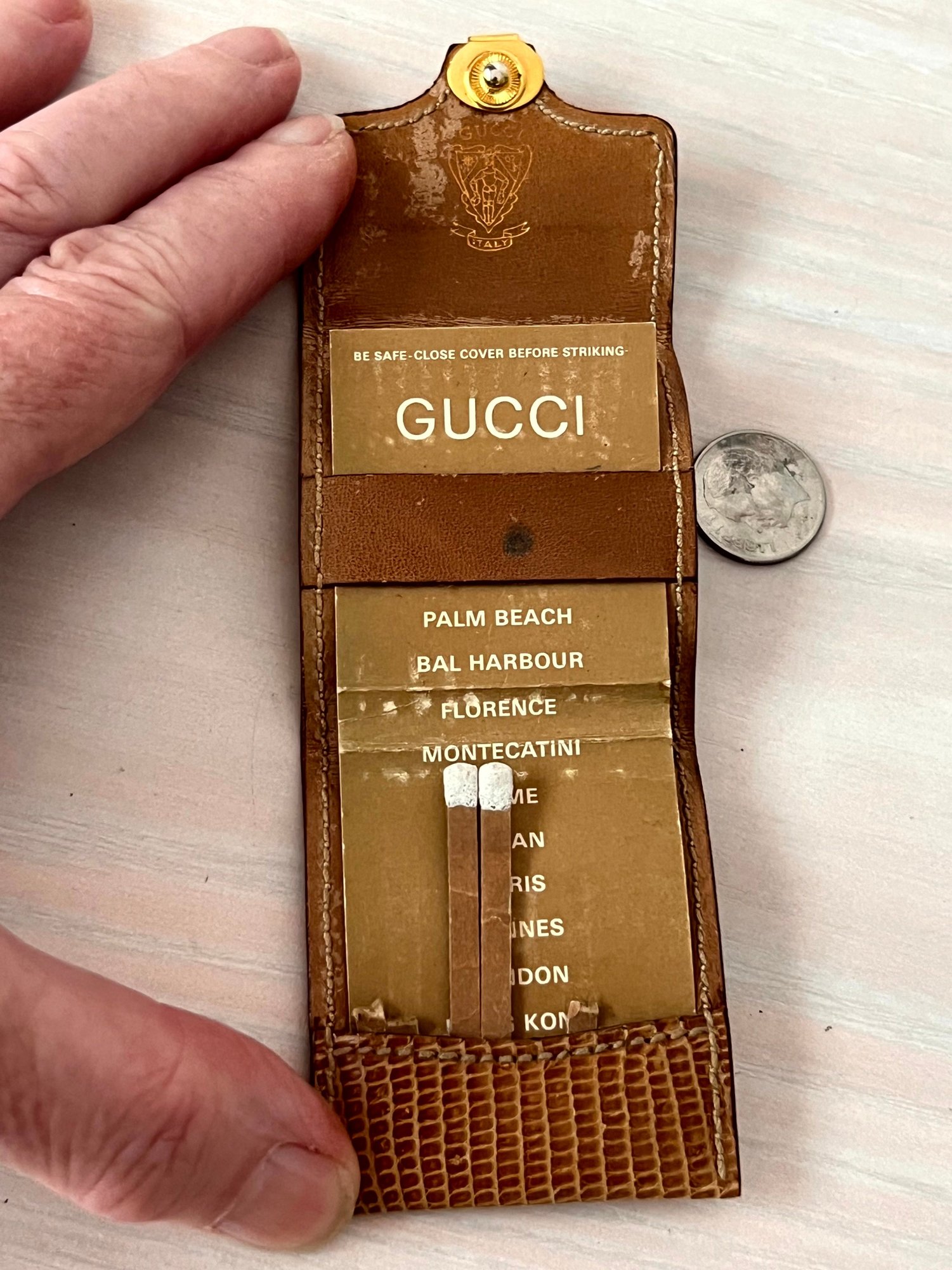 Vintage Gucci leather matchbook holder with some matches (DLM120)