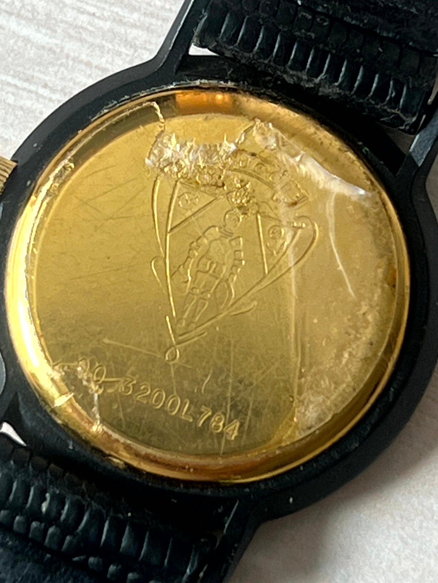 The crystal has some light scratches on it. The back still has a protective plastic over it.