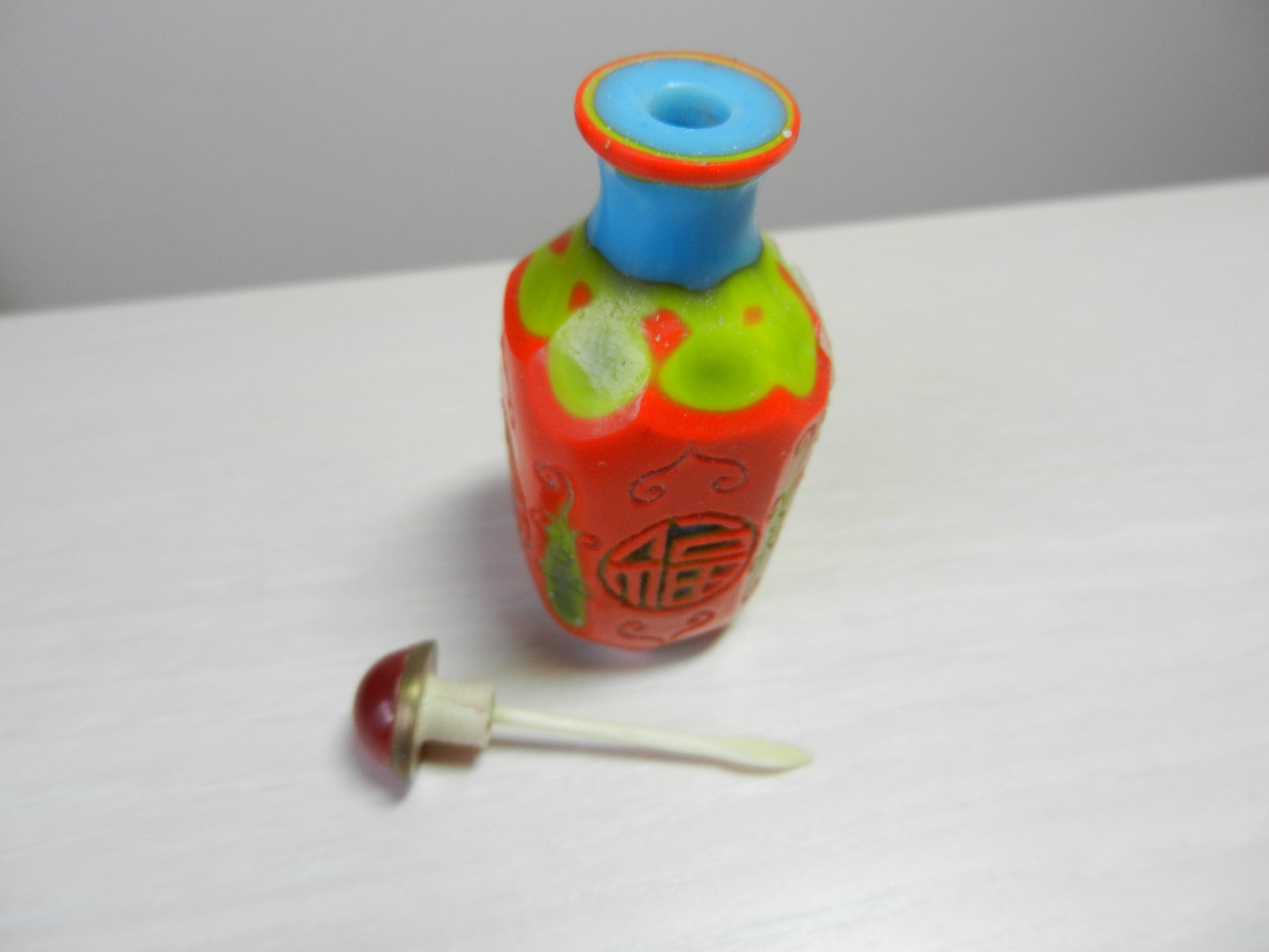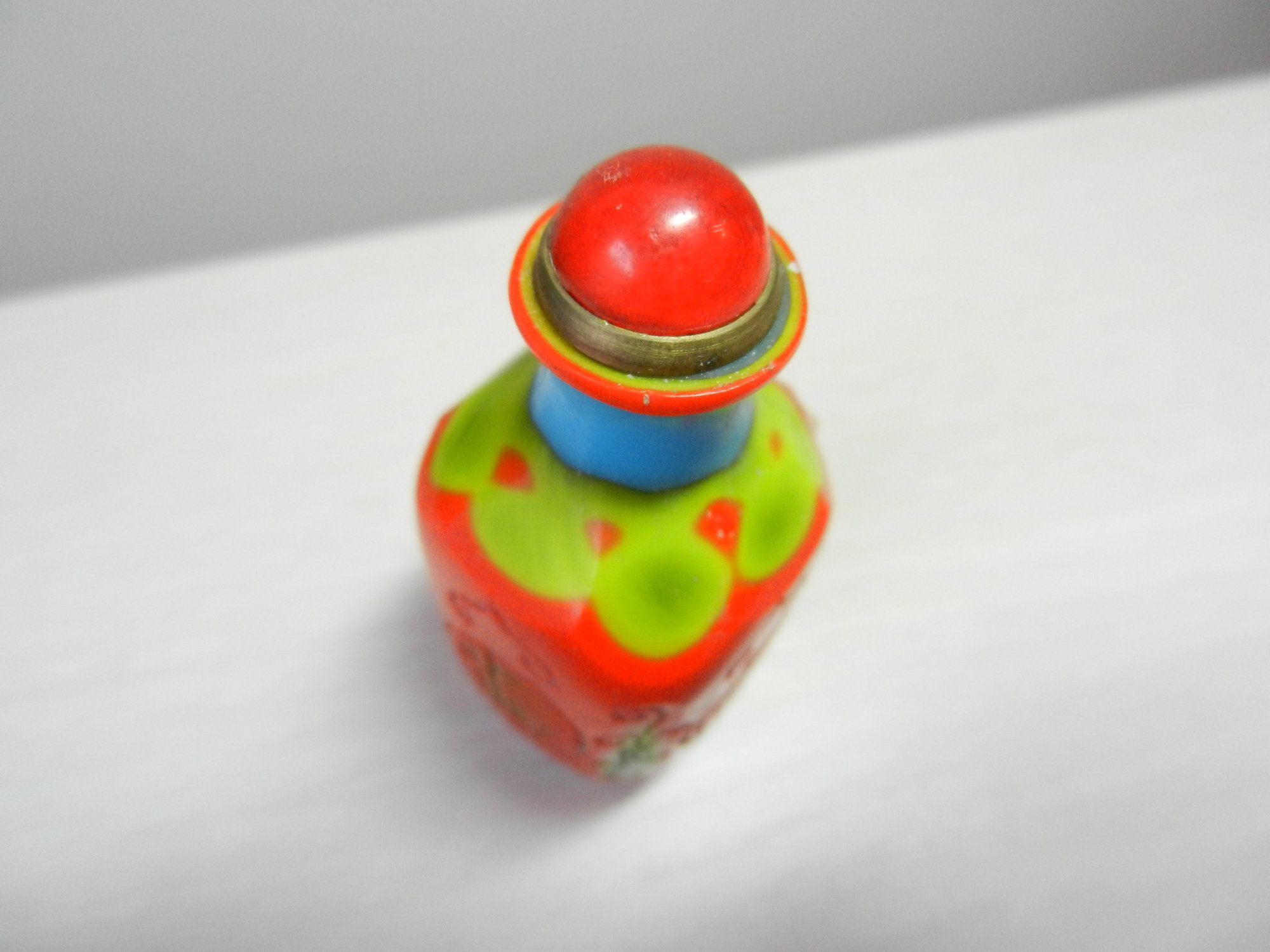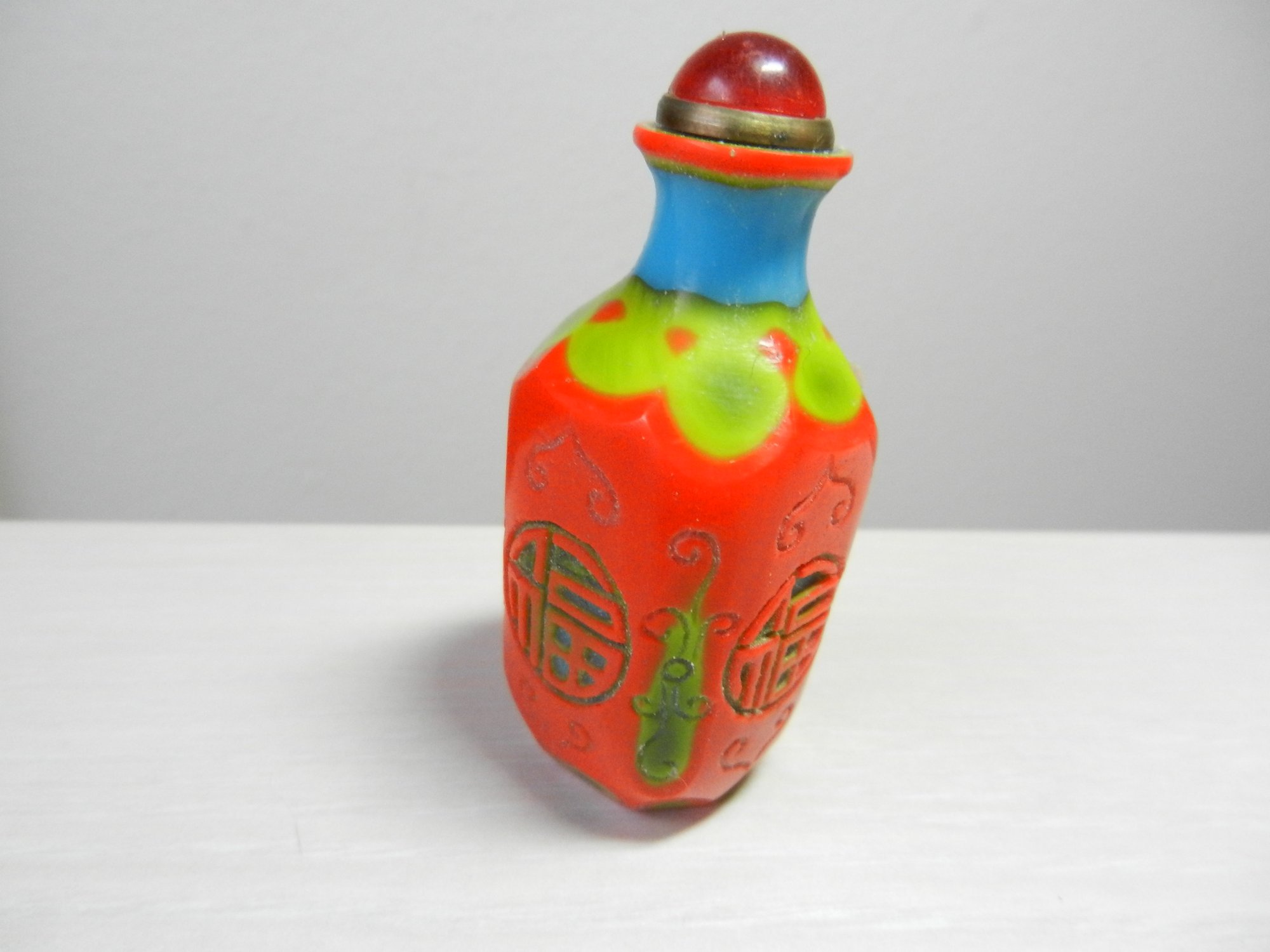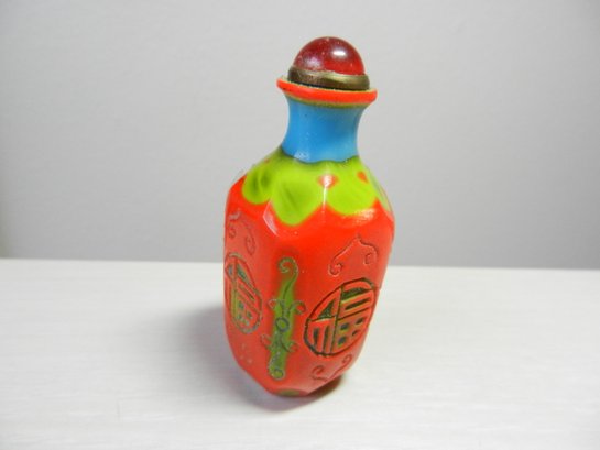 Vintage layered glass - orange cut to turquoise and green snuff bottle (DP46)