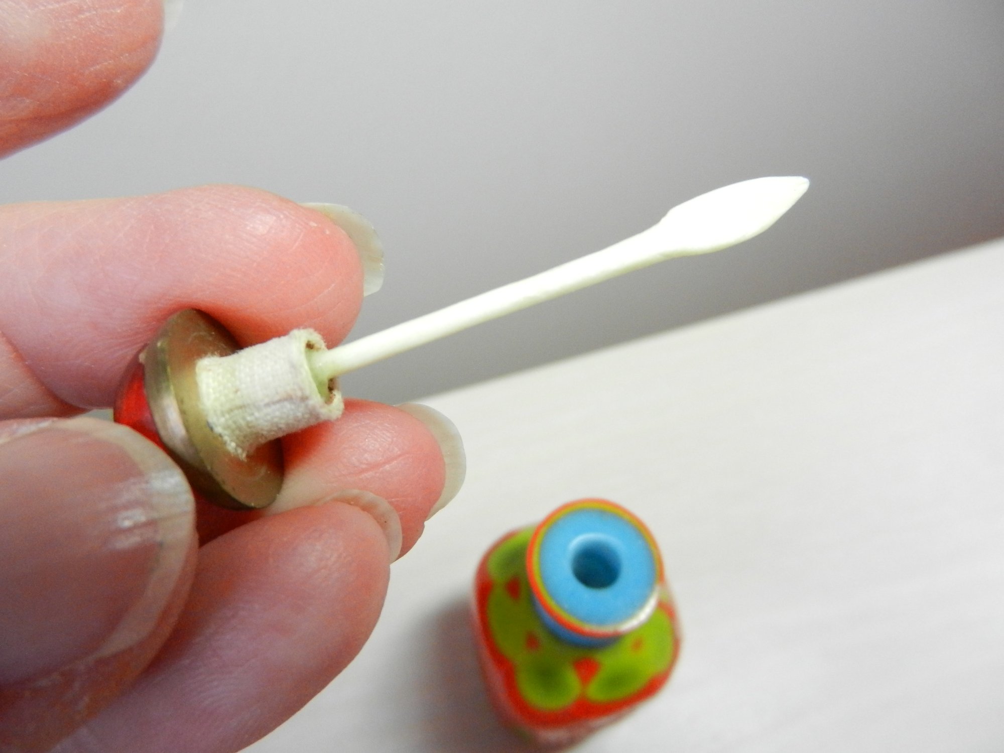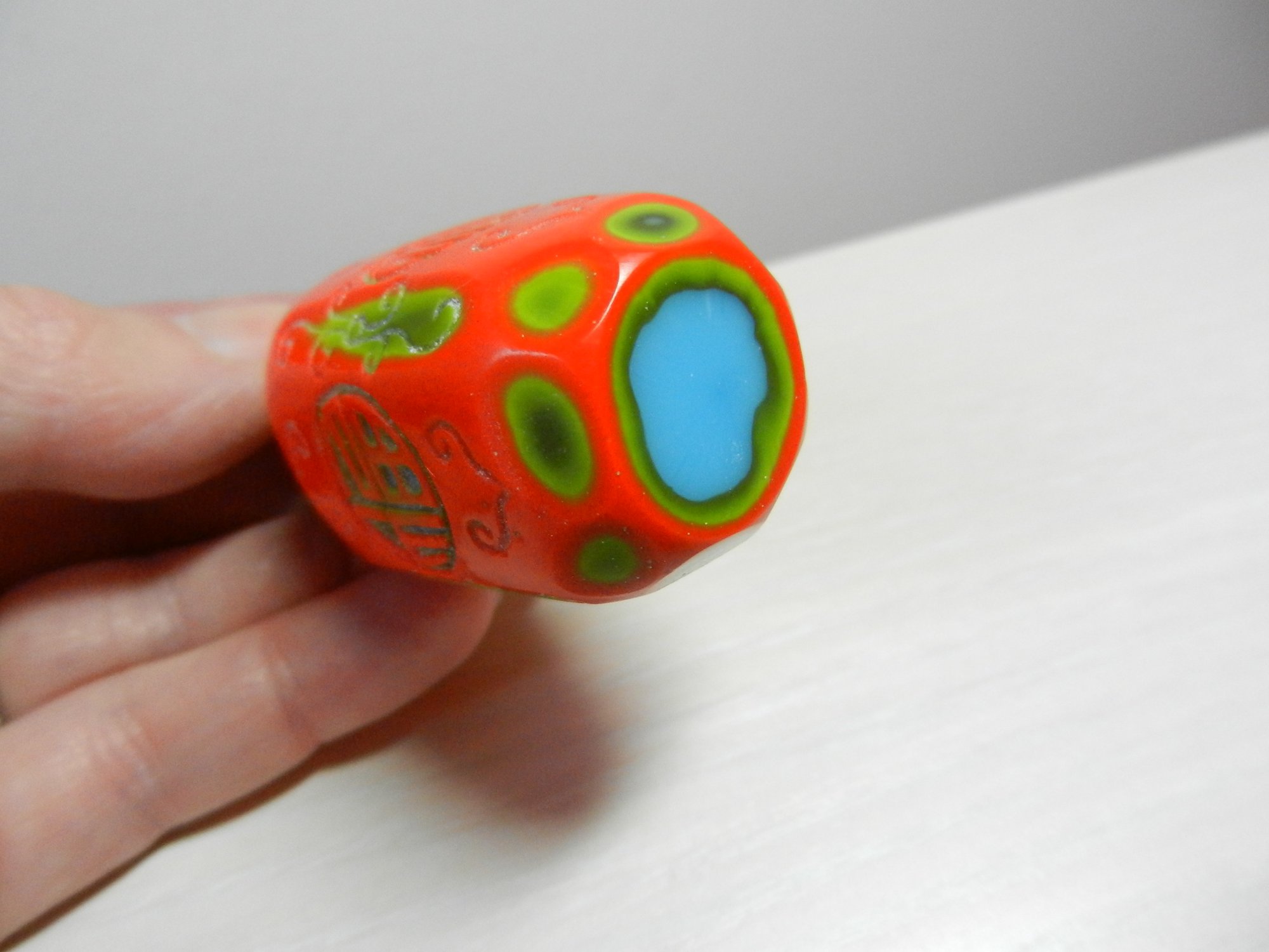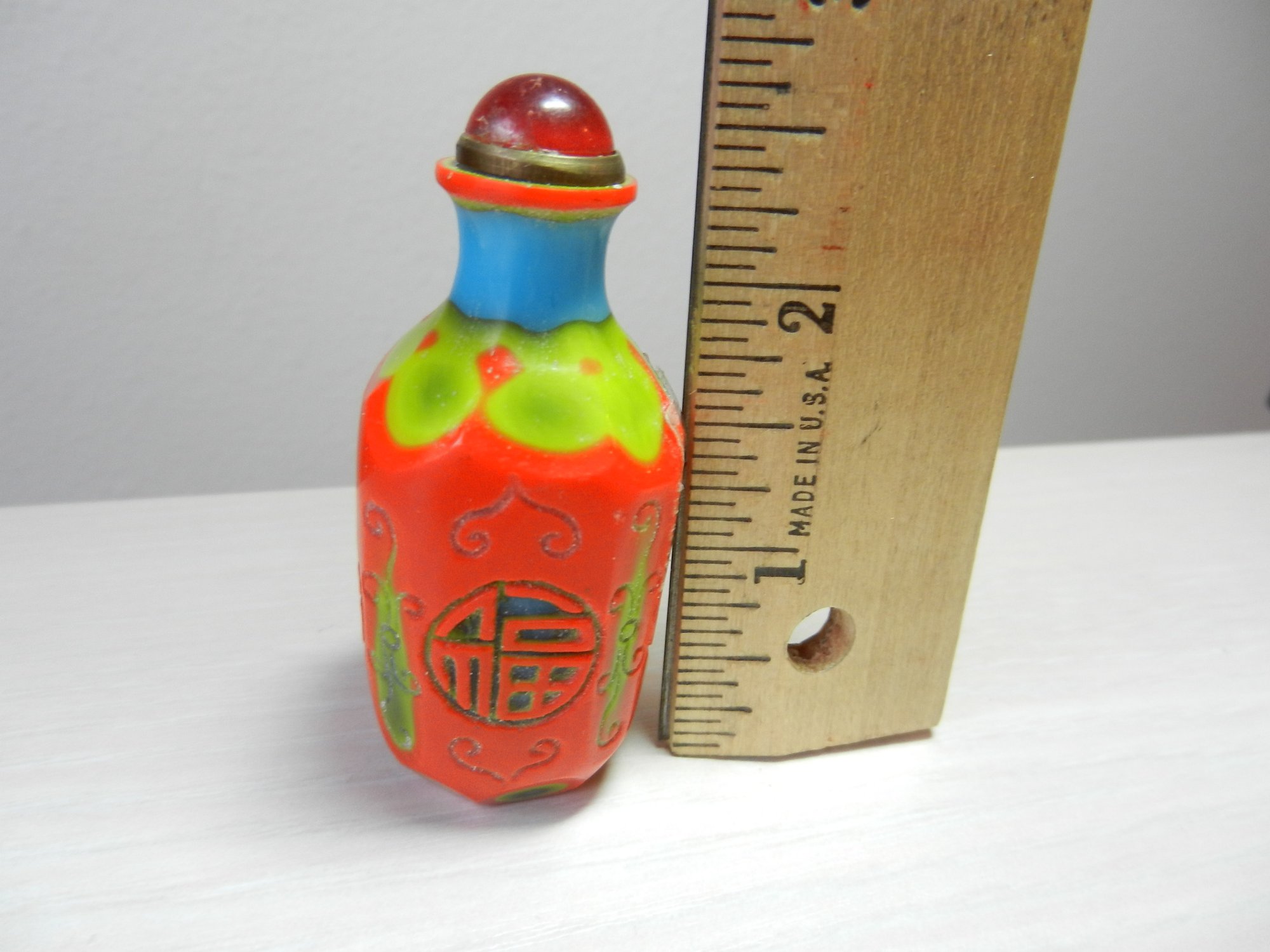 Vintage layered glass - orange cut to turquoise and green snuff bottle (DP46)