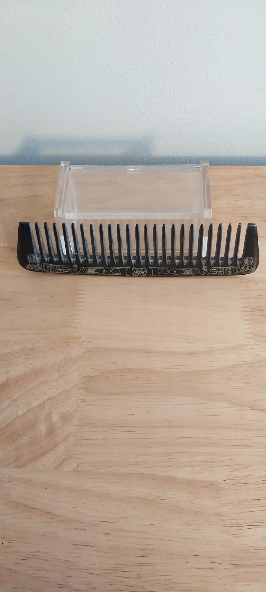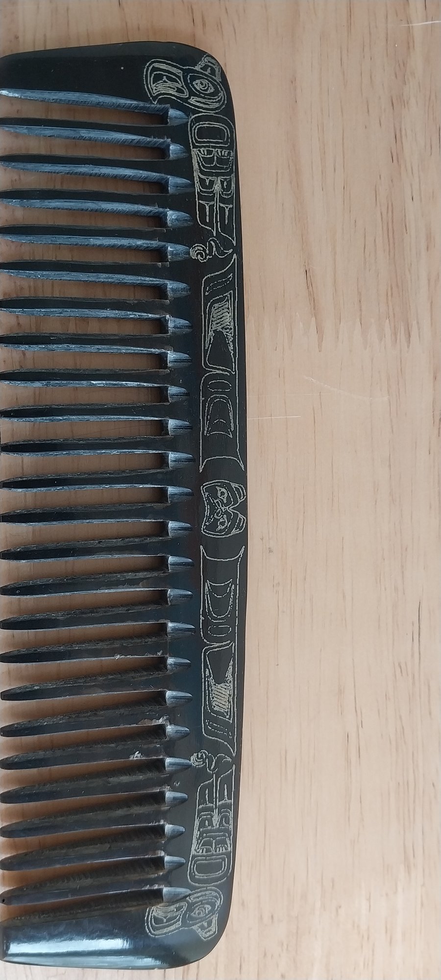 Vintage horn comb with native inspired carvings.