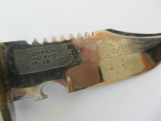 Vintage Oaxaca Mexico 2001 etched blade knife (DP101)