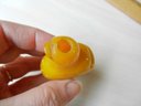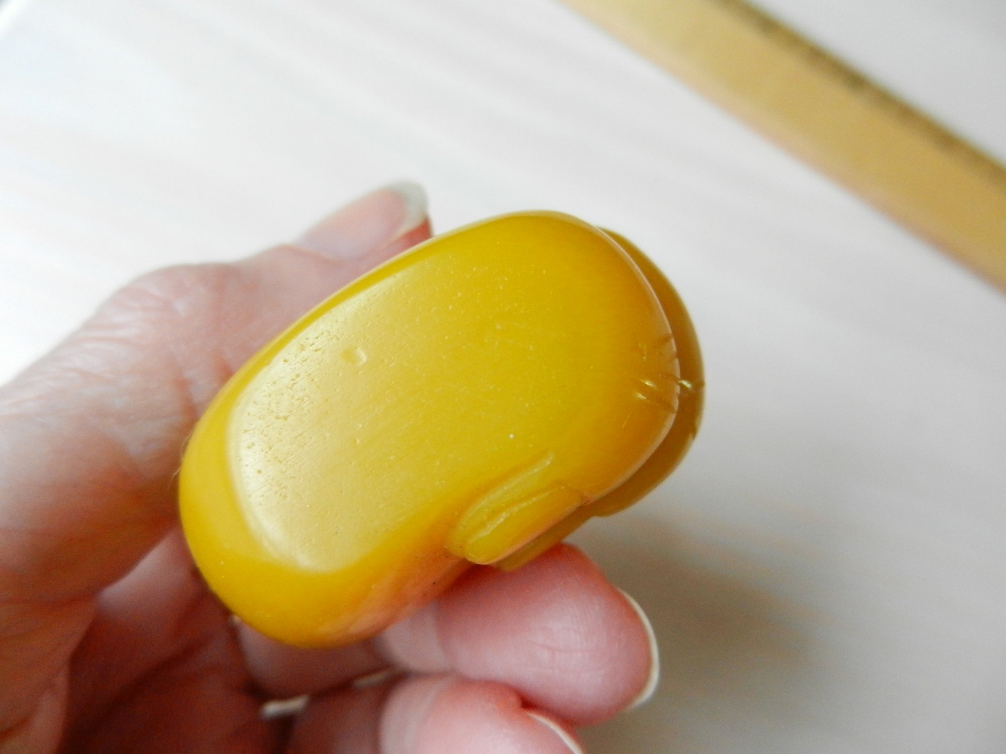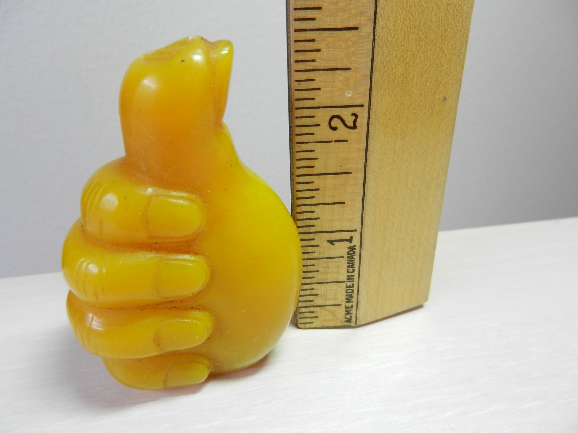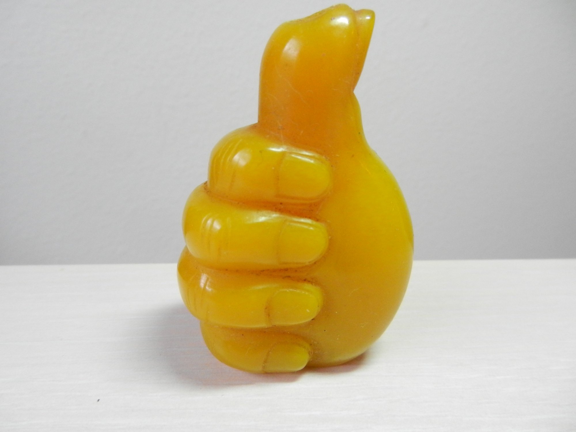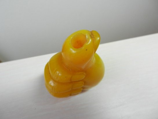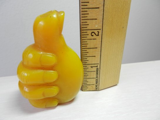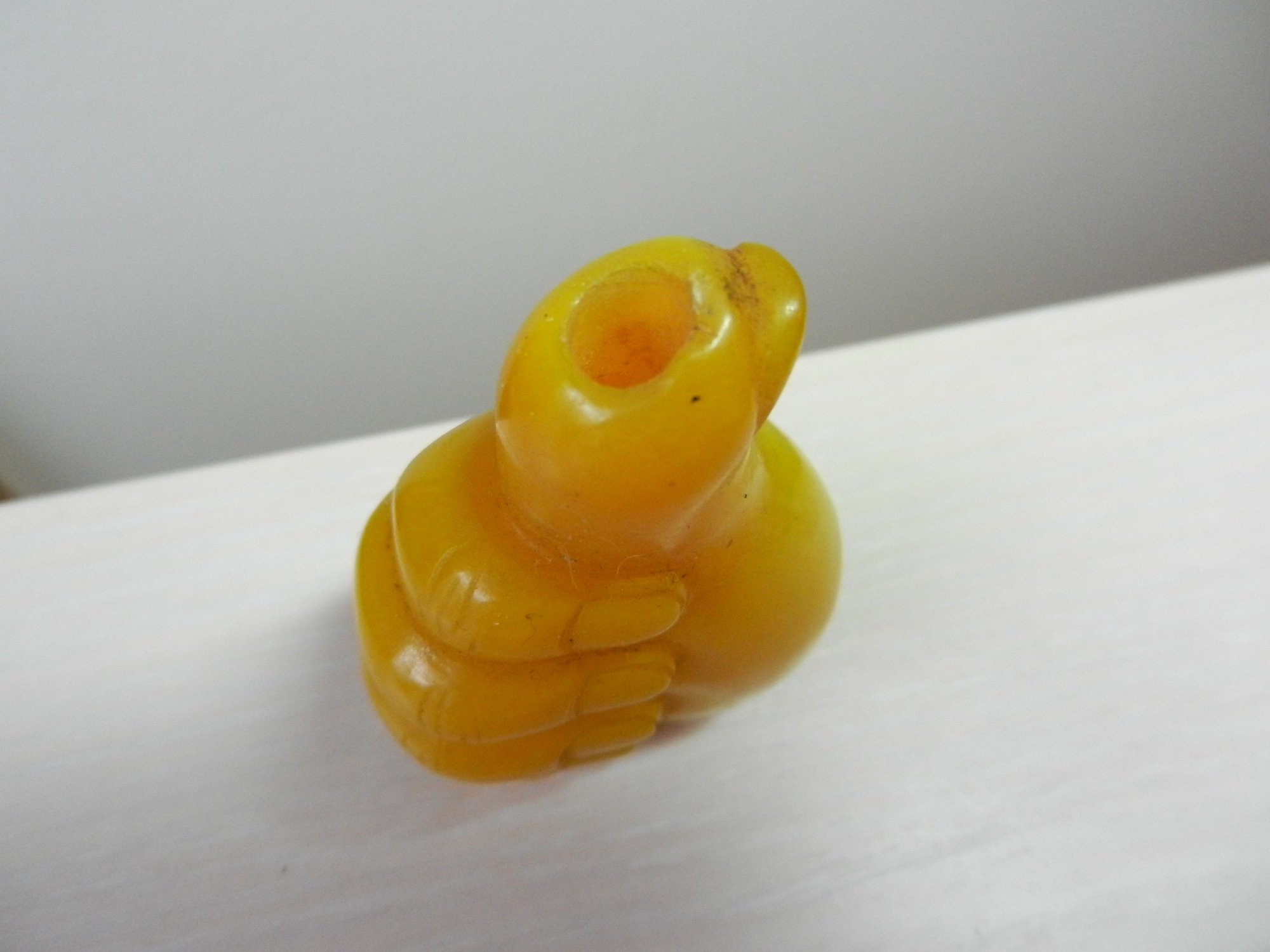 Vintage opaque yellow glass snuff bottle in a hand shape (DP32)