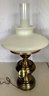 Vintage Quoizel table lamp with original tag. Brass and milk glass shade.