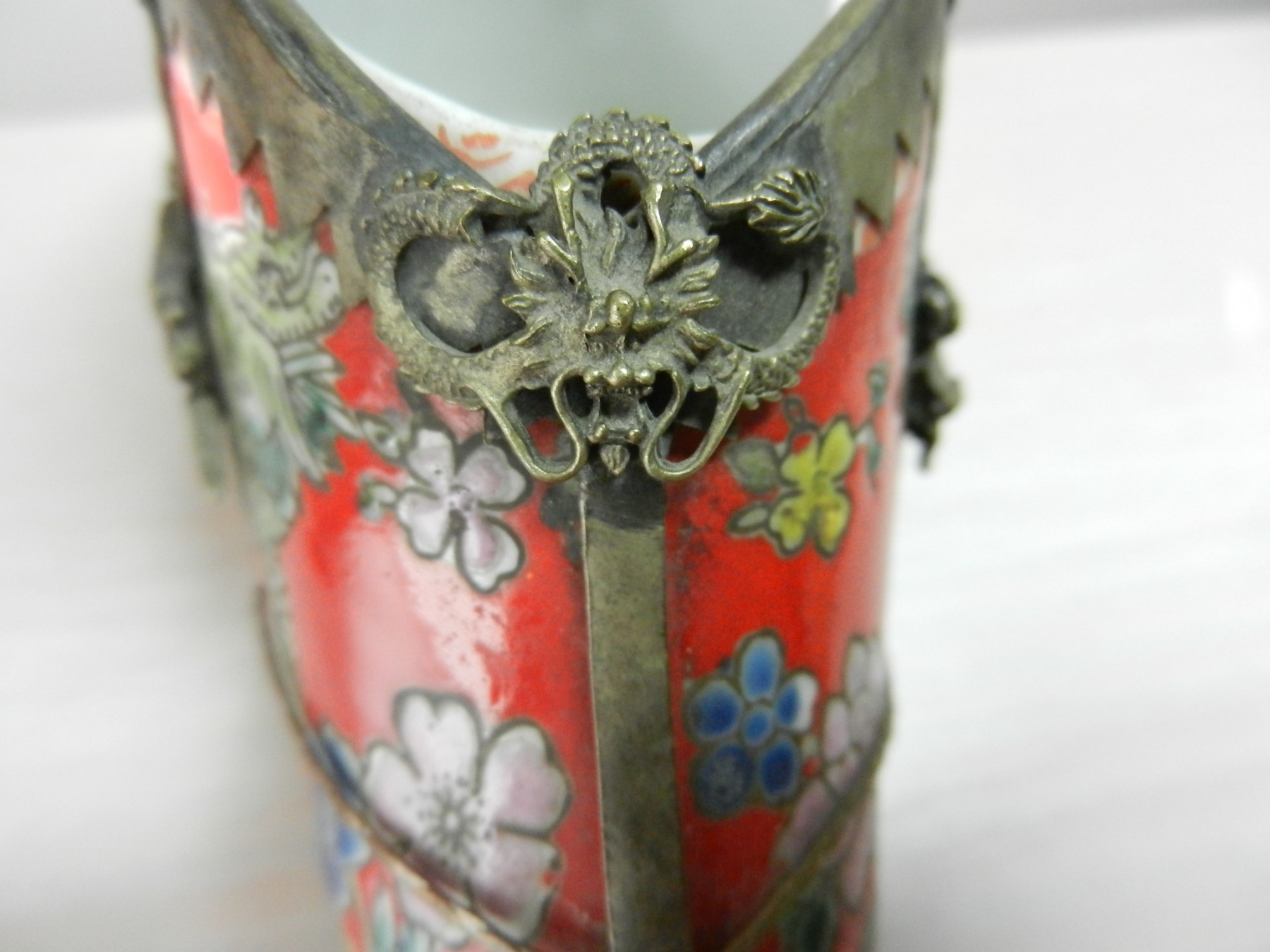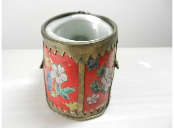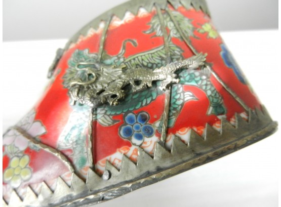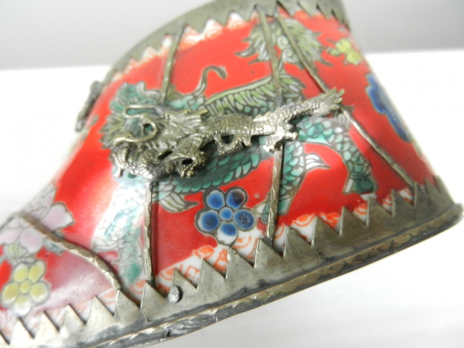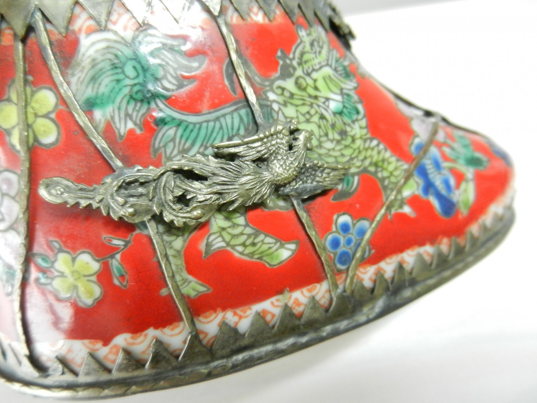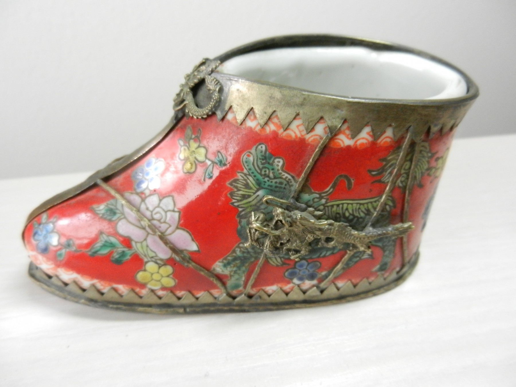 Vintage red porcelain and metal cage lotus shoe - maker’s mark (DP71)