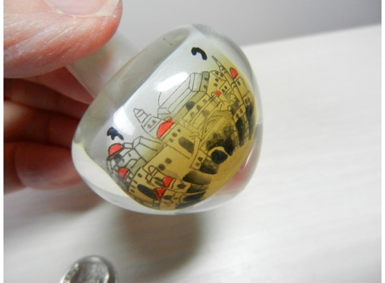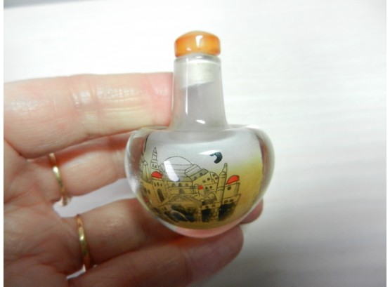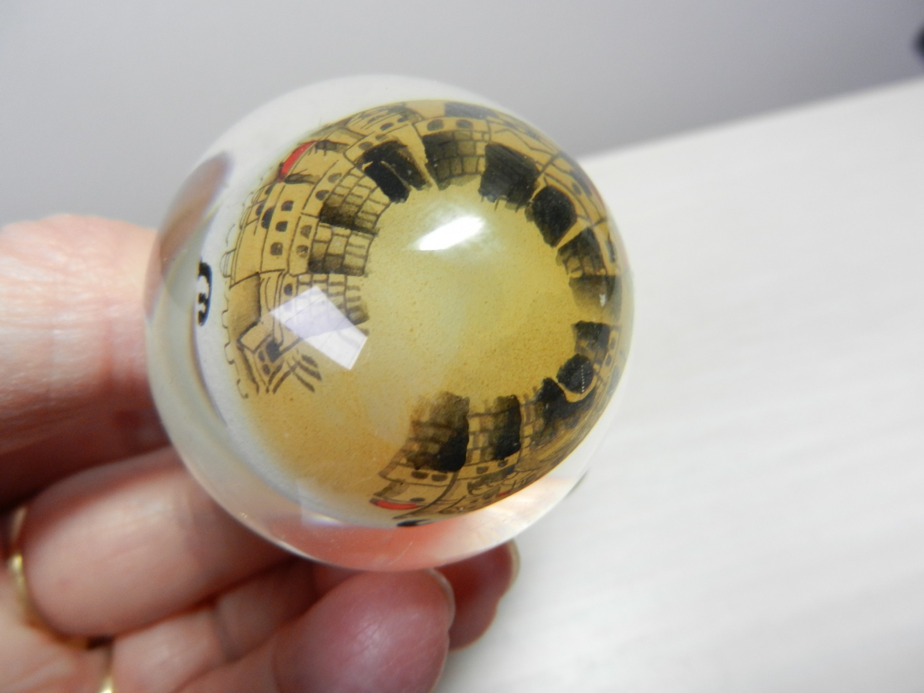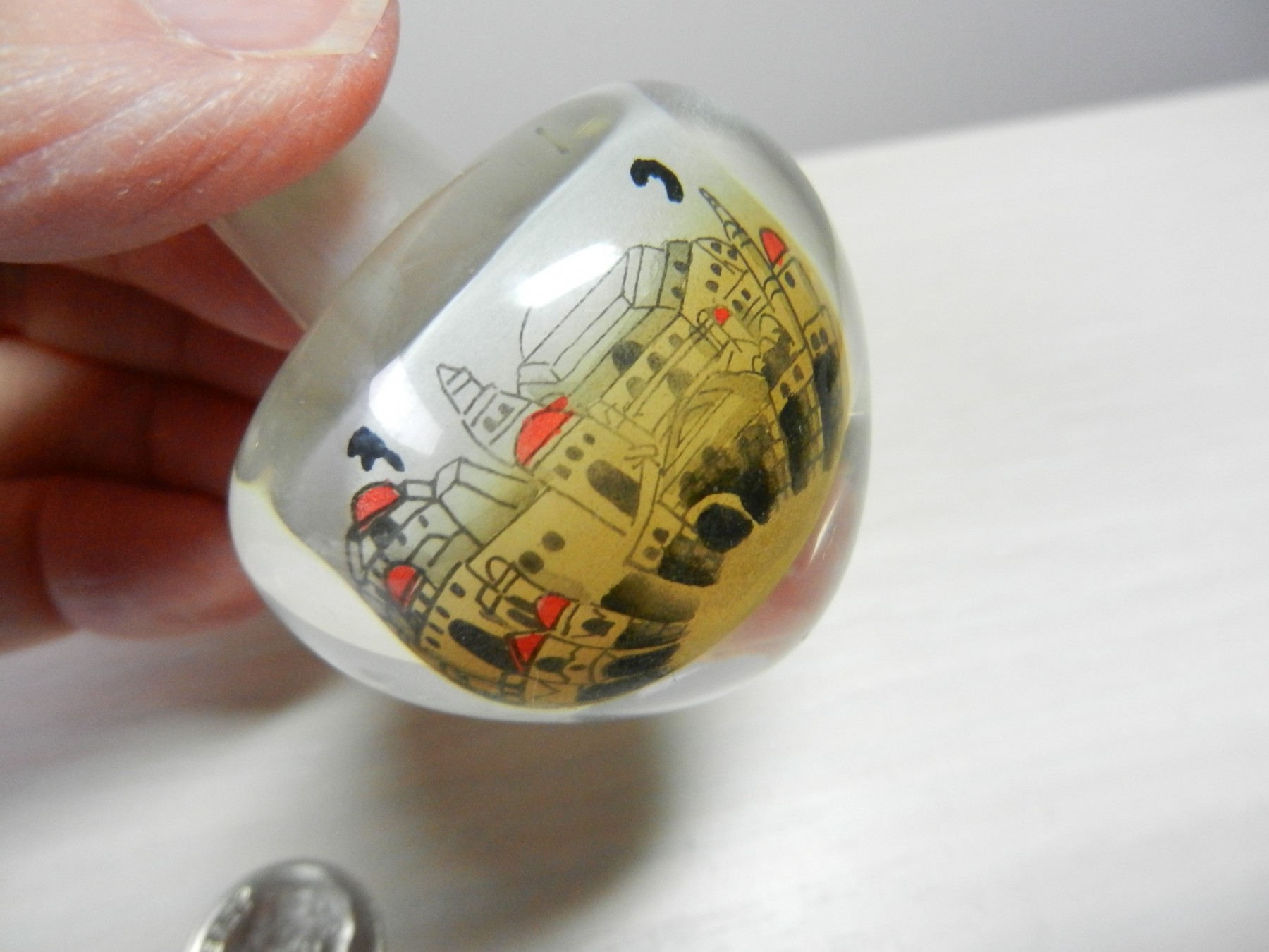 Approx 2 ¼” high. Fantastic scene painted inside.