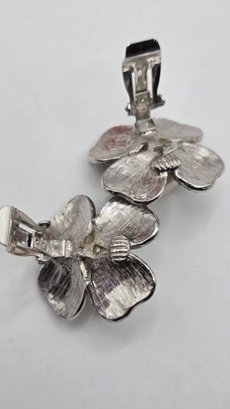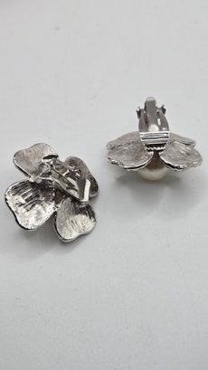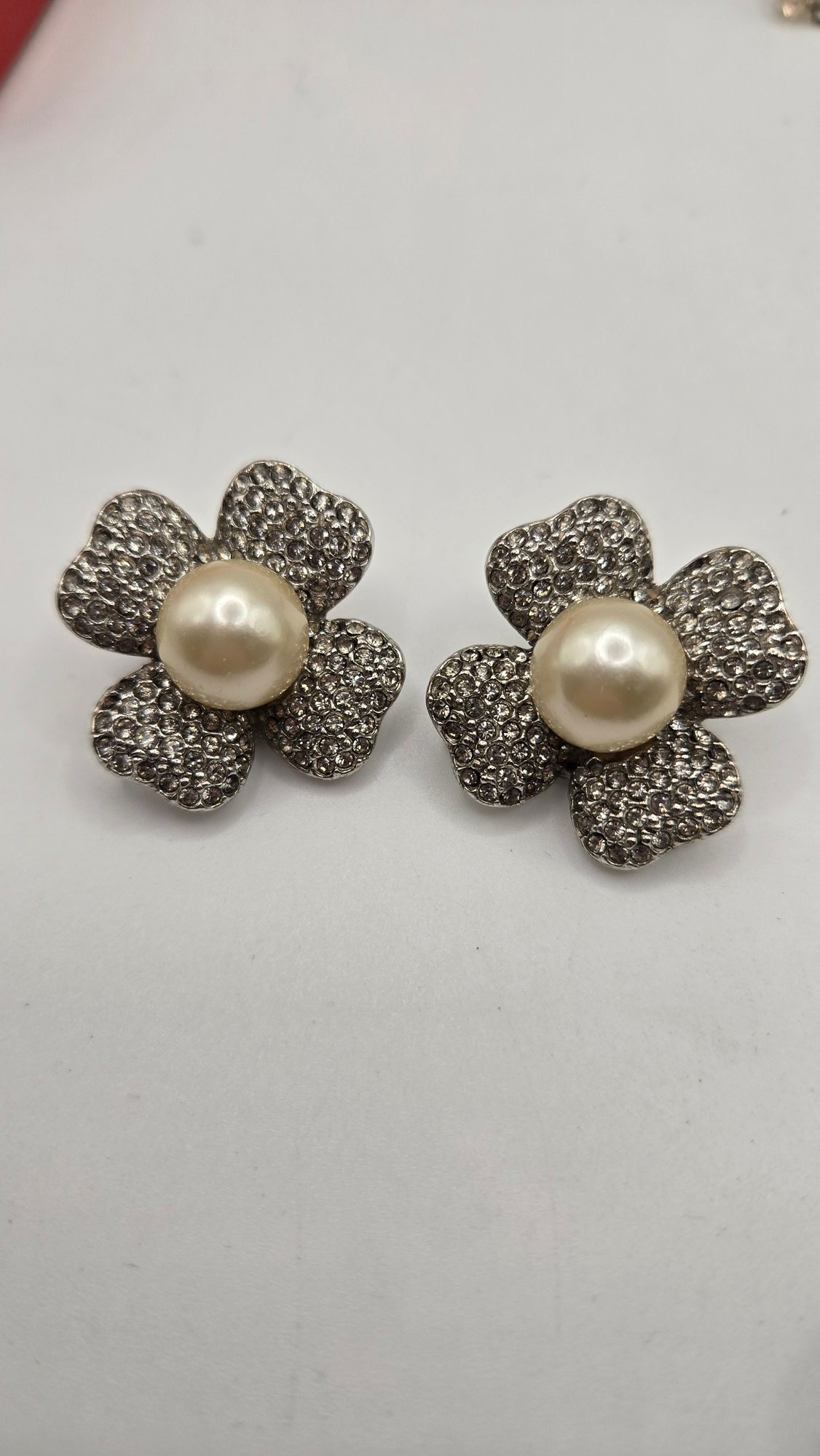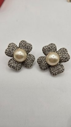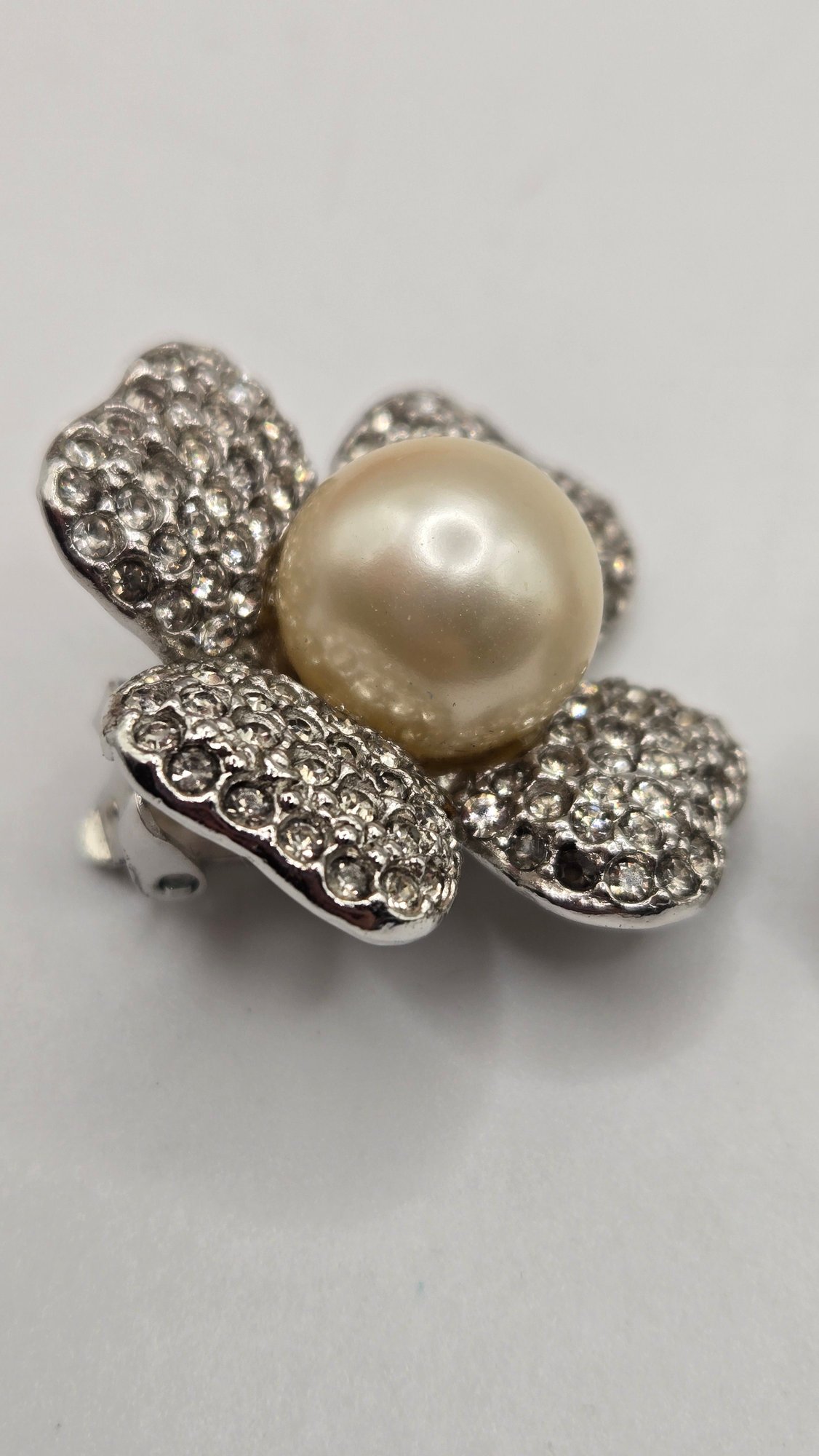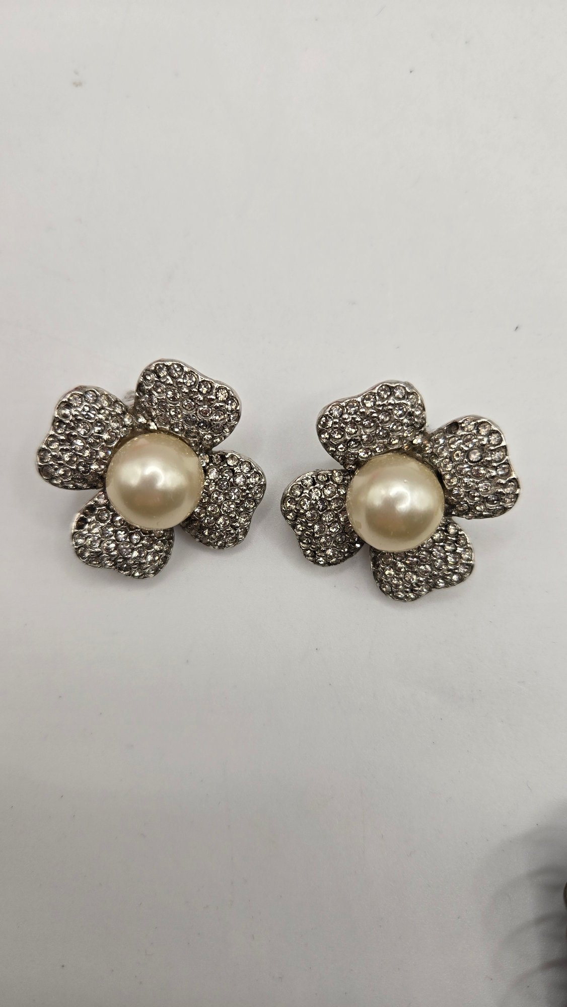 Vintage Rhinestone and Faux Pearl Flower Earrings