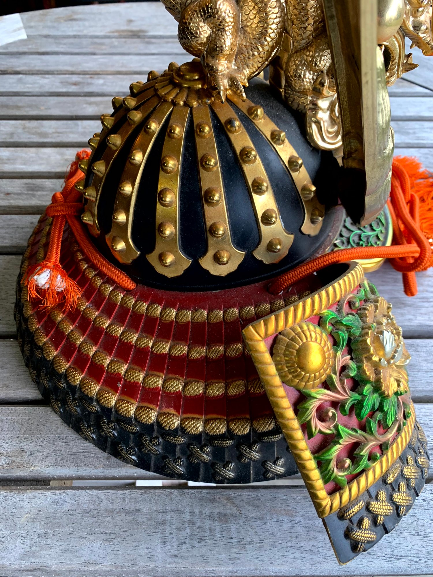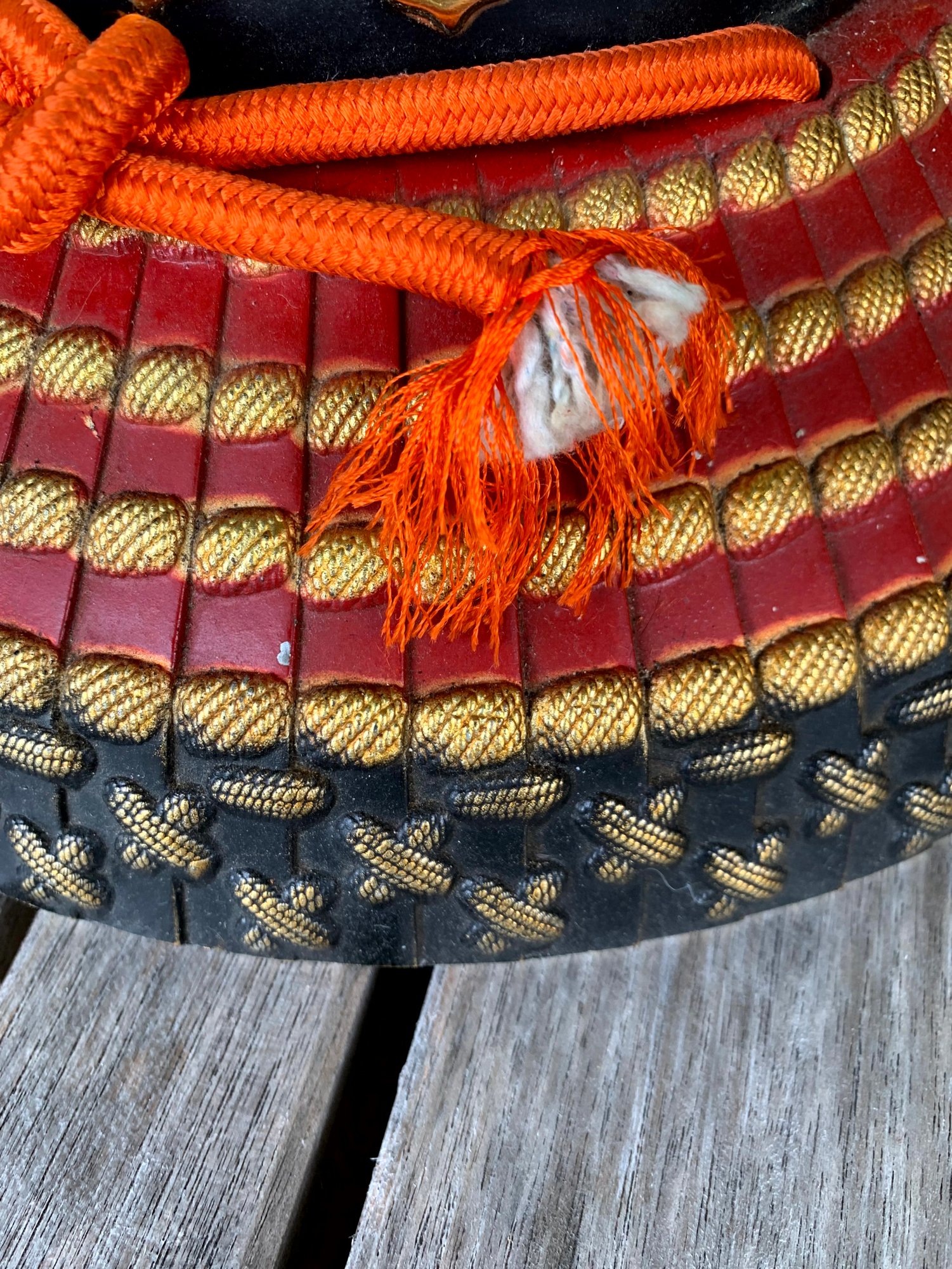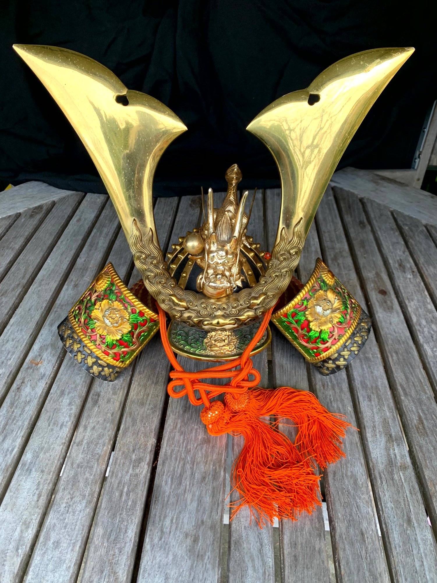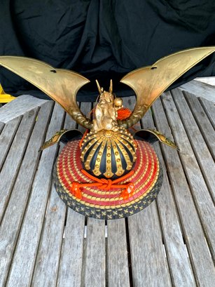 Vintage Samurai Helmet. Sits on a Japanese pillow
