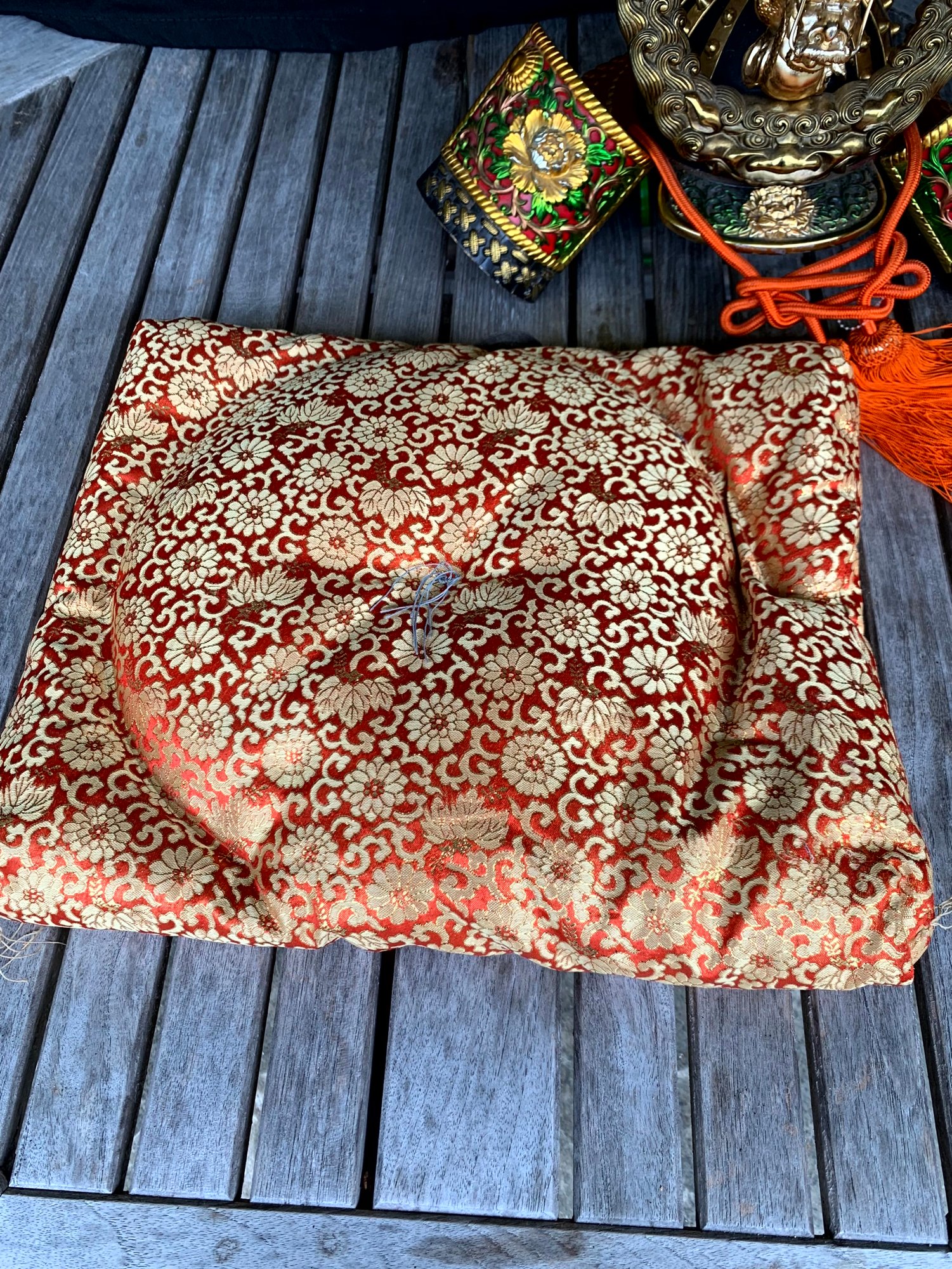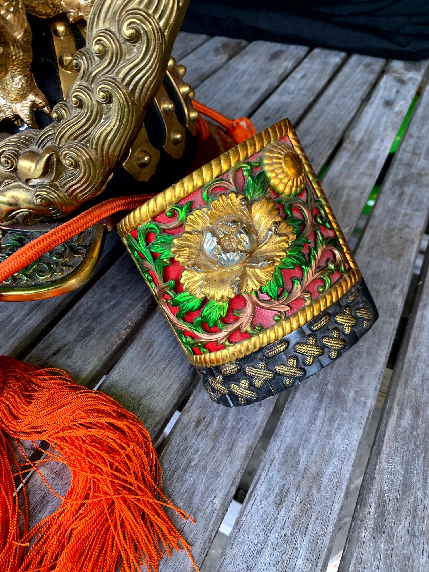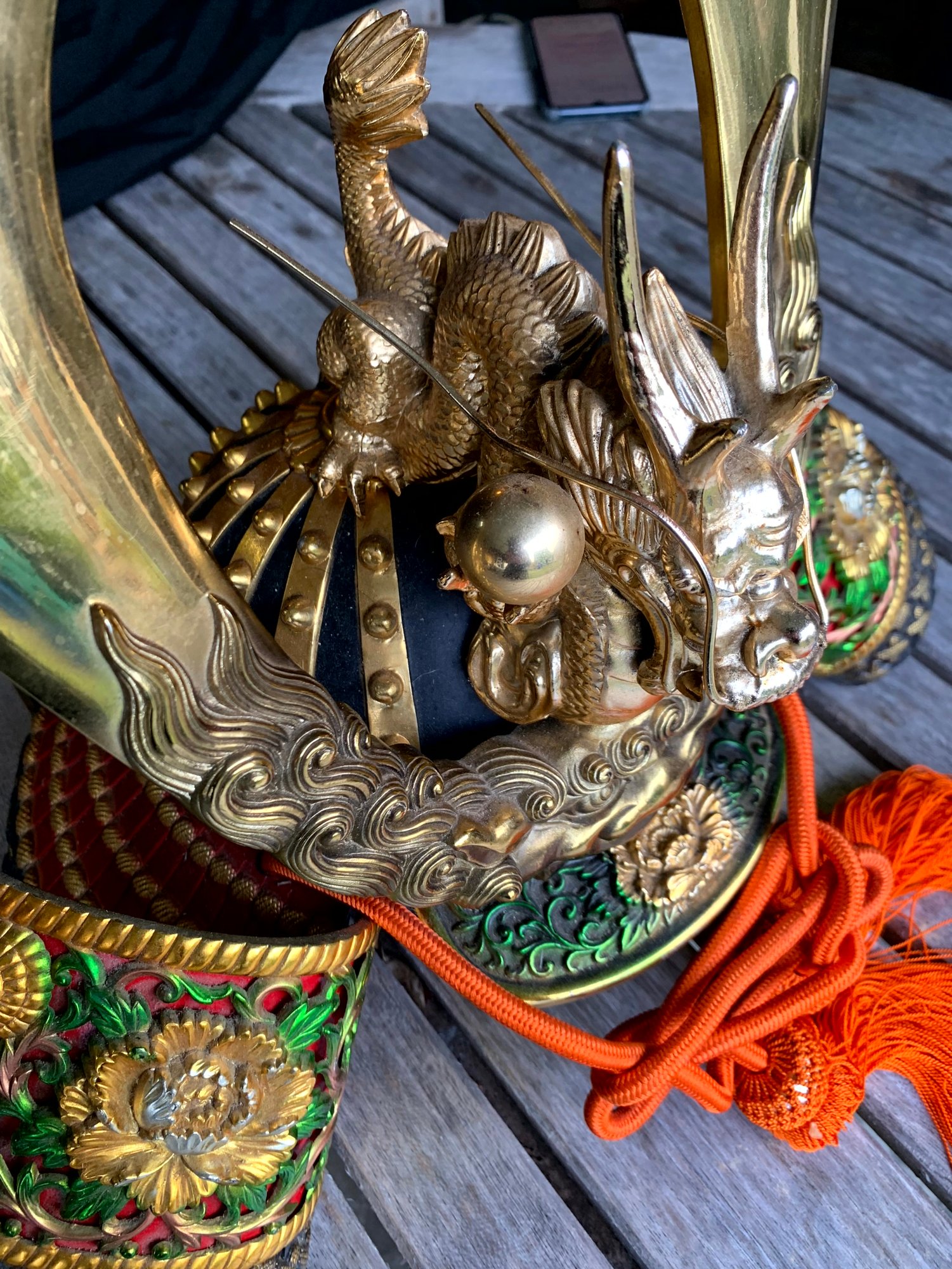 Vintage Samurai Helmet. Sits on a Japanese pillow