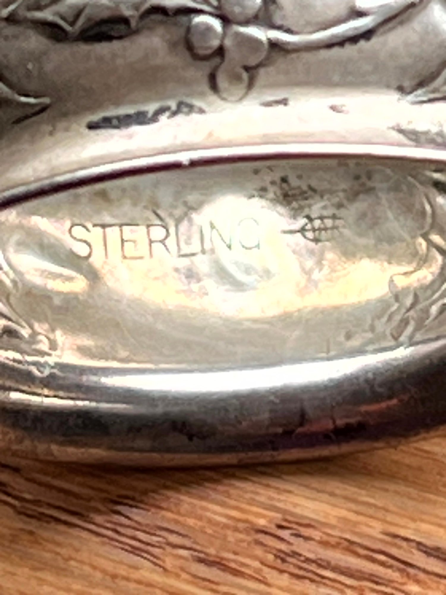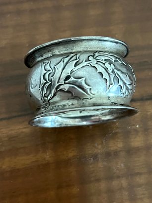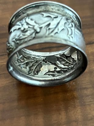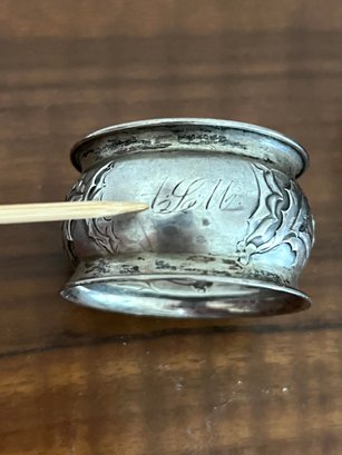 Marked Sterling with maker on the inside of the Napkin ring. This has a mono and a few light dents near the mono.