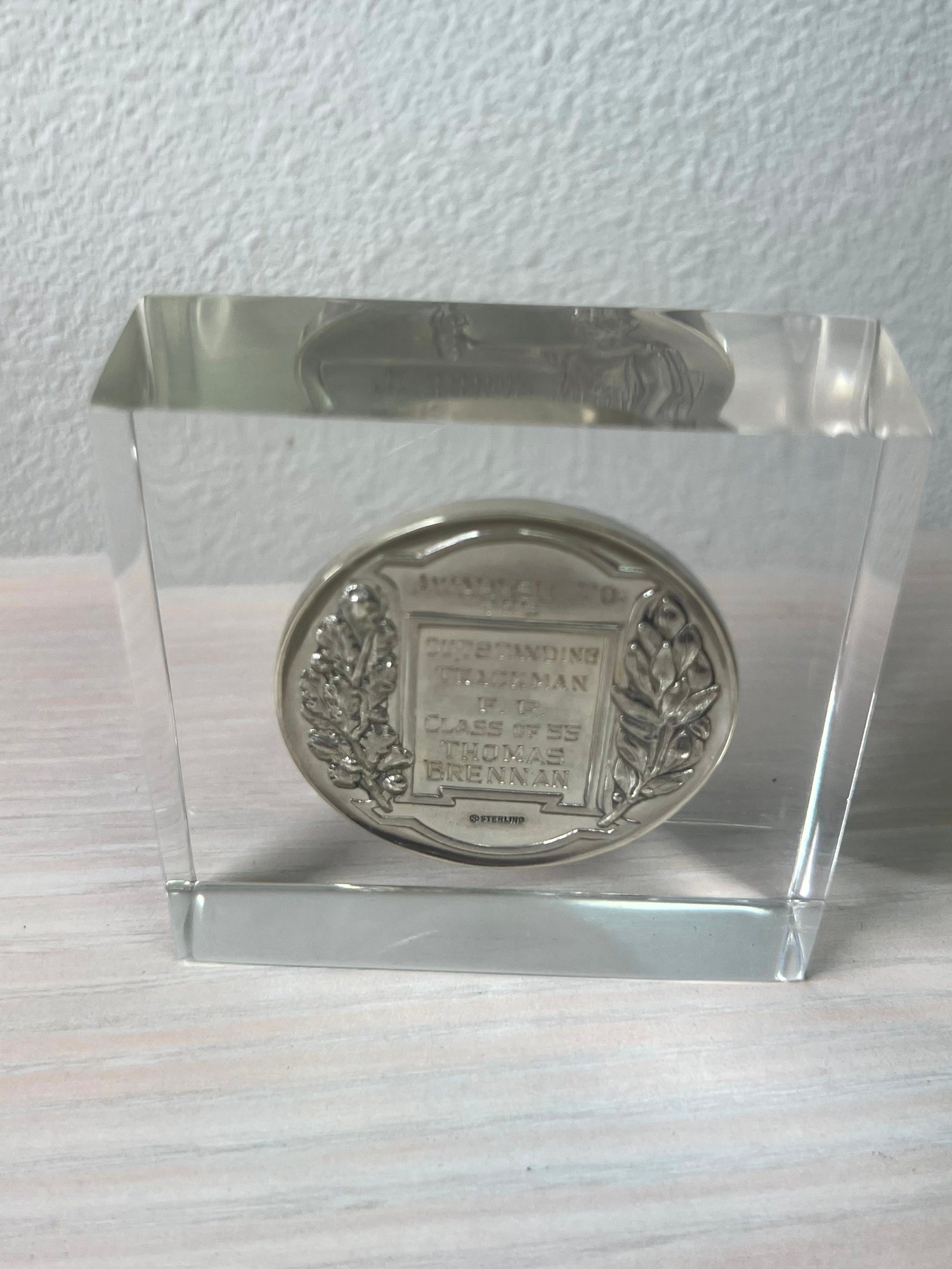 Vintage Sterling Silver 1955 Memorial Track Achievement Medal in Acrylic (DL87)