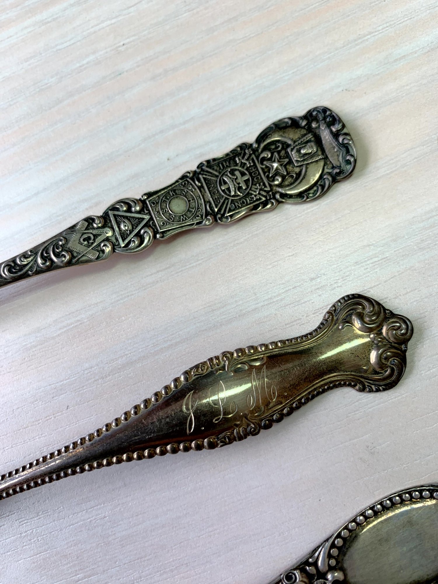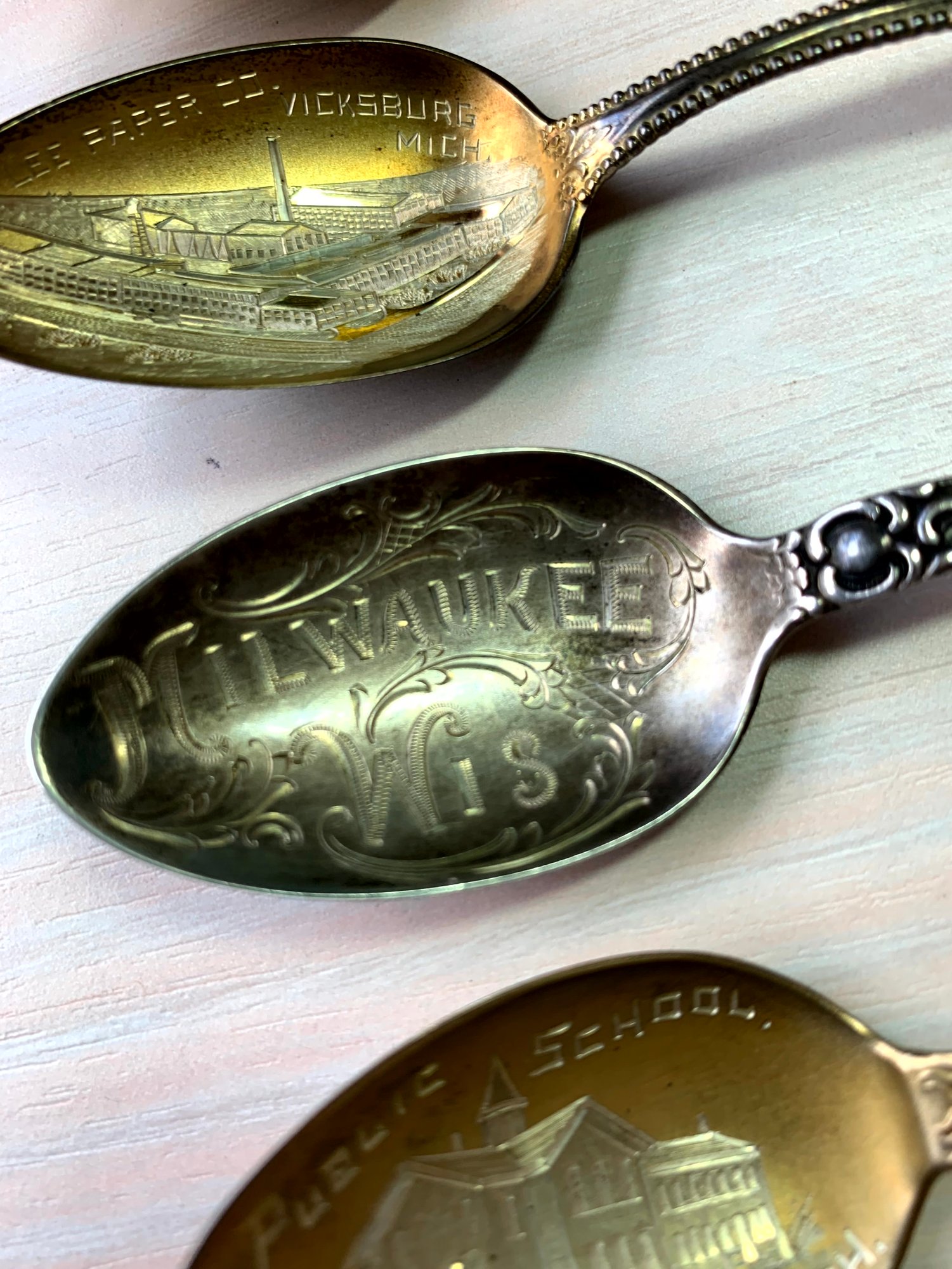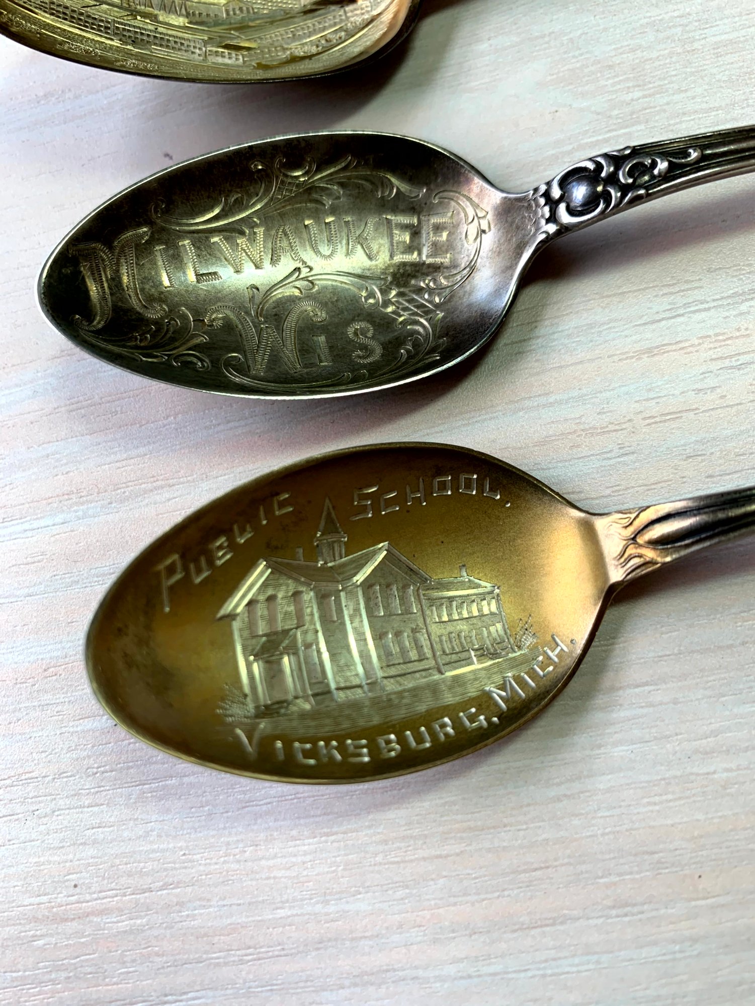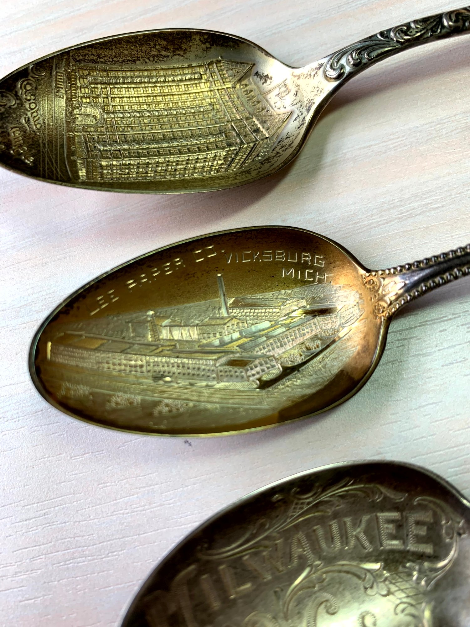 All marked Sterling on the back. Three have a gold wash which has darkened.