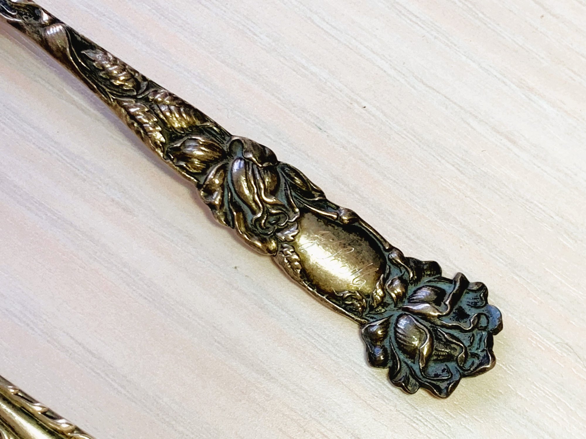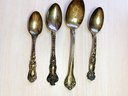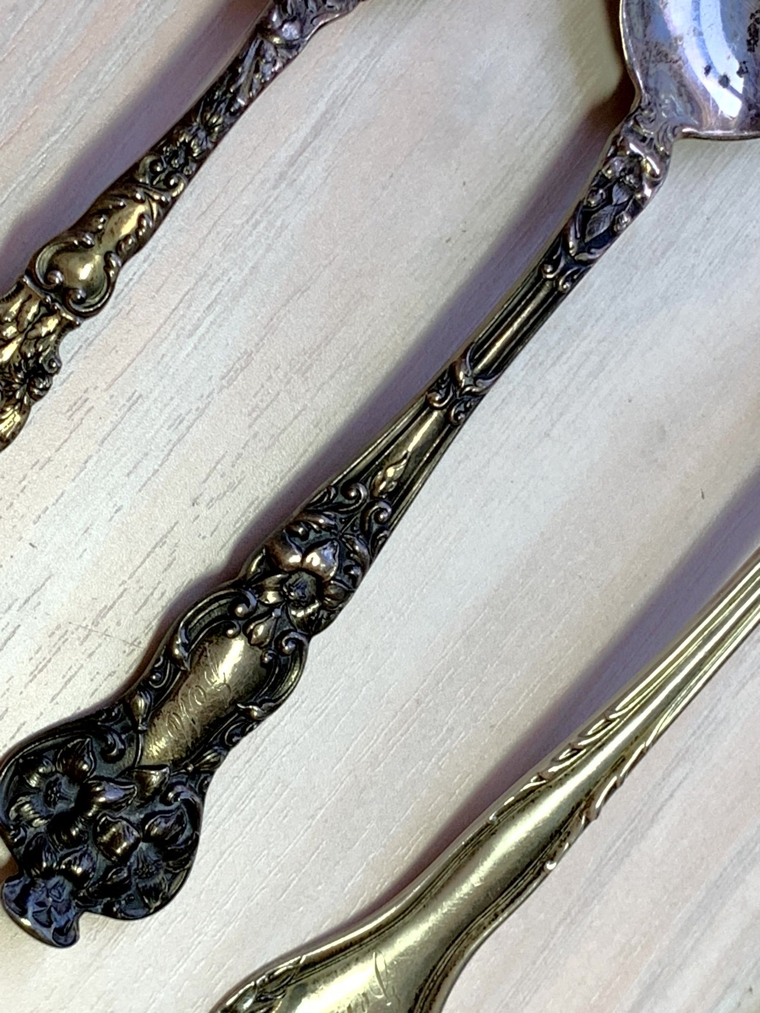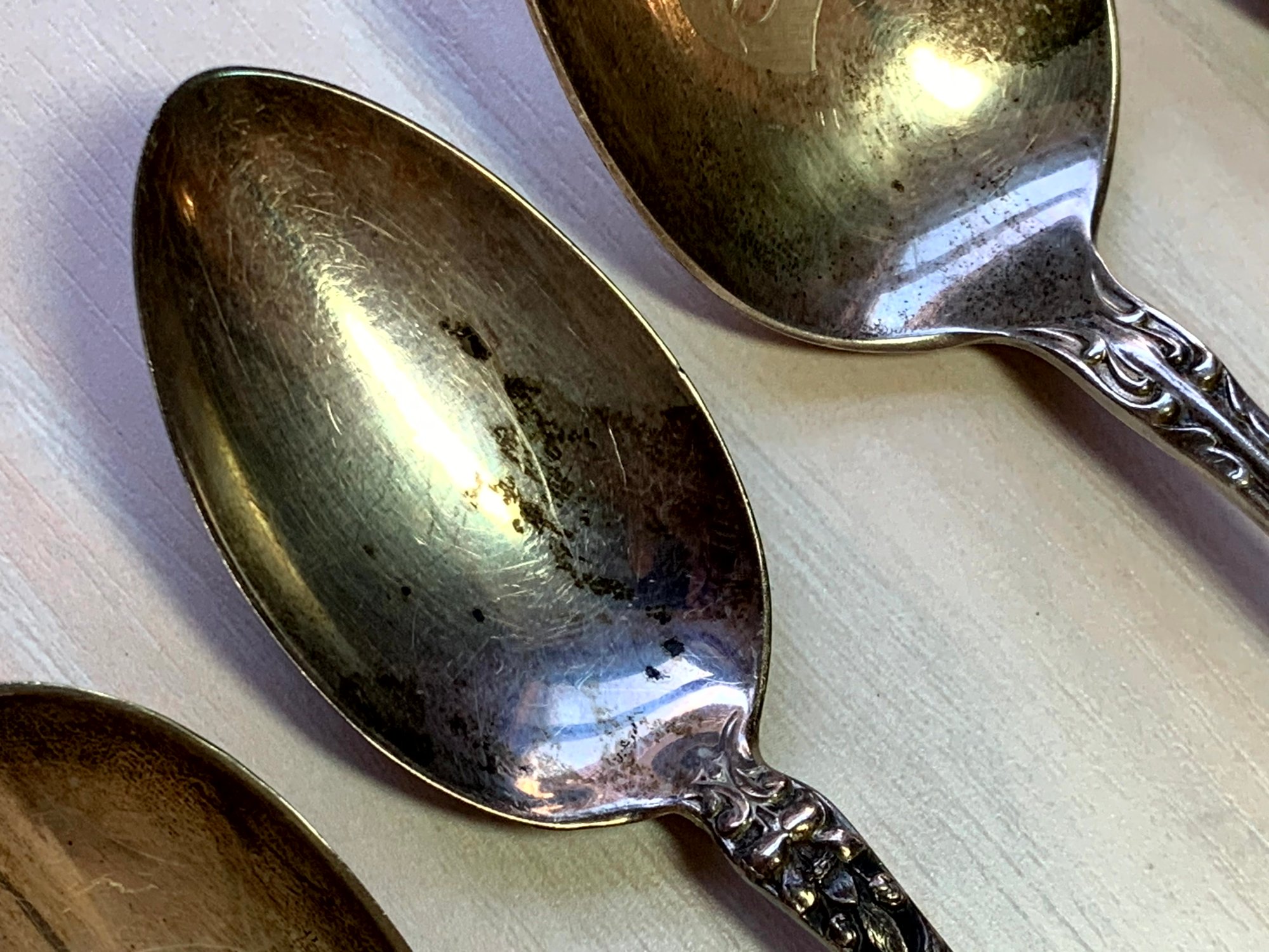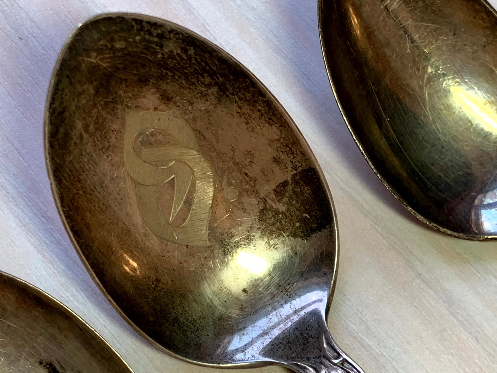 Vintage Sterling Silver 4 floral handle spoons with mongramme (DL42)