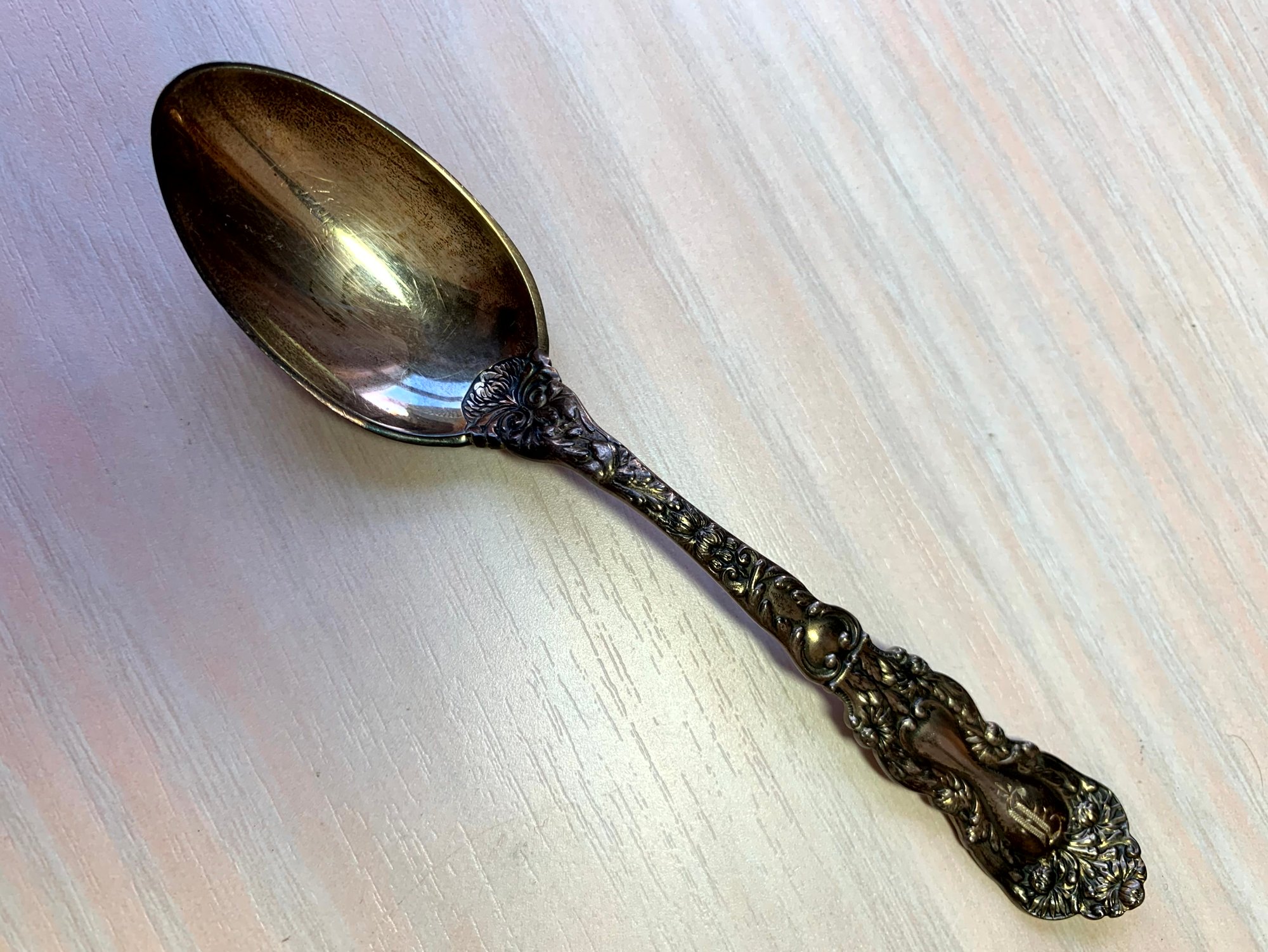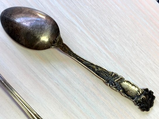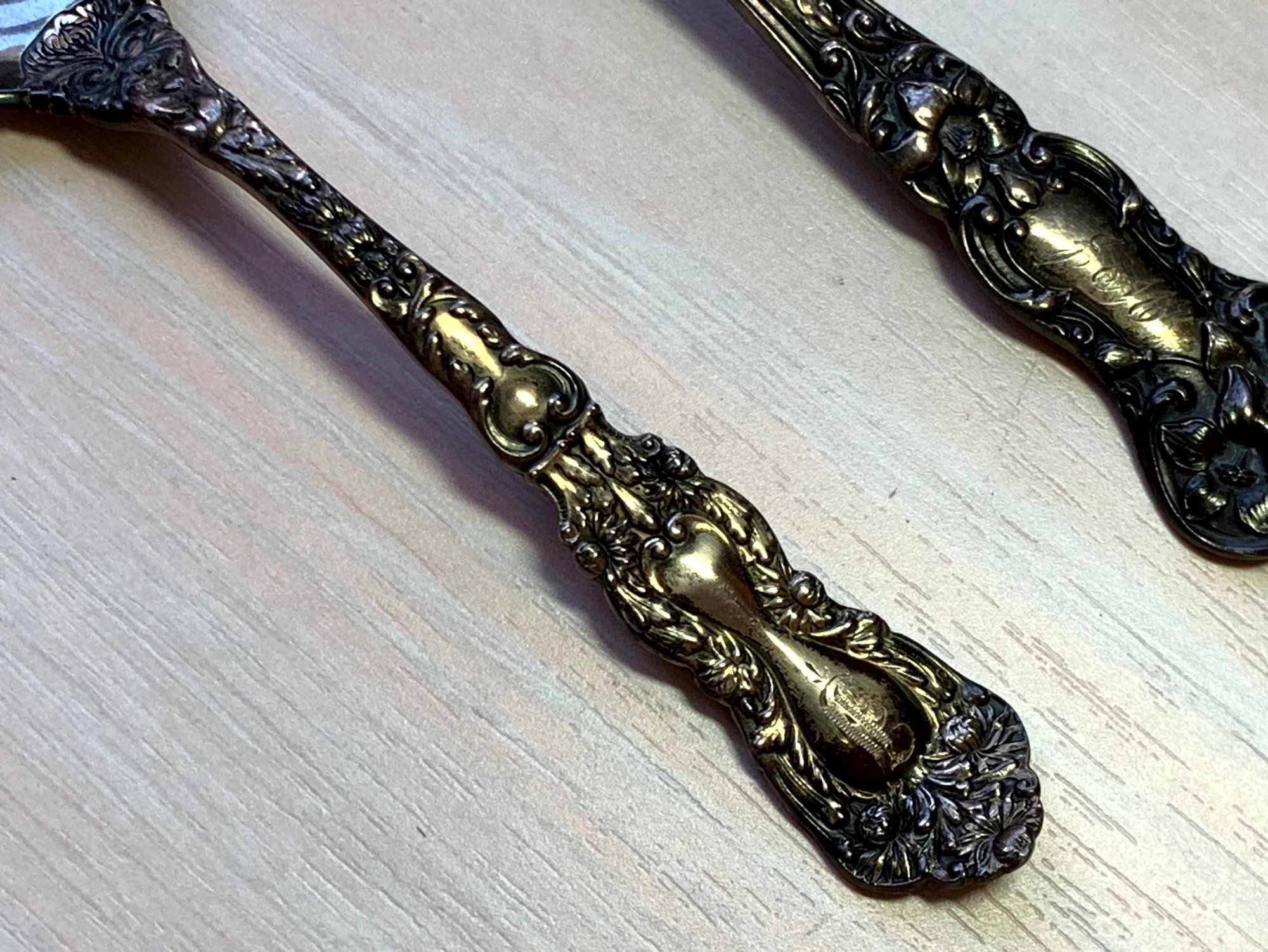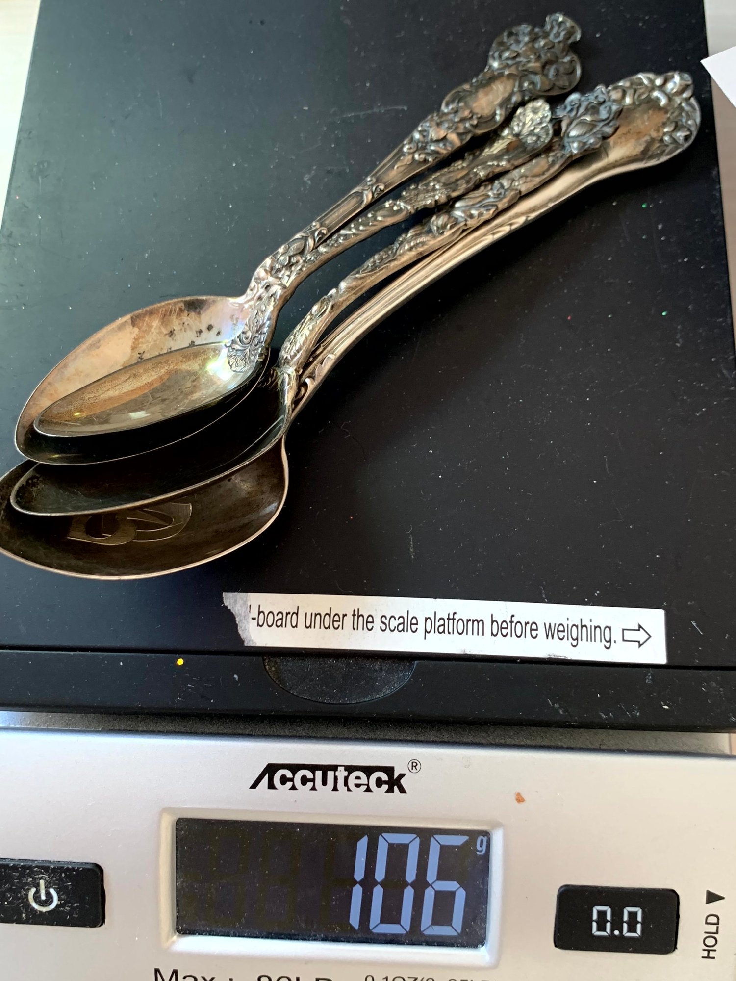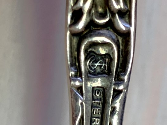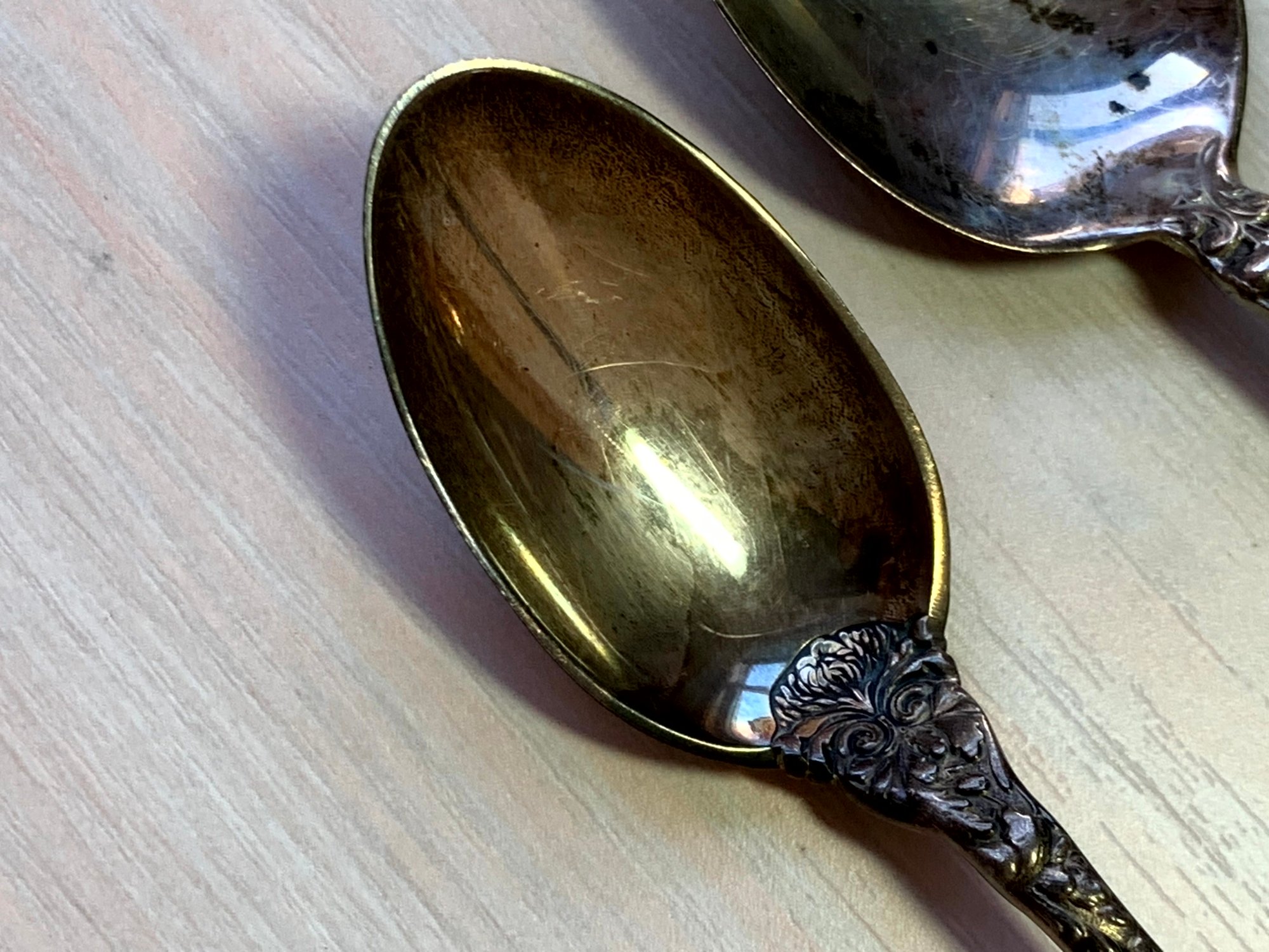 Vintage Sterling Silver 4 floral handle spoons with mongramme (DL42)