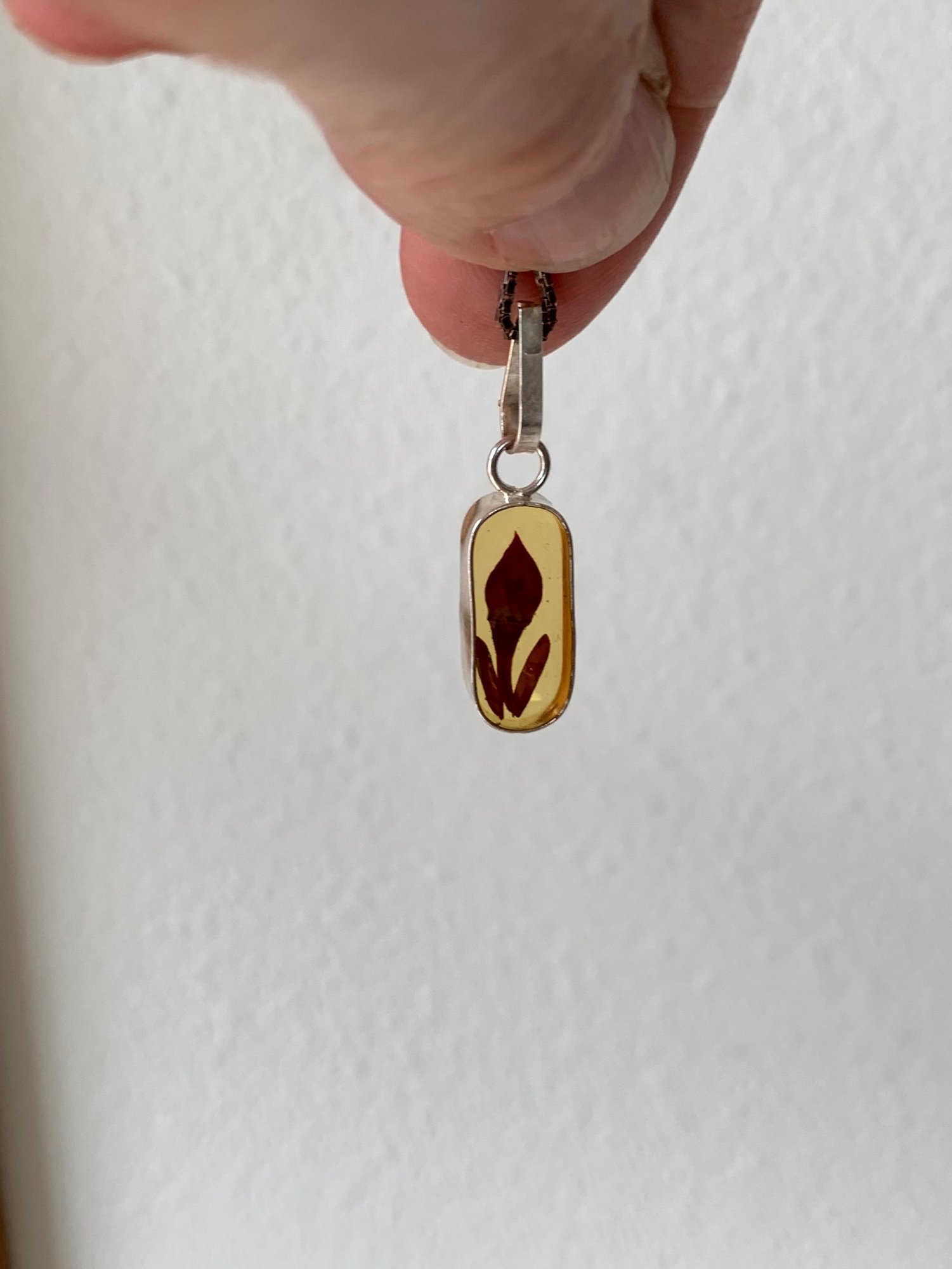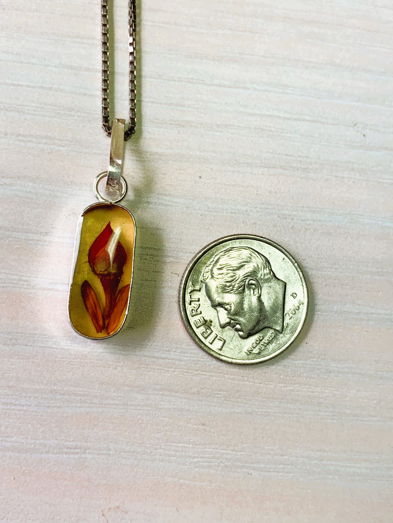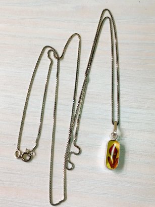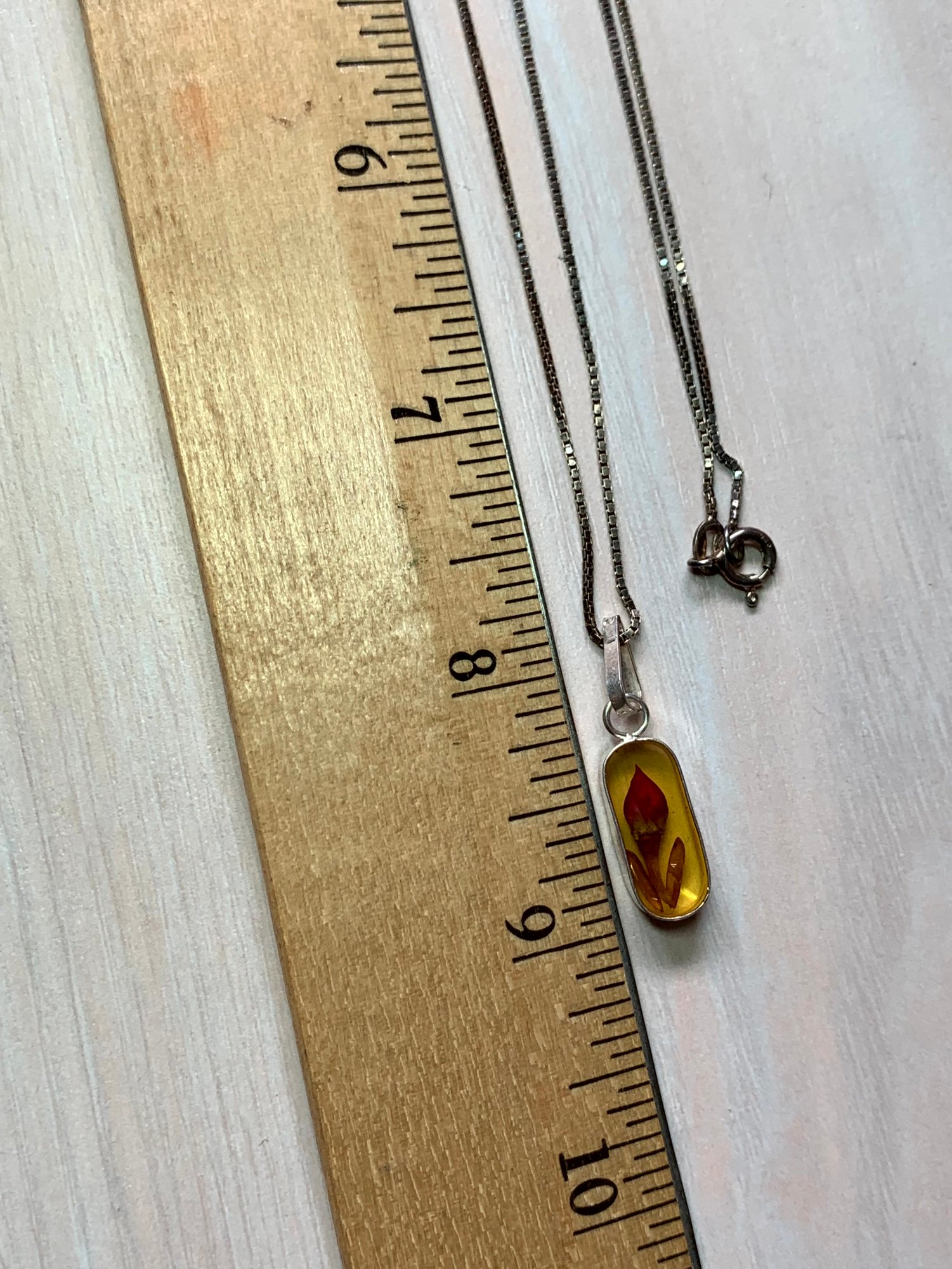 Vintage Sterling silver box chain with acrylic flower pendant (DL22)