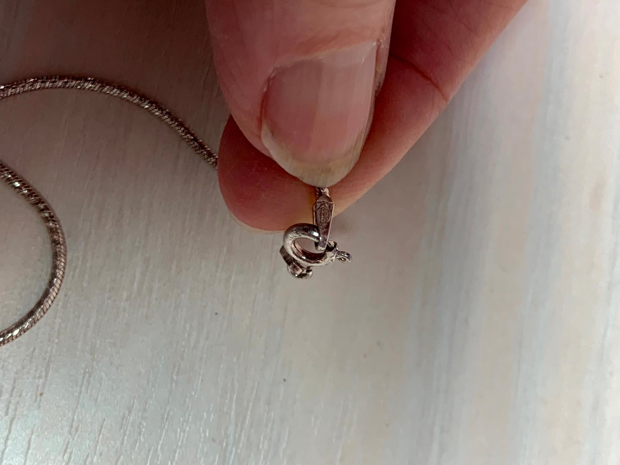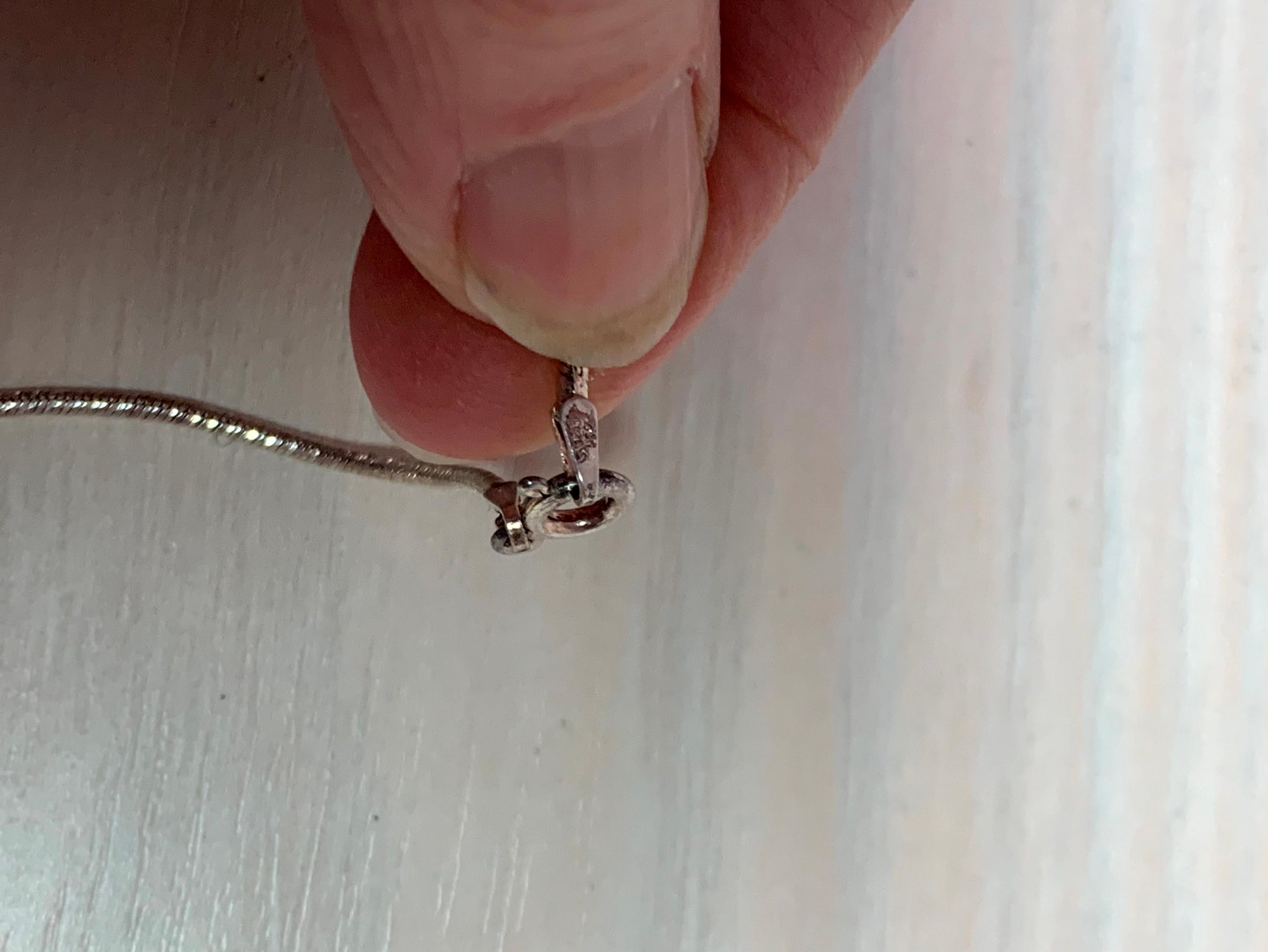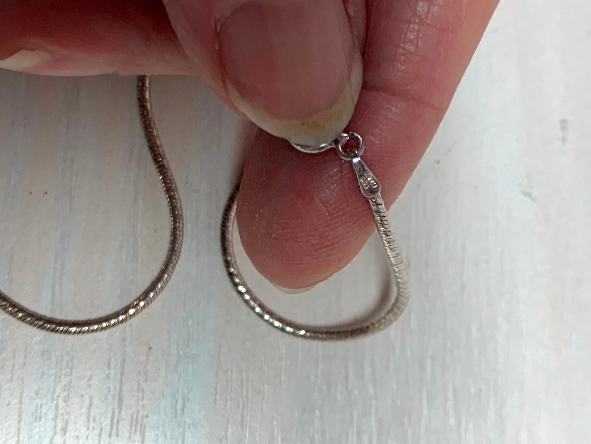 The chain is marked Italy 925 on the fastener and the lozenge.