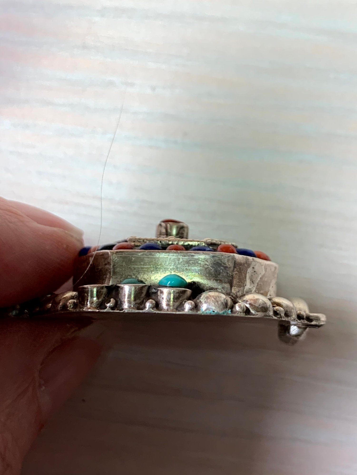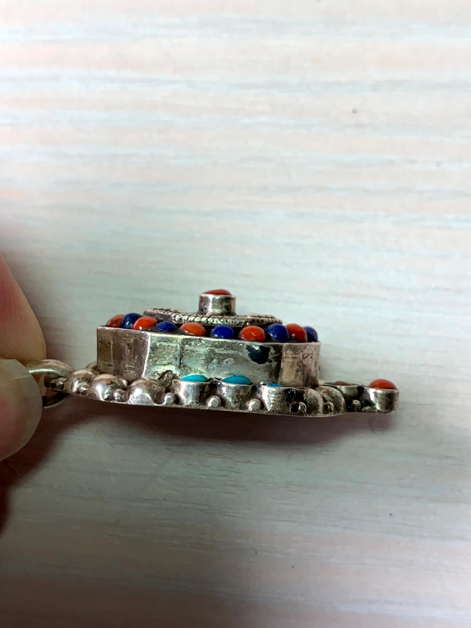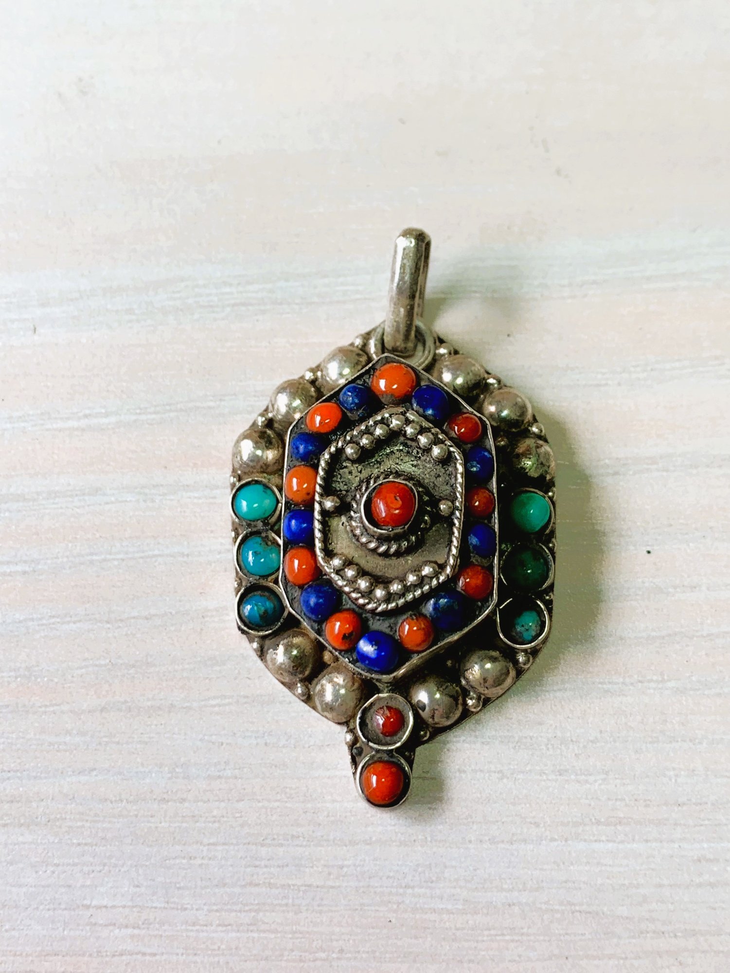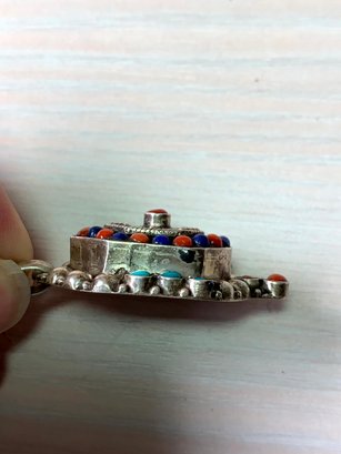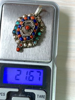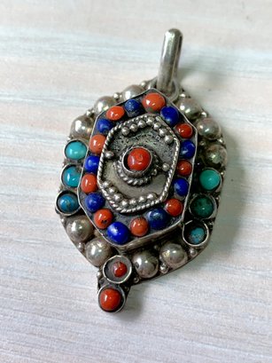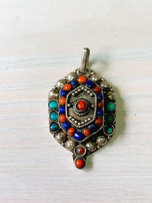 Vintage Sterling Silver ethnic style tiered pendant with blue and red stones (DL24)