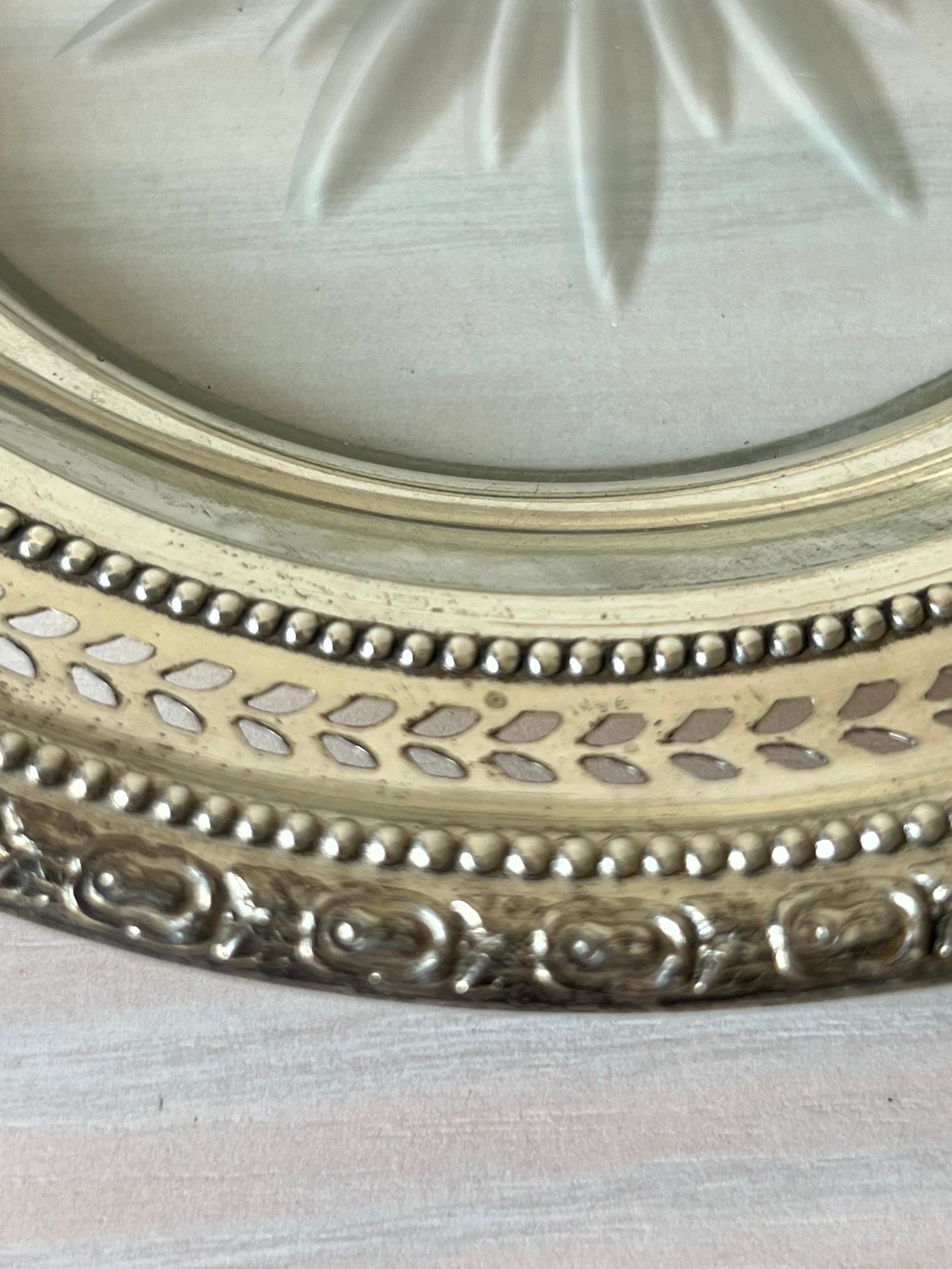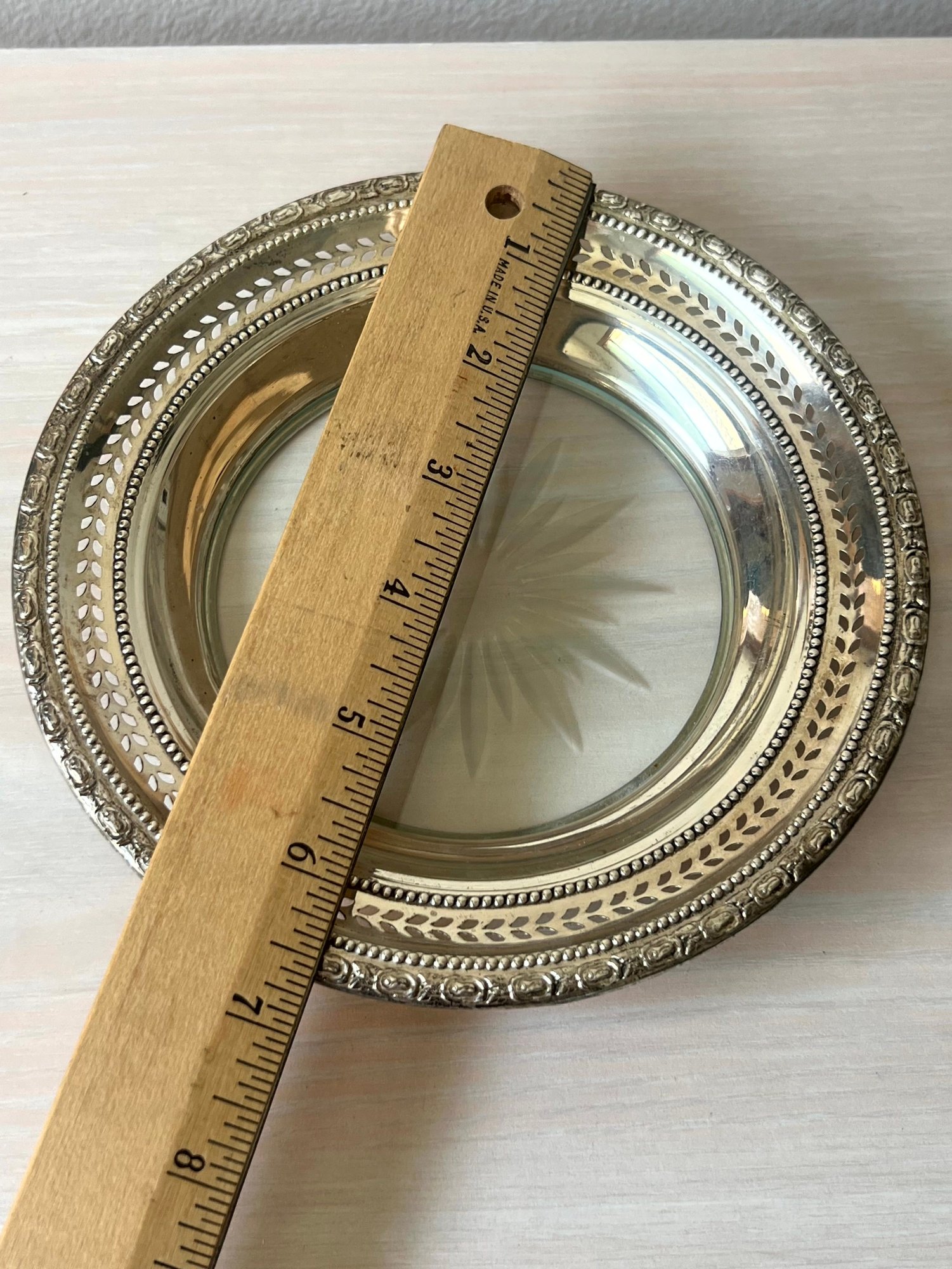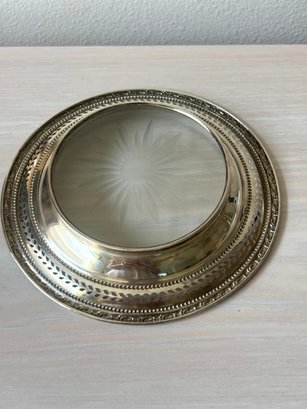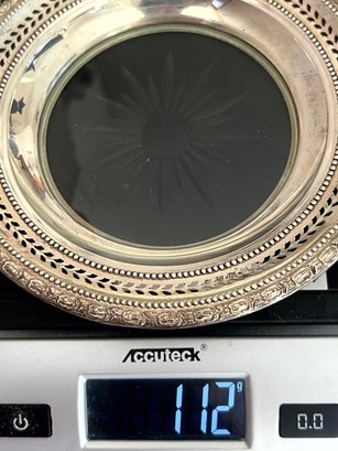 Vintage Sterling silver Frank M Whiting glass bottom wine bottle coaster (DL76)