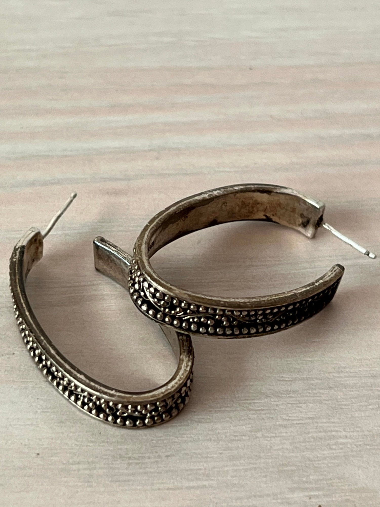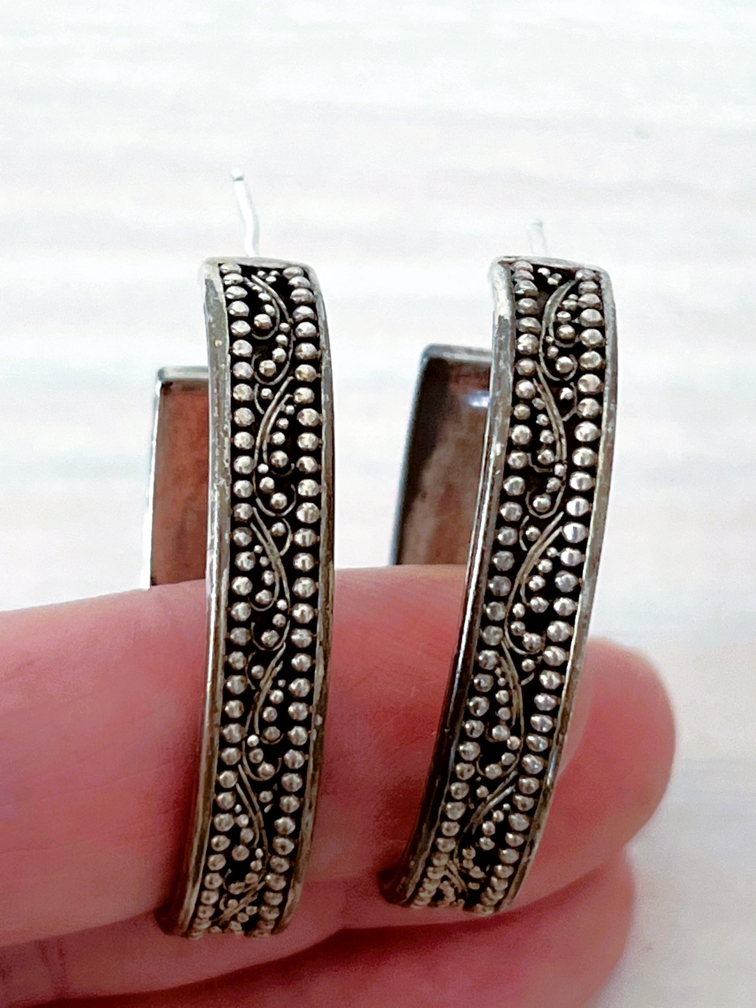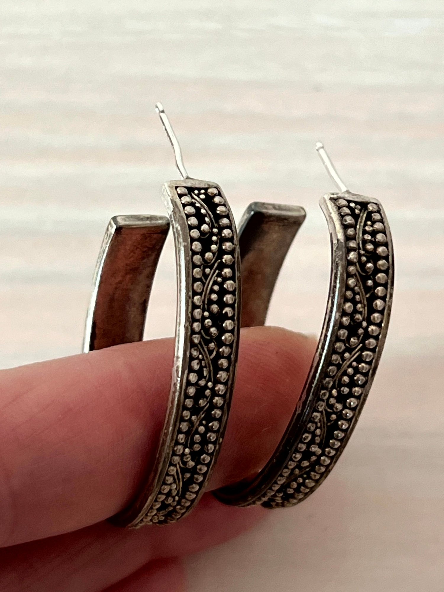 Vintage Sterling silver Lois hill ornate open hoop earrings (DLM128)