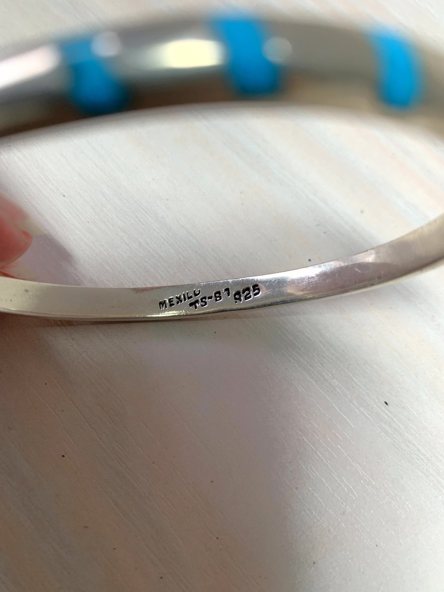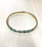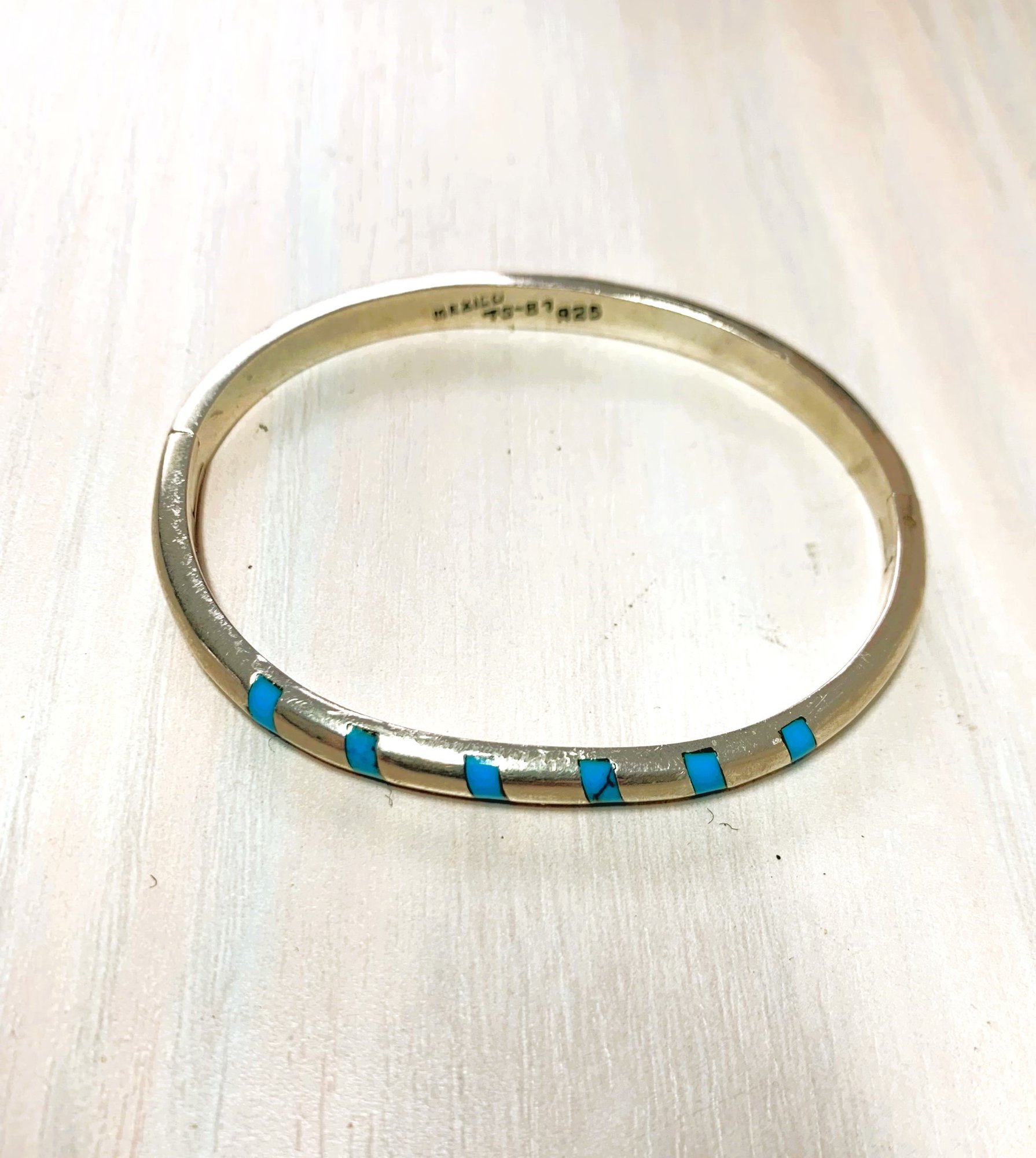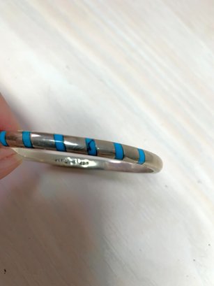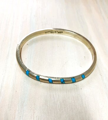 Vintage Sterling Silver Mexico Hinged Bangle inlaid turquoise signed TS-87 (DL1)
