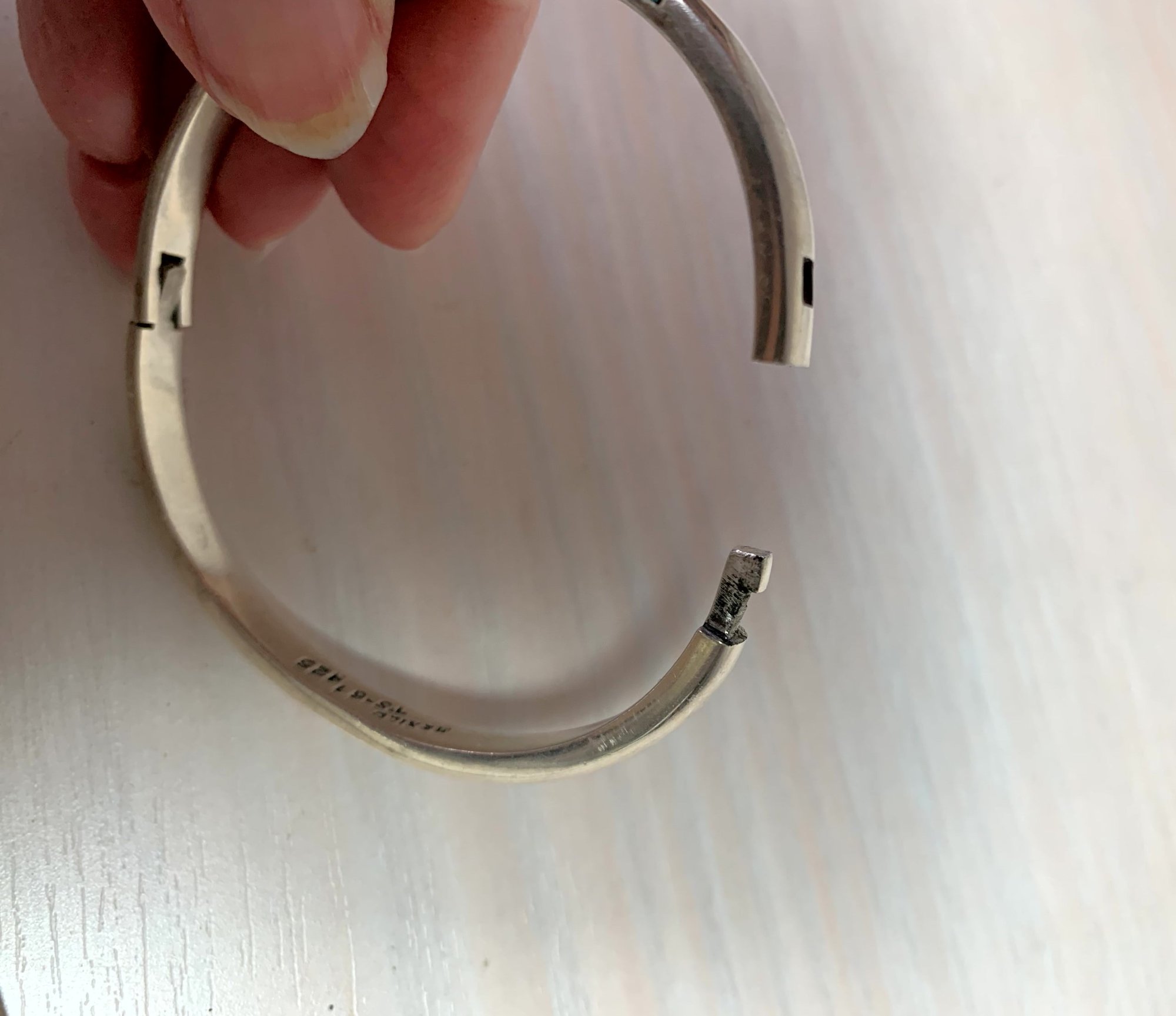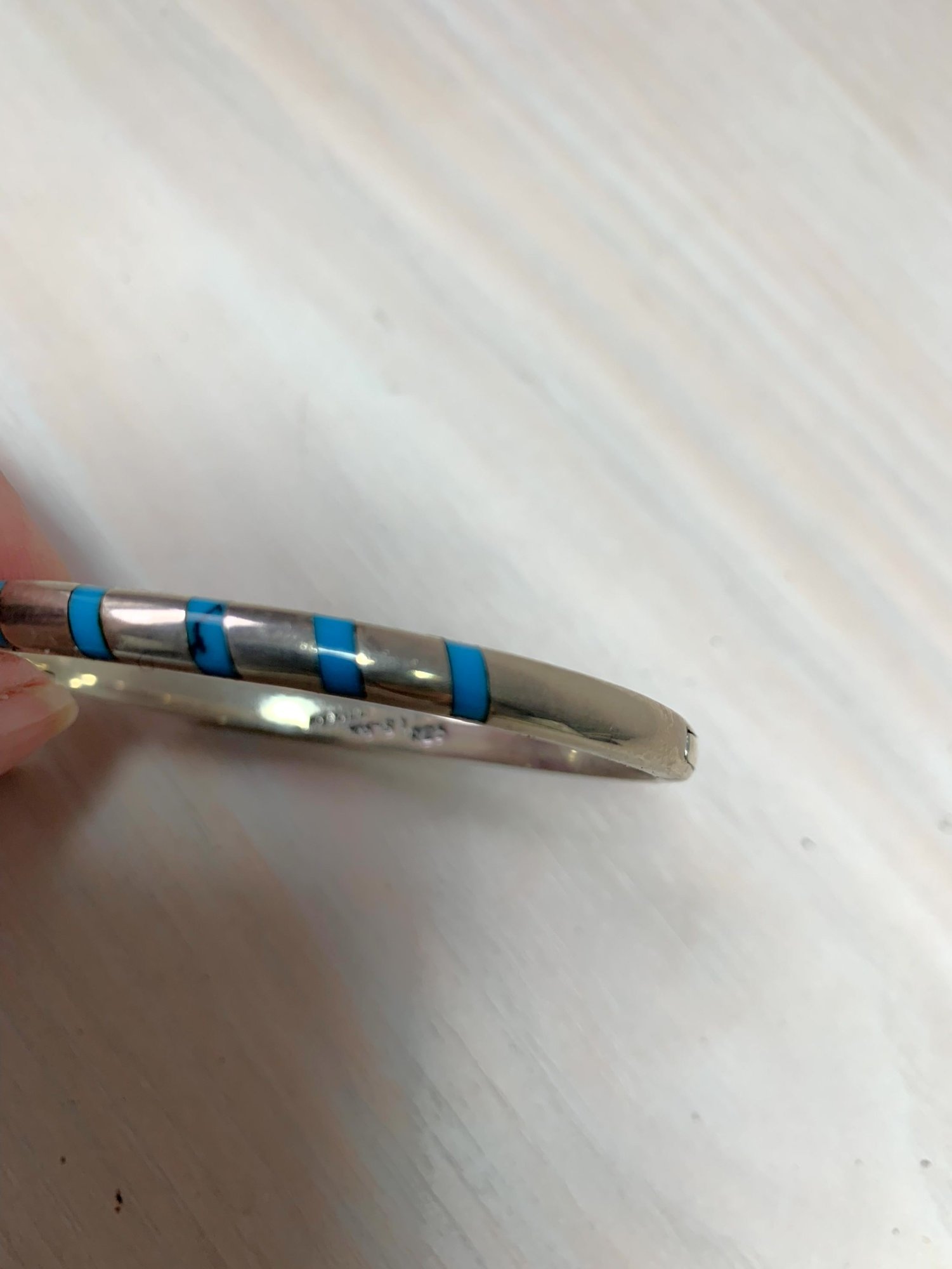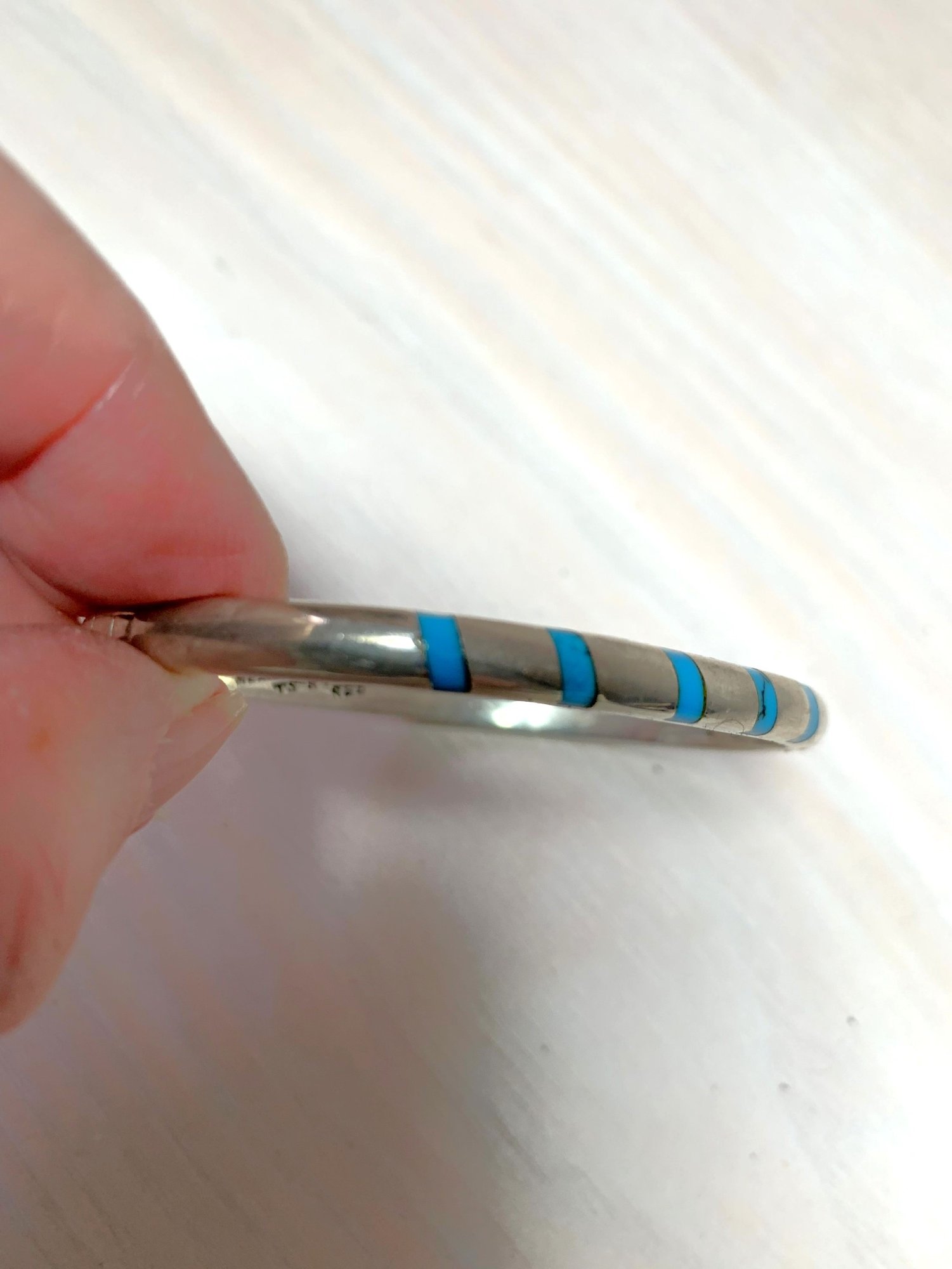 Vintage Sterling Silver Mexico Hinged Bangle inlaid turquoise signed TS-87 (DL1)