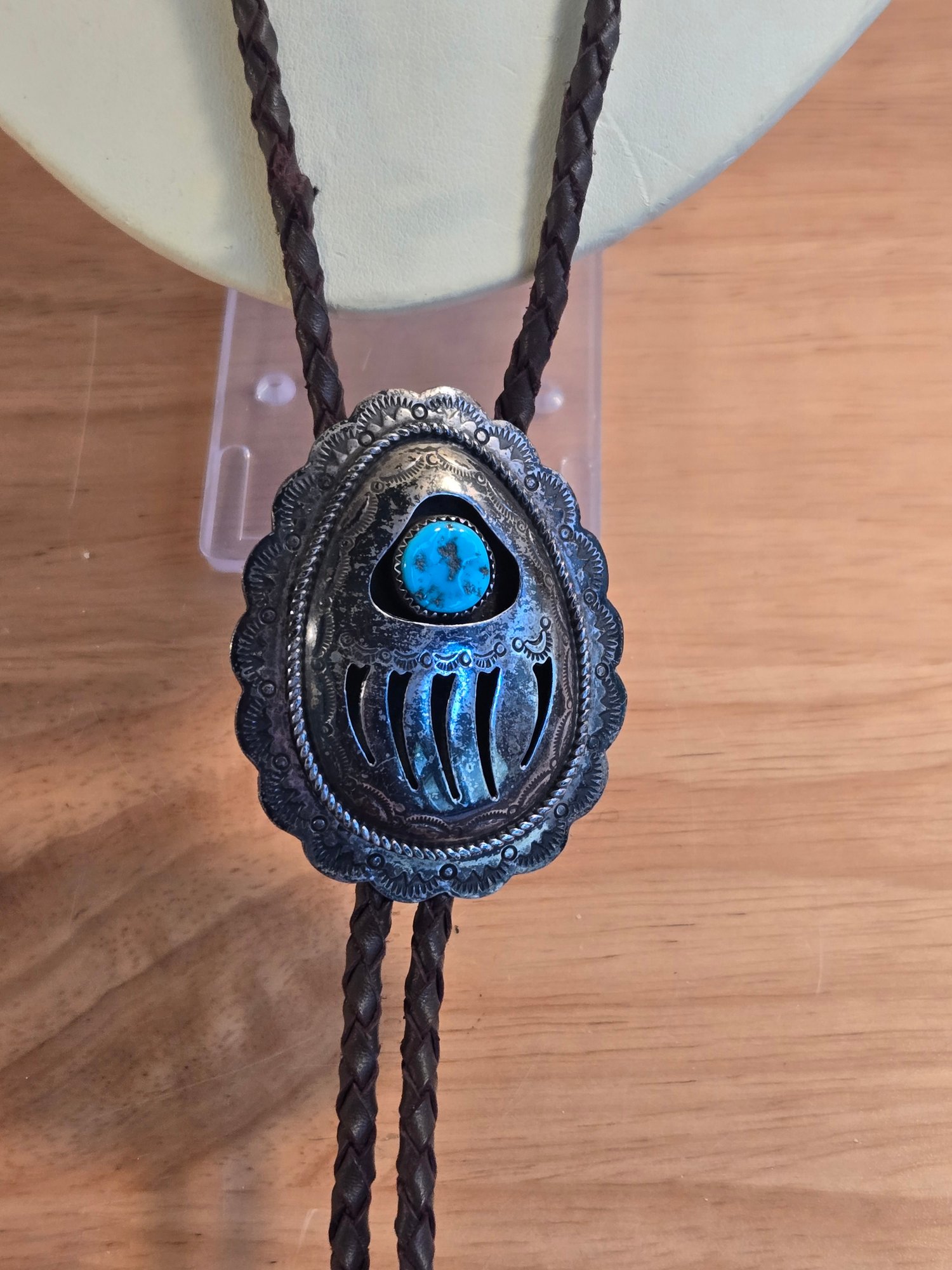 Wilber Musket Sterling and Turquoise Bolo Tie