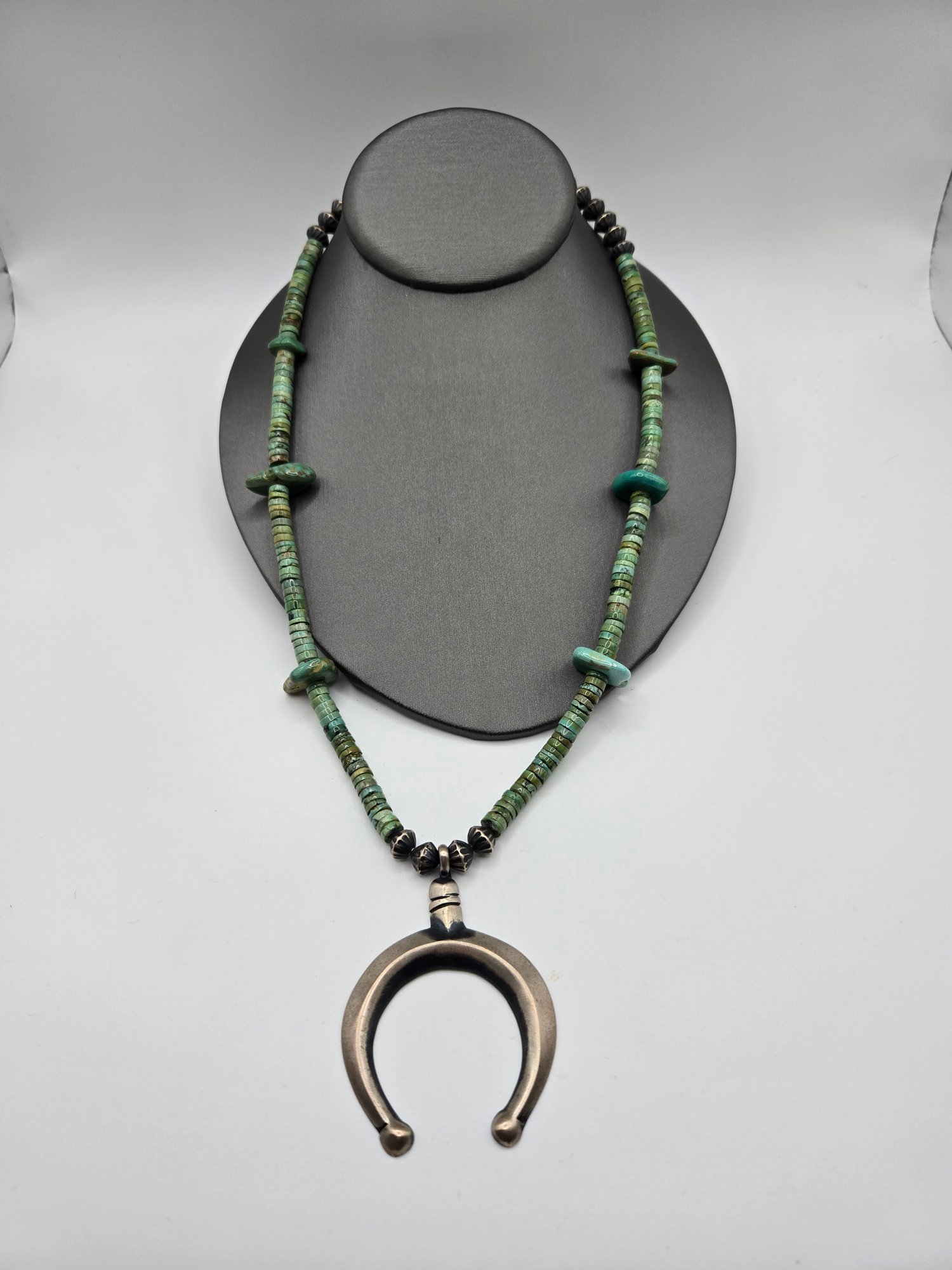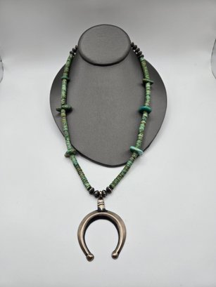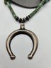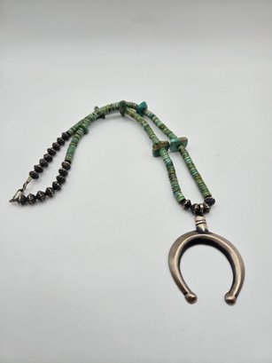 Probably dime/coin silver horseshoe pendant with turquoise beads and silver beads