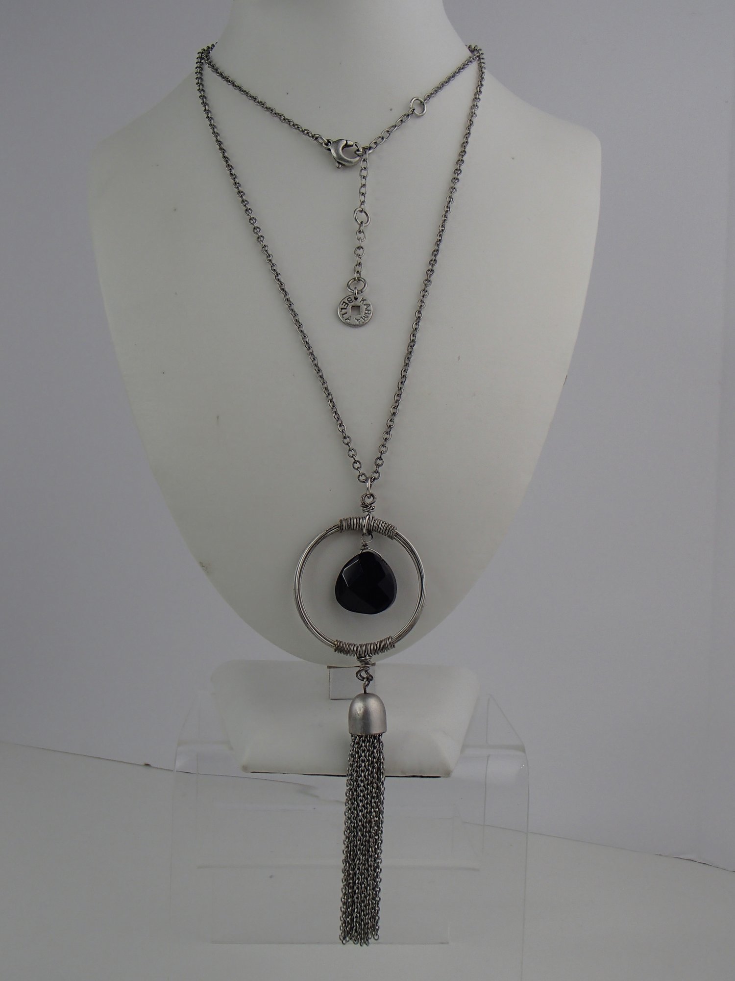 30" Necklace With Black Onyx Stone By Karma Bella With 3" Extender