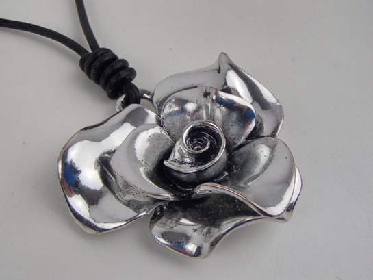 30" Silver Tone Rose Necklace With 3" Extender Chain